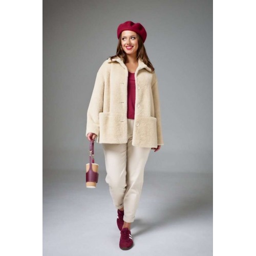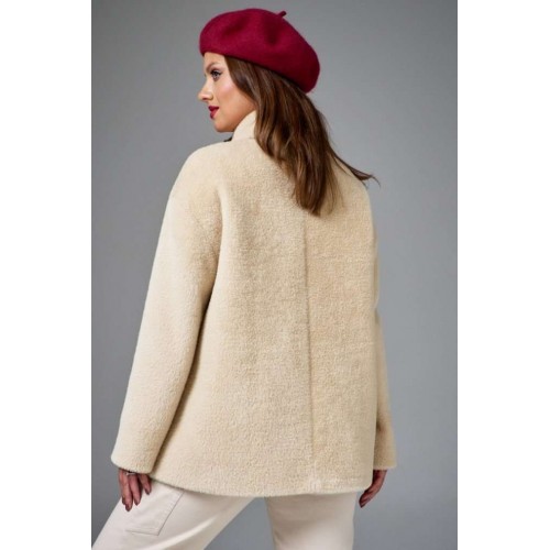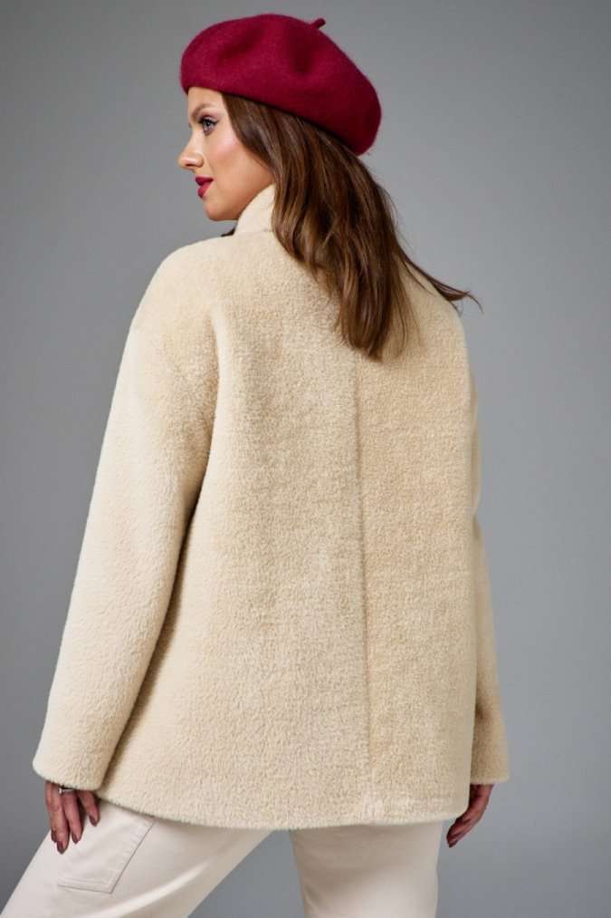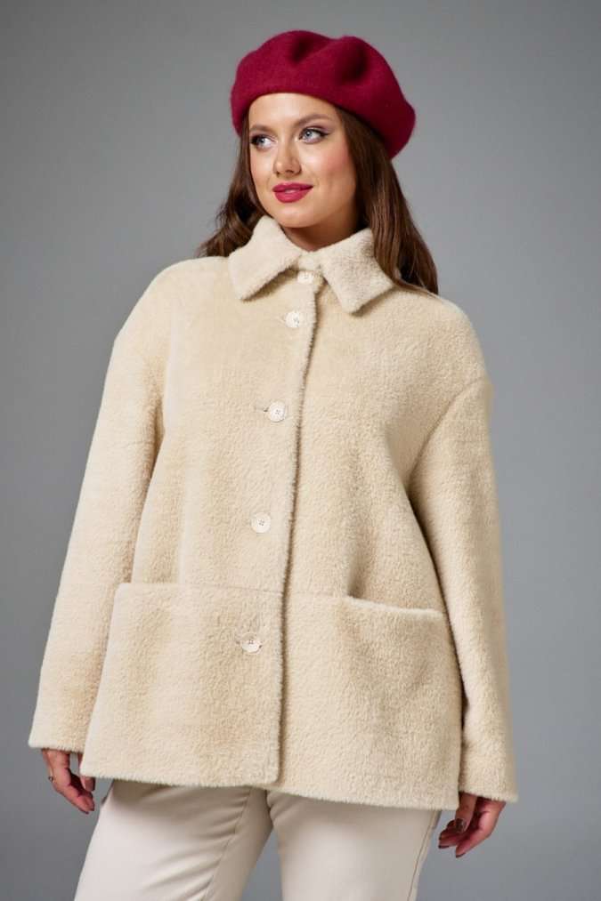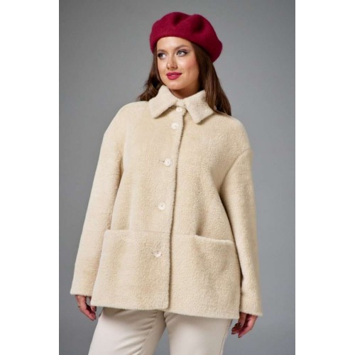 Укороченное пальто из мягкого коротковорсового меха на трикотажной основе, слегка расширенного силуэта, застежкой на пуговицы и отложным воротником со стойкой. Рукав длинный, линия плеча спущена. На переде карманы в горизонтальных швах. Изделие на подкладке.