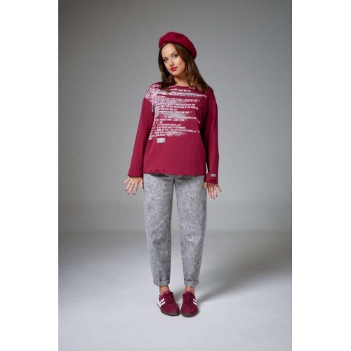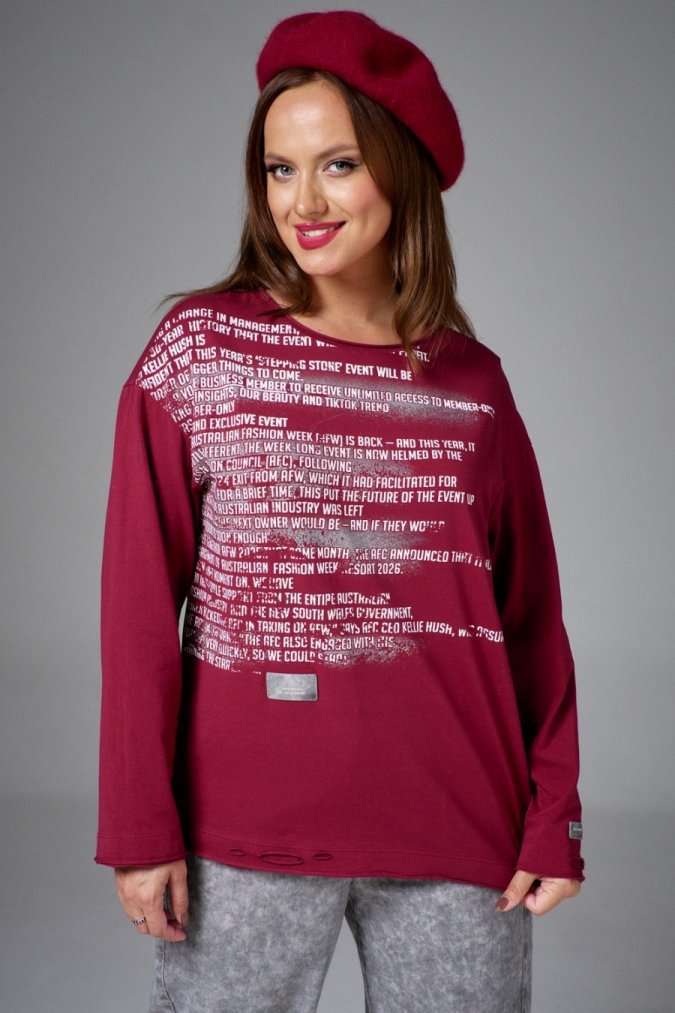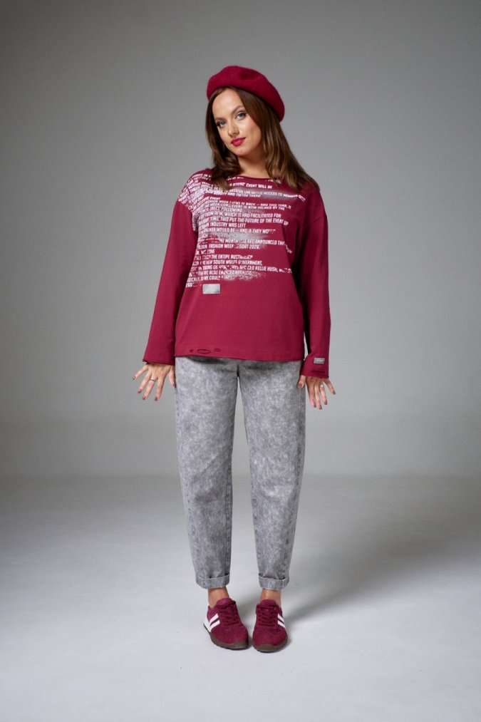 Лонгслив из хлопковой кулирки, свободного силуэта, с длинным рукавом и круглой горловиной. На переде авторский принт. По низу изделия и рукава декоративные прорези.
