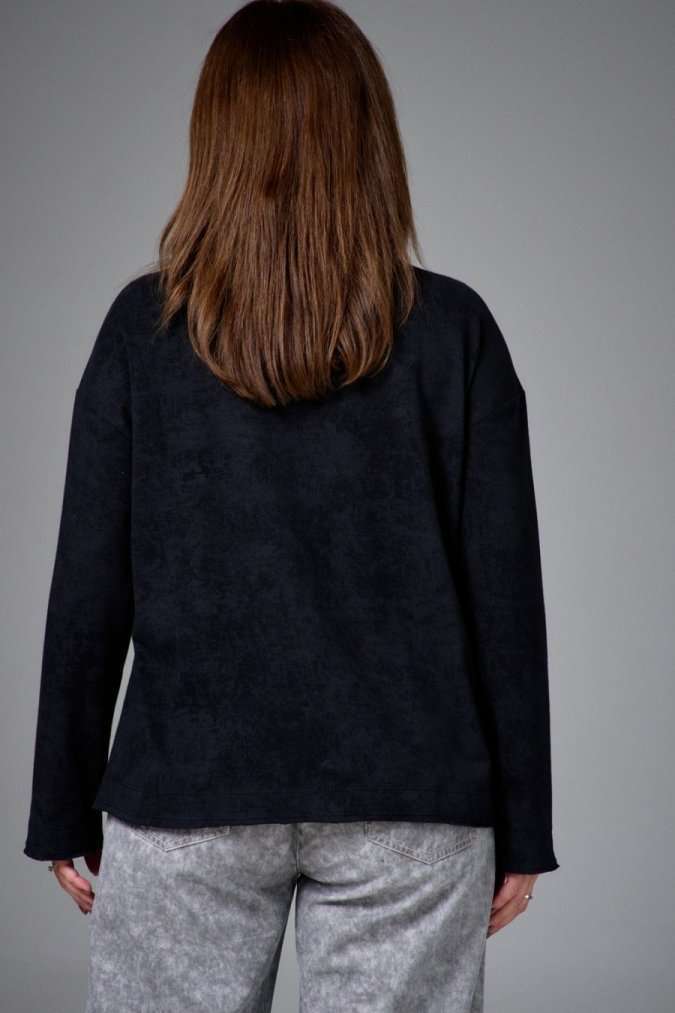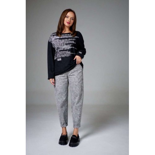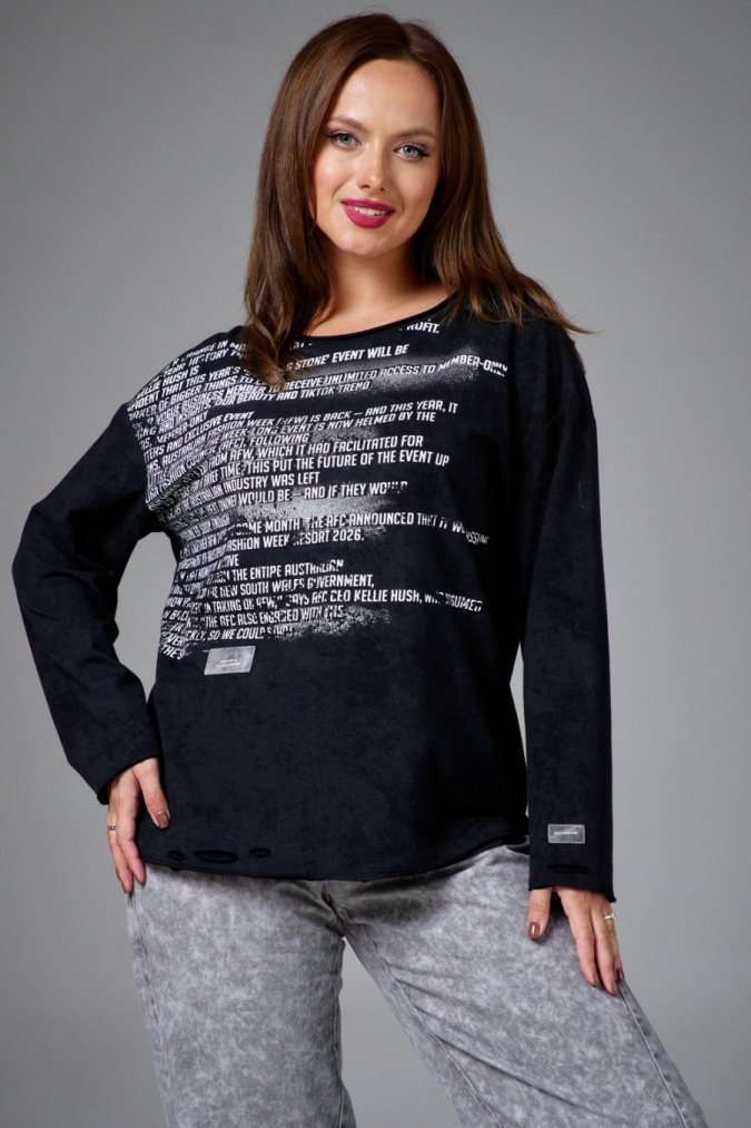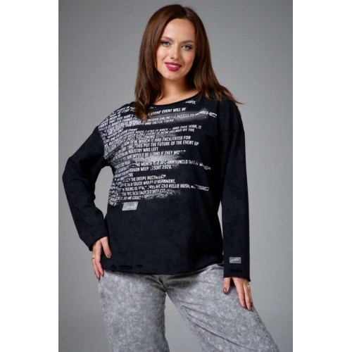 Лонгслив из хлопковой кулирки, свободного силуэта, с длинным рукавом и круглой горловиной. На переде авторский принт. По низу изделия и рукава декоративные прорези.