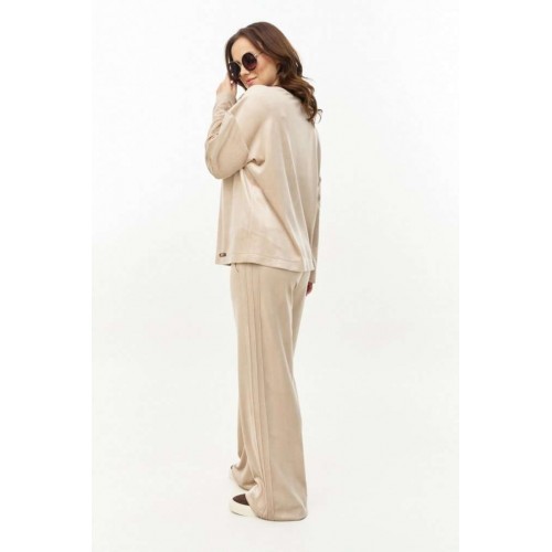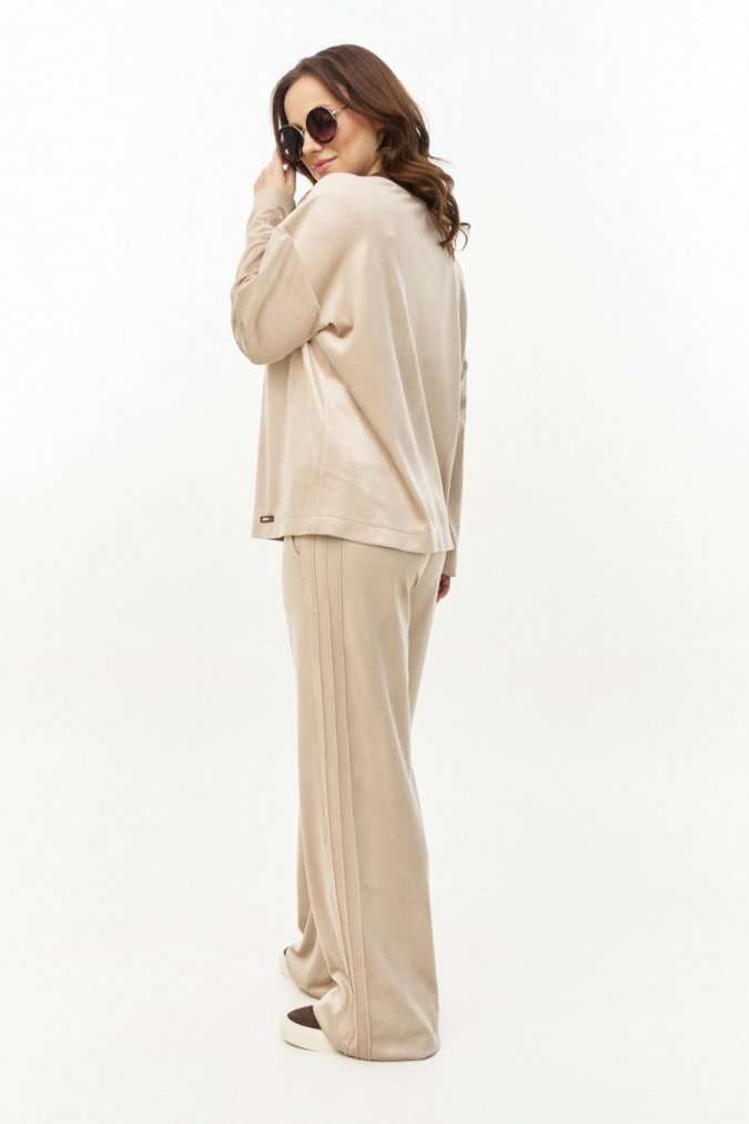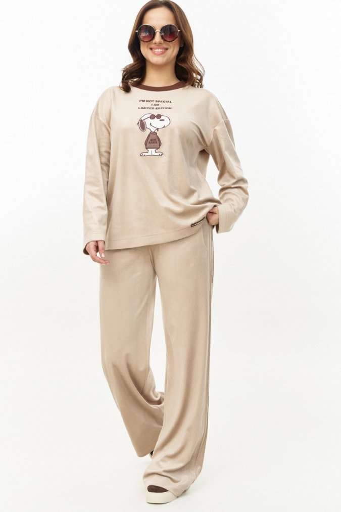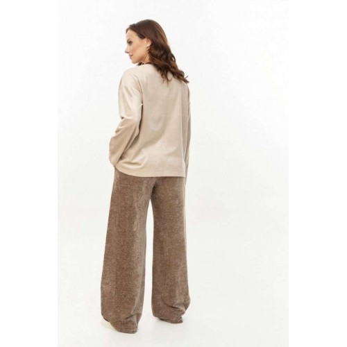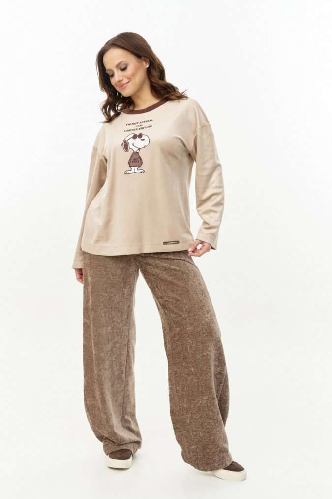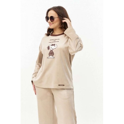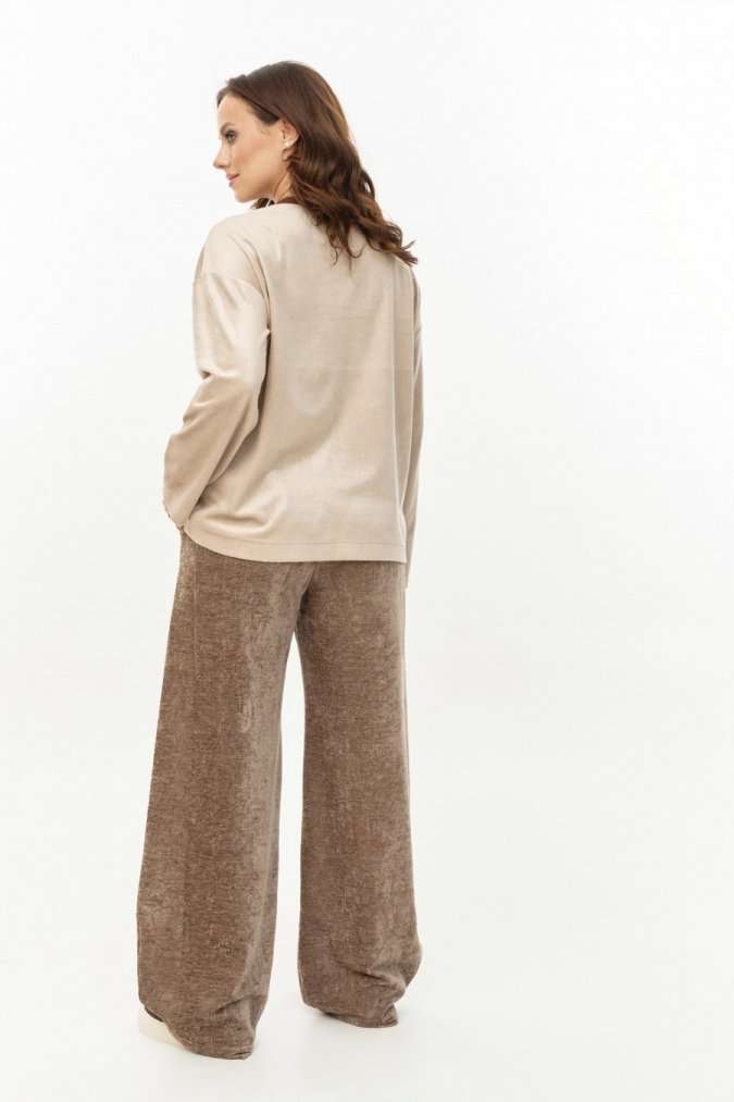 Свитшот из мягкого велюра с легким мерцанием, прямого силуэта, с круглой горловиной и декоративным довязом. Рукав длинный, линия плеча спущена. Перед с авторской вышивкой.