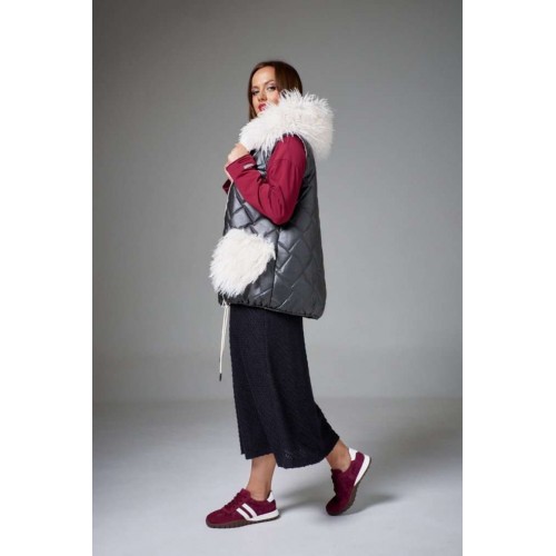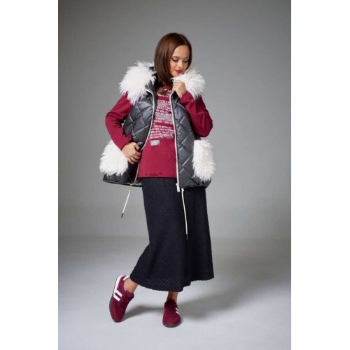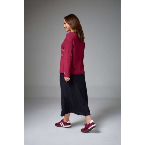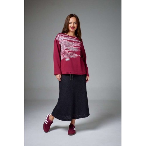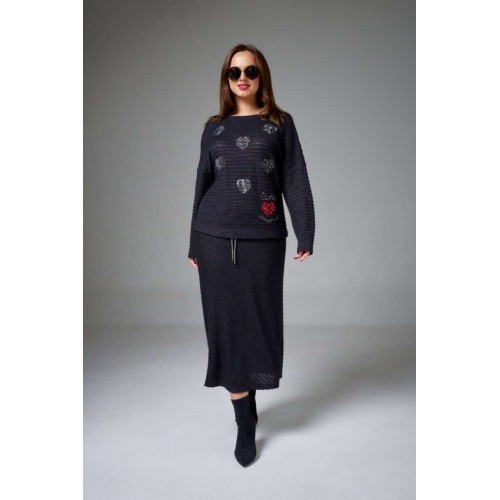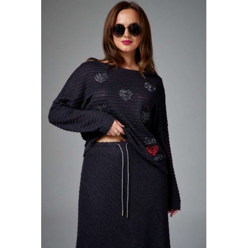 Юбка из ажурного трикотажа, расширенного силуэта, скроеная по косой, длиной миди. Пояс на резинке, с кулисой и серебристым шнуром. Изделие на трикотажной подкладке.