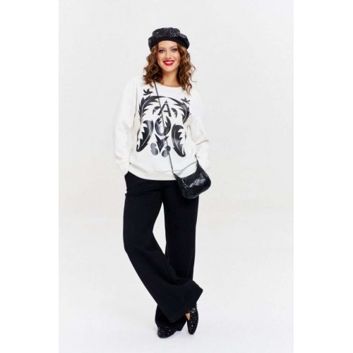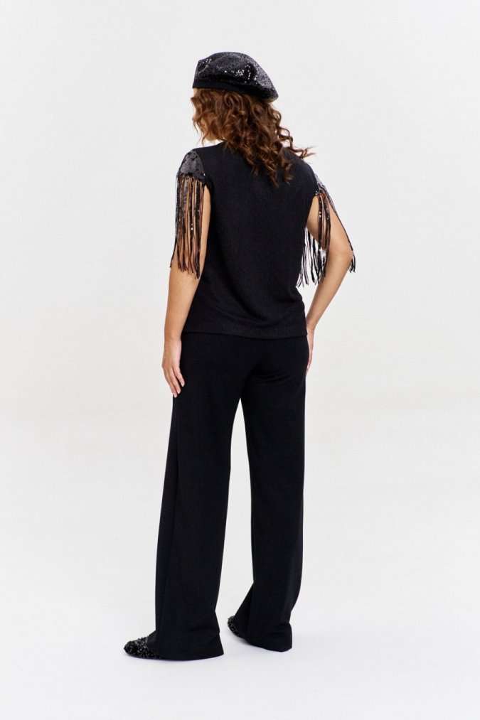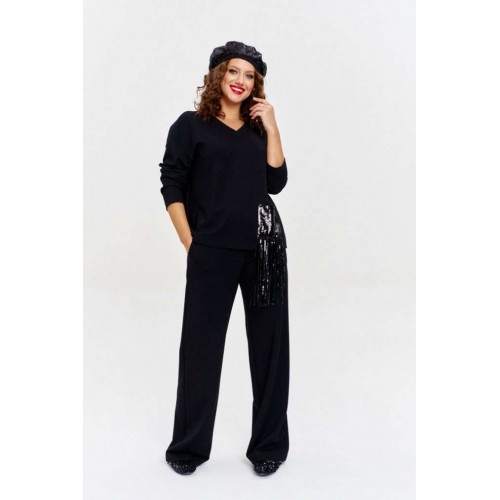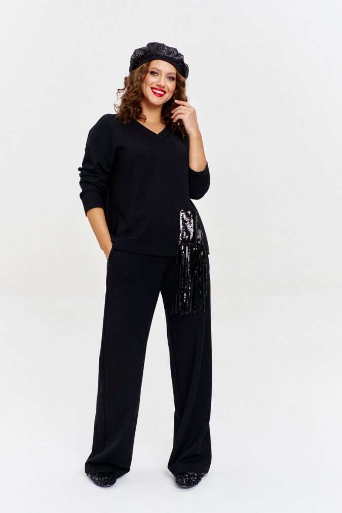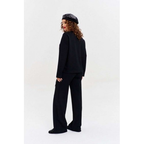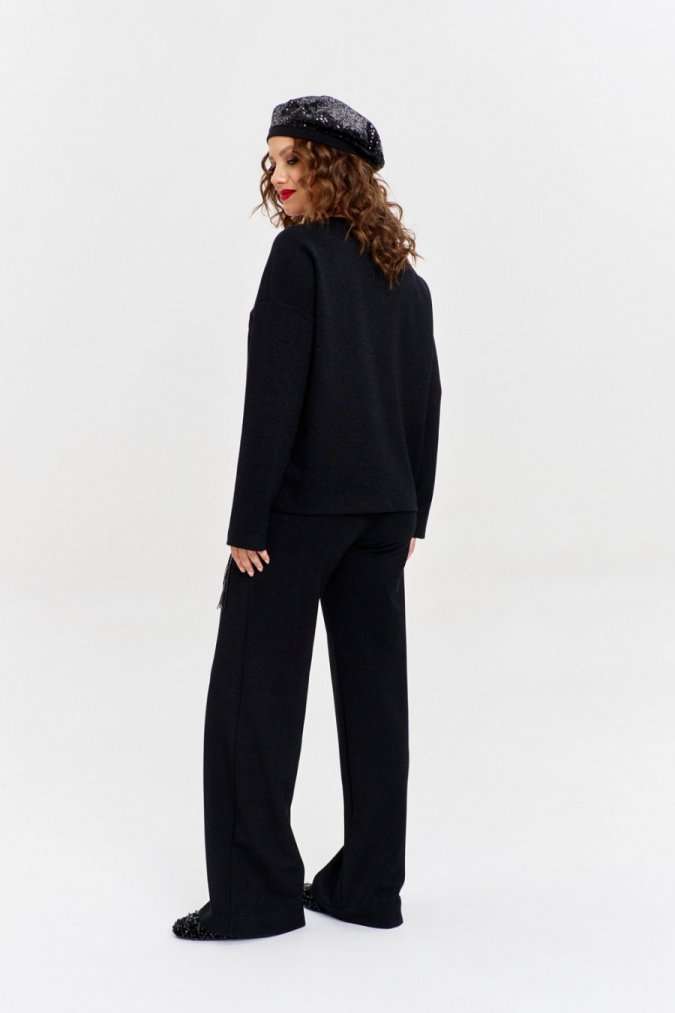 Джоггеры из трикотажа с легким мерцанием, прямого силуэта, с удобными боковыми карманами и поясом на резинке.