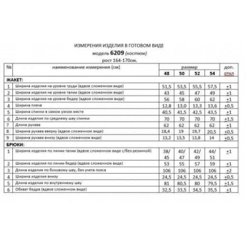Костюм – прекрасный спутник во всех весенних приключениях, будь то праздник, встреча с друзьями или деловые будни. Предлагаемый костюм из жакета и брюк сочетает в себе и романтические нотки и деловые штрихи. Выполнен из костюмно-смесового полотна с нежной, гладко-бархатистой фактурой, приятной на ощупь и матовой поверхностью. Жакет прилегающего силуэта длиной ниже бедер на подкладке, с симметричной акцентной деталью в виде фигурной кокетки и воротника смежного цвета. Передняя часть разрезная с мягким подрезом (кокеткой) вверху, с вертикальными вытачками от груди до низа и с нижними накладными боковыми карманами на нижних частях переда. Спинка разрезная по среднему шву с вертикальными рельефами от плеча. Рукав втачной одношовный длинный. Воротник классический пиджачного типа. Низ борта округлой формы. Застежка центральная однобортная на три петли и пуговицы. Брюки классические, с функциональными боковыми карманами. Посадка классическая, высокая. В задней части пояса вставлена резинка для удобства использования. Застежка центральная на молнию и петлю с пуговицей на поясе. Длина жакета (по среднему шву спинки) – 70 см. Длина рукава жакета – 62 см. Длина брюк (по боковому шву с поясом) –110 см.