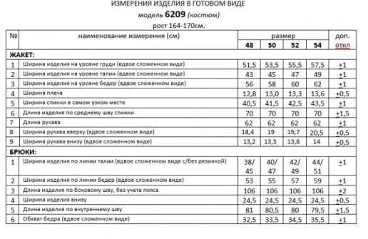Таблица размеров