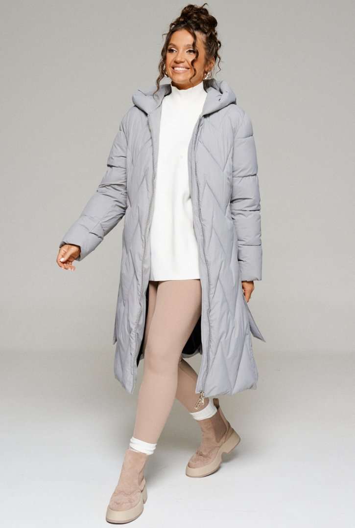 Зимнее, стеганое пальто прямого силуэта для тех, кто любит простоту и ничего лишнего. Это сочетание комфорта, современных материалов и безупречного кроя. Лёгкое, удобное и уютное пальто подходит на все случаи жизни. Сдержанное, расслабленное, не сковывающее движений, универсального цвета. Это пальто отлично впишется в повседневные образы. Пальто выполнено из стёганной, достаточно прочной и приятной на ощупь влагостойкой, полиэфирной ткани; на синтетической подкладке. Утеплитель из холлофайбера 250 г/м.кв., подходит для холодной осени и зимы. Изделие рассчитано на температурный режим от -10 до -25 градусов. Модель прямого силуэта, базового кроя; предназначена для повседневного использования. Передняя часть с двумя вертикальными рельефами в которых расположены внутренние карманы с листочкой. Застежка центральная на молнию с цельнокроеной ветрозащитной планкой внутри. Длина молнии от верхнего края горловины до нижнего края изделия. Спинка с двумя вертикальными рельефами, смещёнными к боковому шву. Рукав длинный, двухшовный, втачной. Внутри рукава предусмотрена дополнительная вставка в виде трикотажной манжеты. Воротник – отсутствует. Капюшон притачной по линии горловины. Низ изделия ровный. Подкладка гладкая, имеет дополнительный внутренний карман. В качестве дополнительного элемента к изделию прилагается пояс – завязка. С учетом плюсовых прибавок подходит на рост 170см. Длина (по среднему шву спинки) = 108 см. (+1см.) Длина рукава = 61-65 см. (+1см.)