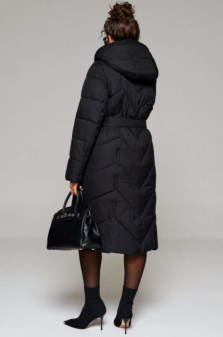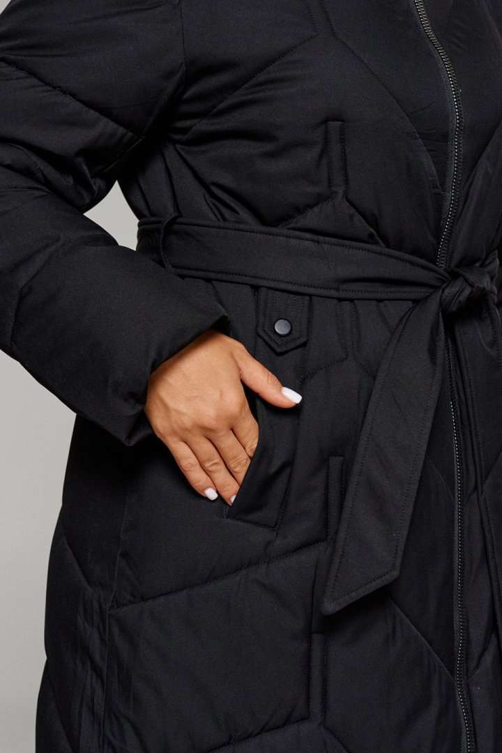 Зимнее, стеганое пальто прямого силуэта для тех, кто любит простоту и ничего лишнего. Это сочетание комфорта, современных материалов и безупречного кроя. Лёгкое, удобное и уютное пальто подходит на все случаи жизни. Сдержанное, расслабленное, не сковывающее движений, универсального цвета. Это пальто отлично впишется в повседневные образы. Пальто выполнено из стёганной, достаточно прочной и приятной на ощупь влагостойкой, полиэфирной ткани; на синтетической подкладке. Утеплитель из холлофайбера 250 г/м.кв., подходит для холодной осени и зимы. Изделие рассчитано на температурный режим от -10 до -25 градусов. Модель прямого силуэта, базового кроя; предназначена для повседневного использования. Передняя часть цельнокроеная, с двумя прорезными карманами с декоративной листочкой. Застежка центральная на декоративную молнию с ветрозащитной планкой внутри. Длина молнии от верхнего края воротника до нижнего края изделия. Спинка цельнокроеная. Рукав длинный, двухшовный, втачной. Внутри рукава предусмотрена дополнительная вставка в виде трикотажной манжеты. Воротник – стойка, шириной ок.10 см., объёмный Капюшон притачной по линии горловины. Низ изделия ровный. Подкладка гладкая, имеет дополнительный внутренний карман. В качестве дополнительного элемента к изделию прилагается пояс – завязка. С учетом плюсовых прибавок подходит на рост 170см. Длина (по среднему шву спинки) = 111 см. (+1см.) Длина рукава = 65 см. (+1см.)