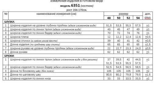 Деловой и нарядный костюм, состоящий из двух предметов: блузки и брюк, идеально подходит для выхода и городских будней, выполнен из ткани «французский креп», которая отличается особой мягкостью и изысканностью, красиво струится и имеет легкий стрейч. Блузка с имитацией запаха станет изысканным акцентом в образе, а практичные детали придадут уверенность в любом выходе. Перед асимметричный, разрезной. Верхняя часть переда имеет разрез «на косую», заложенную мягкую сборку от подреза на уровне талии и отделана прямыми фиксирующими вставками. Нижняя часть переда – двойная чуть расширенная баска. Спинка с вытачками от подреза на талии, который ограничивает разрезную по середине верхнюю часть спинки и баску. Рукав втачной длинный одношовный с мягкой сборкой внизу. Заканчивается притачной манжетой, которая застегивается на две петли и пуговицы. Горловина V-образной формы. Изделие имеет функциональный широкий пояс с декоративной пряжкой. Для удобства использования в левом боковом шве предусмотрена потайная застежка молния. Брюки широкие классического кроя, высокой посадки, на поясе. По всему поясу брюк для удобства использования и прилегания вставлена эластичная тесьма. Длина блузки (по среднему шву спинки) – 65 (+1,5) см. Длина рукава блузки (по центру) – 62 (+1) см. Длина брюк с поясом (по боковому шву) – 109 (+2) см. С учетом плюсовых прибавок подходит на рост 170см.