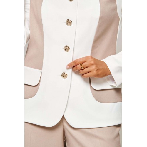 BEAUTIFUL-FREE 6373 молочный + песочный Костюм брючный