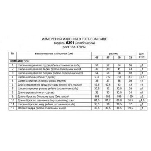 Это не только красивый, нарядный, но и очень практичный предмет гардероба. Соединение в одно целое женских брюк и верха, является чрезвычайно функциональным решением. Комбинезон изготовлен из 2-х видов смесового полотна. Предлагаемая модель свободного кроя. Передняя верхняя часть двуслойная, выполнена из двух видов ткани. Нижний слой из лёгкого костюмно-смесового полотна, без рукавов, с V-образным вырезом горловины спереди. Верхний накладной слой из лёгкой шифоновой ткани, в, полюбившемся многим, стиле «на запах», со спущенной линией плеча. Плечевой шов изделия предусматривает декоративные разрезы вдоль линии плеча. Задняя верхняя часть комбинезона разрезная по среднему шву, с застежкой на потайную молнию. Комбинезон отрезной по линии талии. Подрезная планка на талии шириной 4 см, в которую частично вставлена резинка. Брюки прямые широкие, в стиле «палаццо». На передней части изделия предусмотрен декоративный элемент в виде цепочки. Длина верхней части (по среднему шву спинки) ~ 43 см. Длина рукава (рукав +плечо) ~ 32-34 см. Длина брюк (по боковому шву с поясом) ~ 113 см.