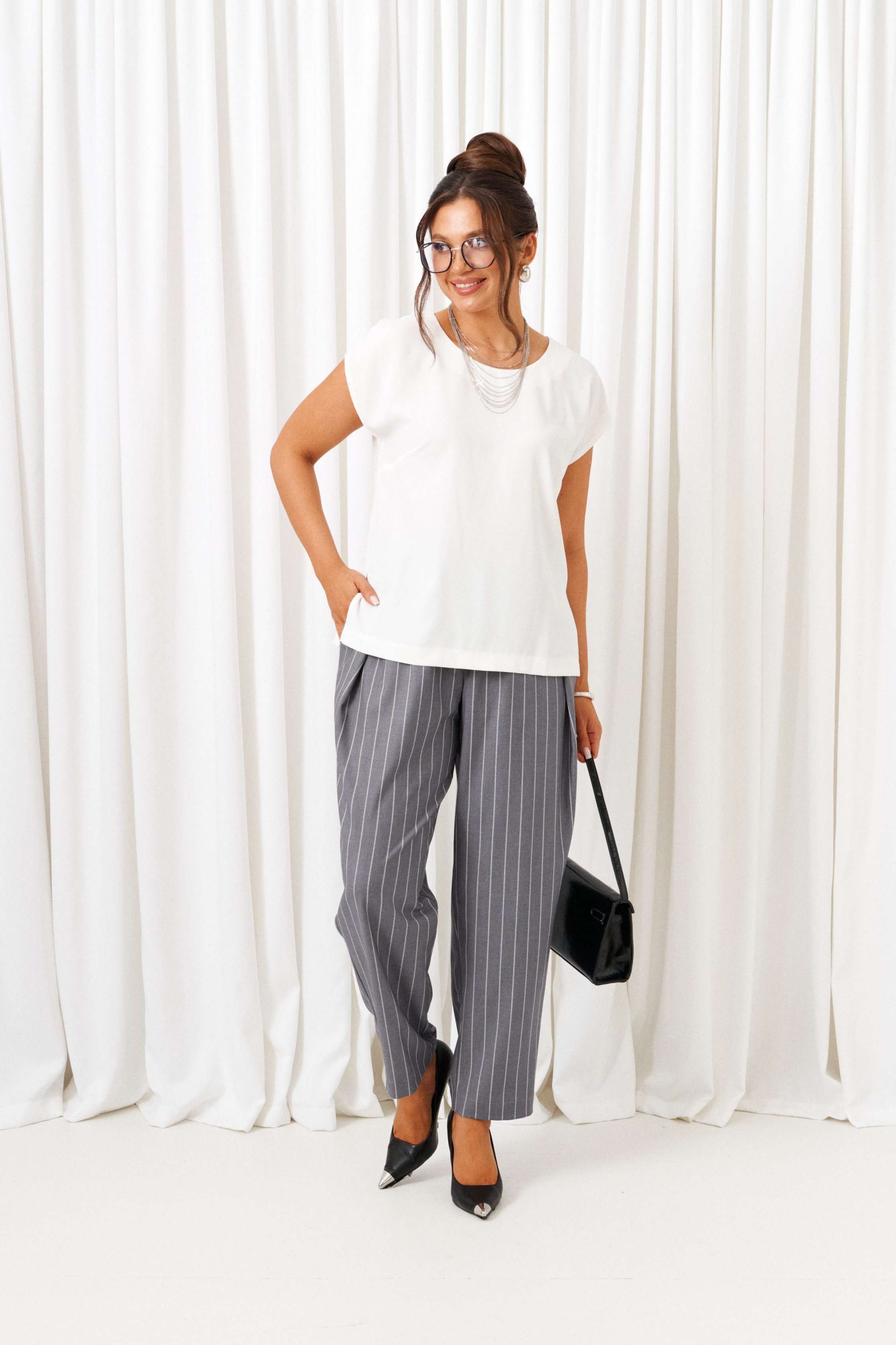 Состав: брюки, жилет – вискоза 64%, пэ 33%, спандекс 3%, блузка – пэ 68%, вискоза 27%, спандекс 5%