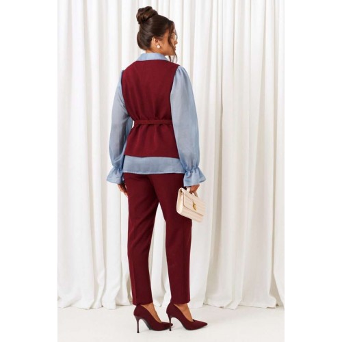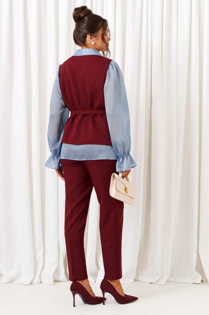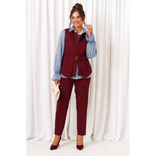 BEAUTIFUL-FREE 6440 марсала-голубой Костюм брючный