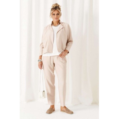 Состав: жакет, брюки – лен 80%; вискоза 20%, блузка – пэ 68%, вискоза 27%; спандекс 5%