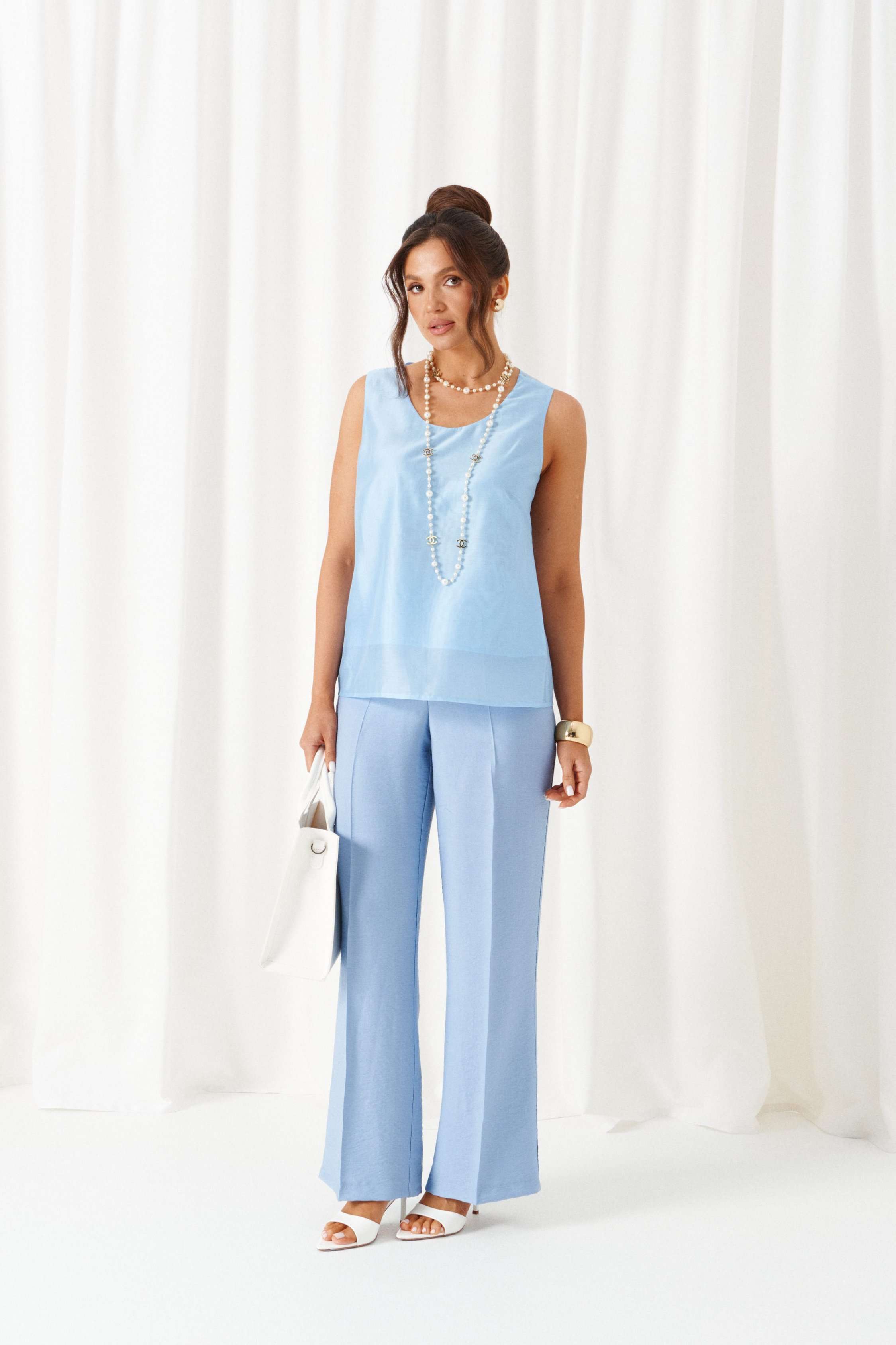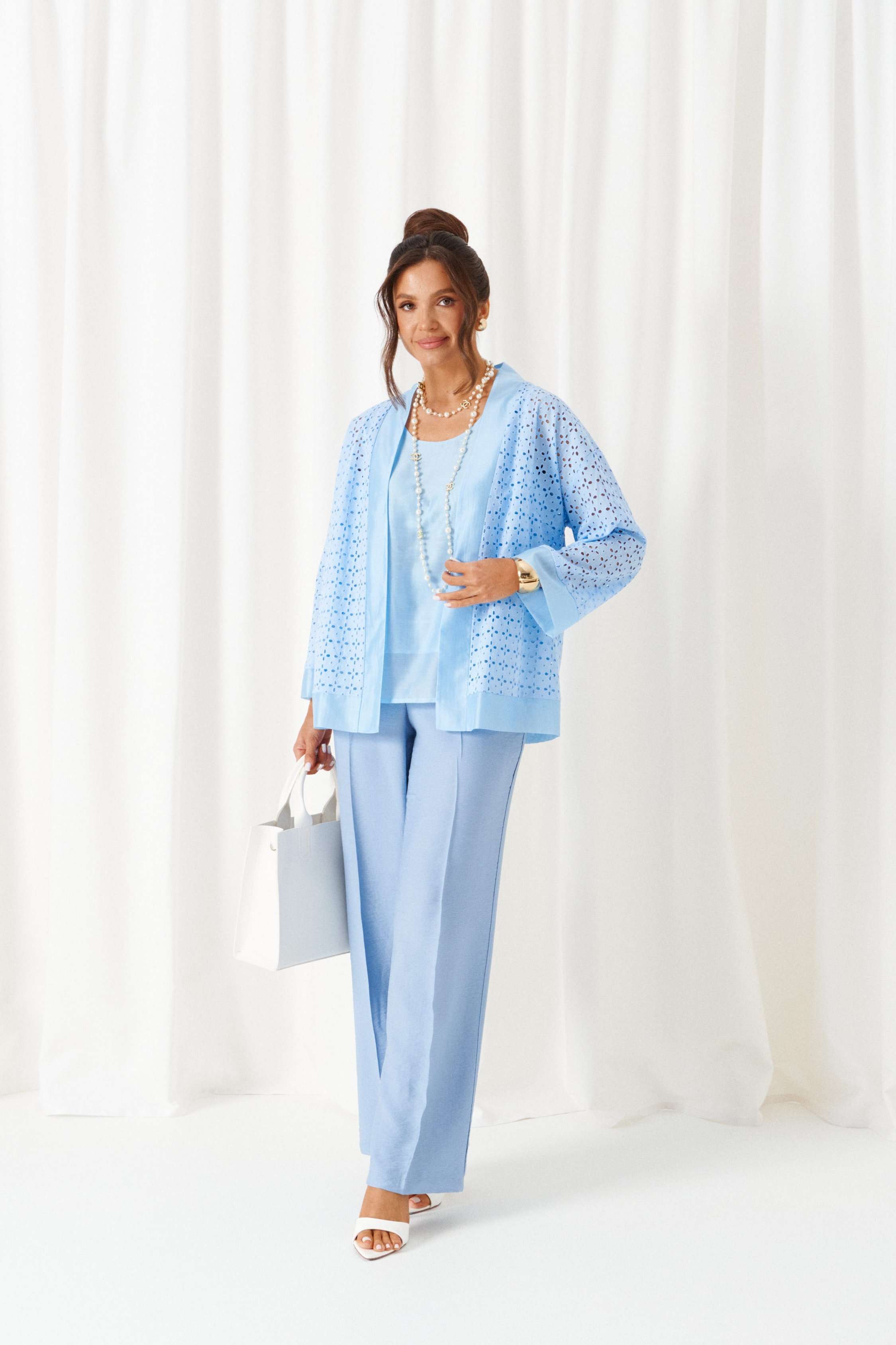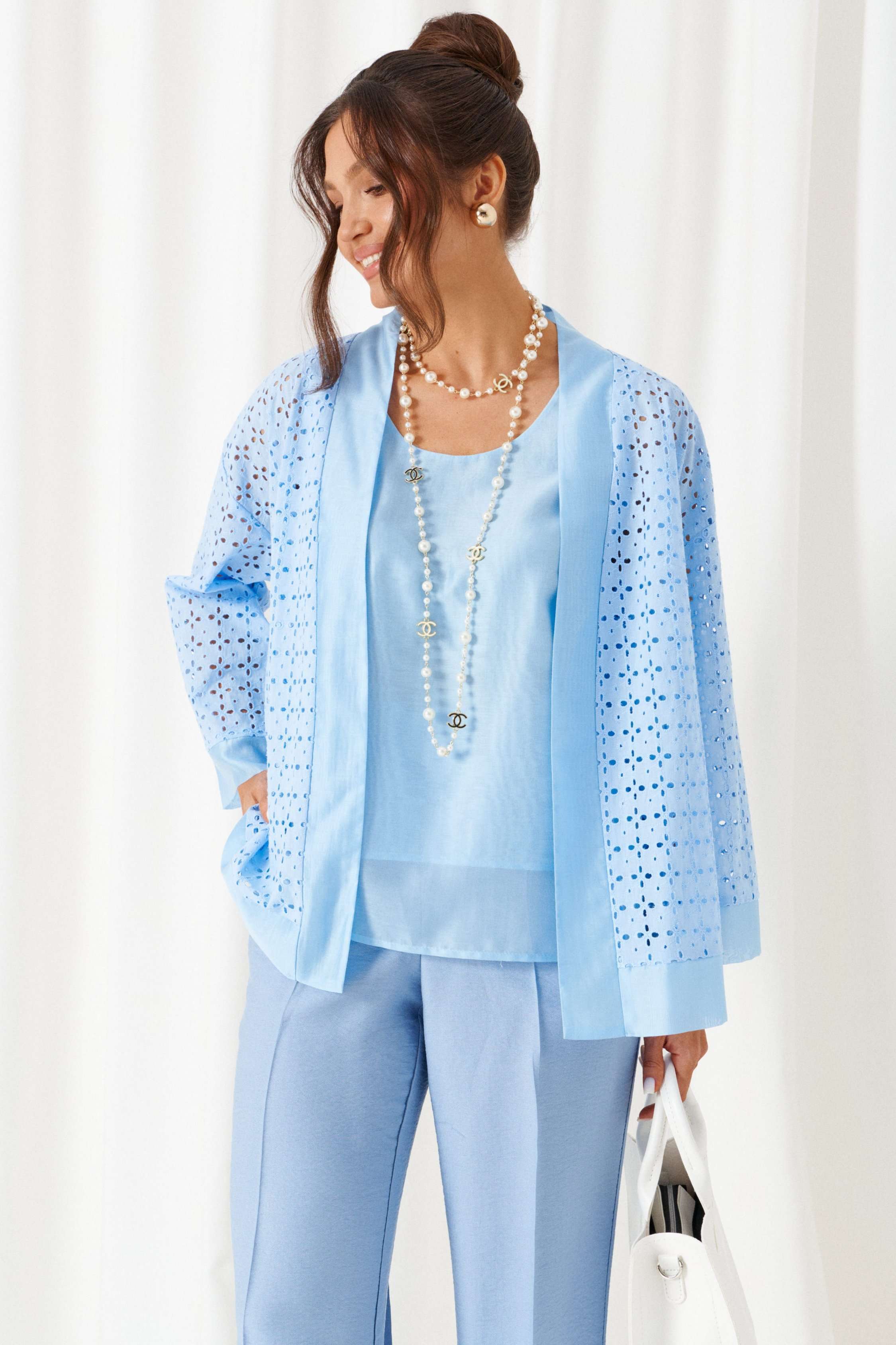 Состав: брюки, топ –лен 80%, вискоза 20%, жакет –хлопок 100%