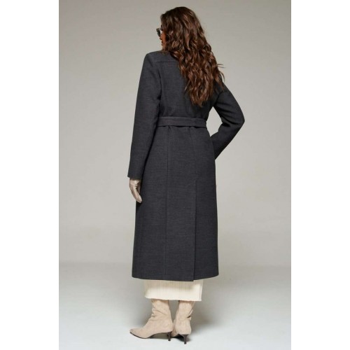 Демисезонное пальто прямого силуэта для тех, кто любит комфорт и лаконичность. Это сочетание стиля, современных материалов и безупречного кроя. Лёгкое, удобное и уютное пальто подходит для любого случая выхода. Пальто выполнено из шерстяной ткани, которая обеспечивает теплоизоляцию и защиту от ветра и влаги, подходит для межсезонья и теплой зимы. Двубортное, на подкладке. Изделие рассчитано на температурный режим от +10 до -5 градусов. Модель прямого силуэта, базового кроя; предназначена для повседневного использования. Передняя часть цельнокроеная, с двумя прорезными карманами с широкой листочкой. Под воротником расположена вытачка. Спинка с центральным швом от кокетки (в верхней части) и боковыми рельефами от проймы. Для удобства динамики внизу изделия расположена высокая шлица. Рукав длинный, двухшовный, втачной. Застёжка смещенная на петлю с видимой декоративной пуговицей и на потайные петли с пуговицами в супатной застежке справа. Воротник классический пиджачного типа с лацканами. Низ изделия ровный. Подкладка гладкая. К изделию прилагается пояс-завязка. Длина (по среднему шву спинки) = 120 см. (+1см.) Длина рукава = 63,5 см. (+1см.)