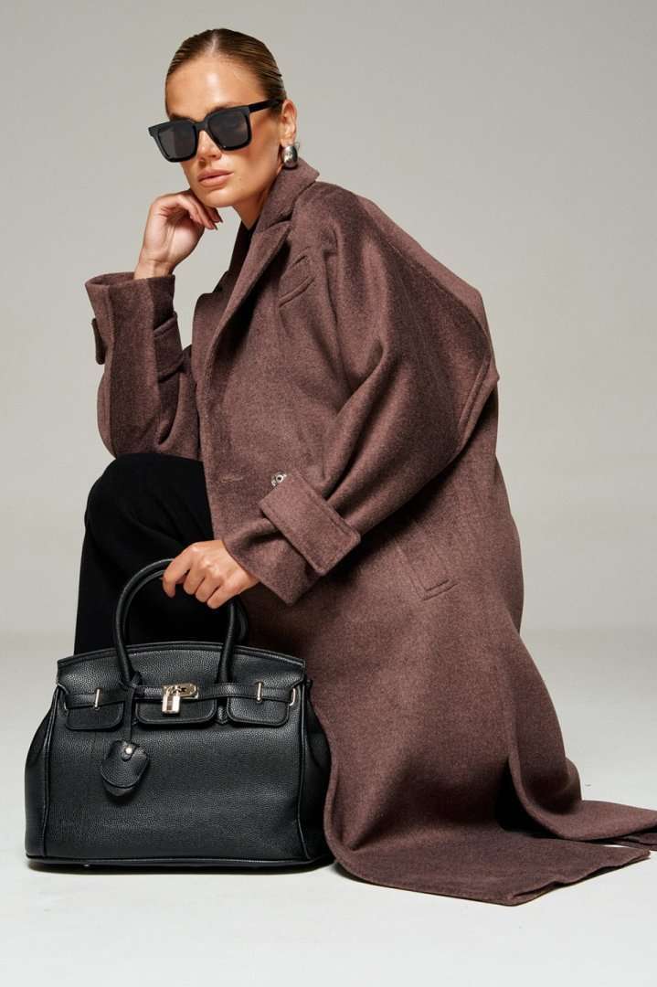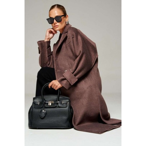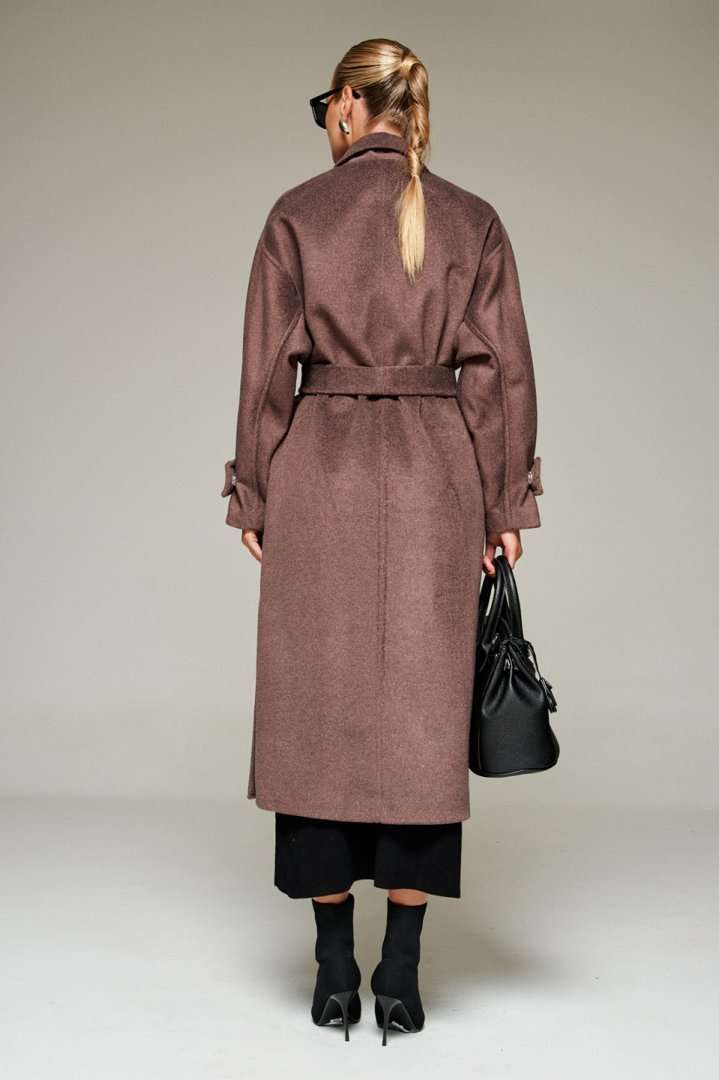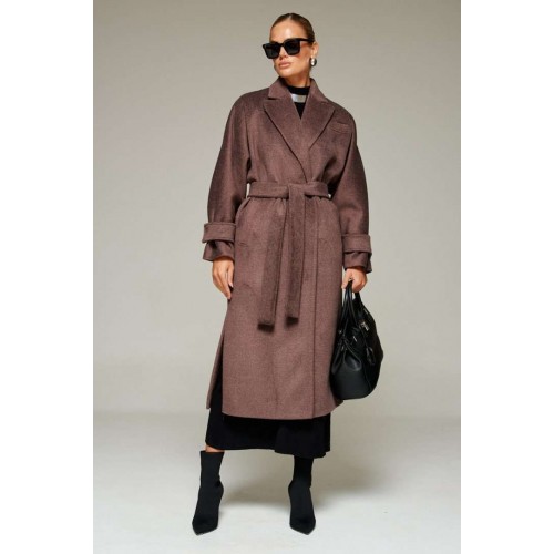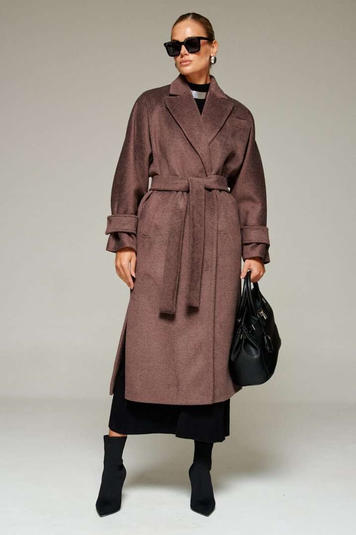 Демисезонное пальто прямого силуэта для тех, кто любит комфорт и лаконичность. Это сочетание стиля, современных материалов и безупречного кроя. Лёгкое, удобное и уютное пальто подходит для любого случая выхода. Пальто выполнено из шерстяной ткани, которая обеспечивает теплоизоляцию и защиту от ветра и влаги, подходит для межсезонья и теплой зимы. Двубортное, на подкладке. Изделие рассчитано на температурный режим от +10 до -5 градусов. Модель прямого силуэта актуального покроя «летучая мышь»; предназначена для повседневного использования. Передняя часть цельнокроеная с двумя функциональными прорезными карманами с листочкой и с нагрудной листочкой вверху справа. Под воротником выполнены вытачки. Спинка с центральным швом. Рукав длинный двухшовный тип «летучая мышь». Внизу рукава расположена пата, фиксируемая кнопкой. Воротник классический пиджачного типа с лацканами. Застёжка смещенная, на две крупные невидимые кнопки и на одну потайную петлю с пуговицей, а также на дополнительную навесную петлю с пуговицей для застегивания изделия до верха. Низ изделия ровный. Для удобства динамики по бокам изделия расположены высокие разрезы. Подкладка гладкая. К изделию прилагается пояс-завязка. Длина (по среднему шву спинки) = 122 см. (+1см.) Длина рукава (+плечо) = 75,5 см. (+1см.)