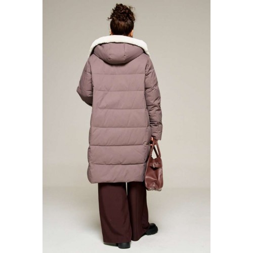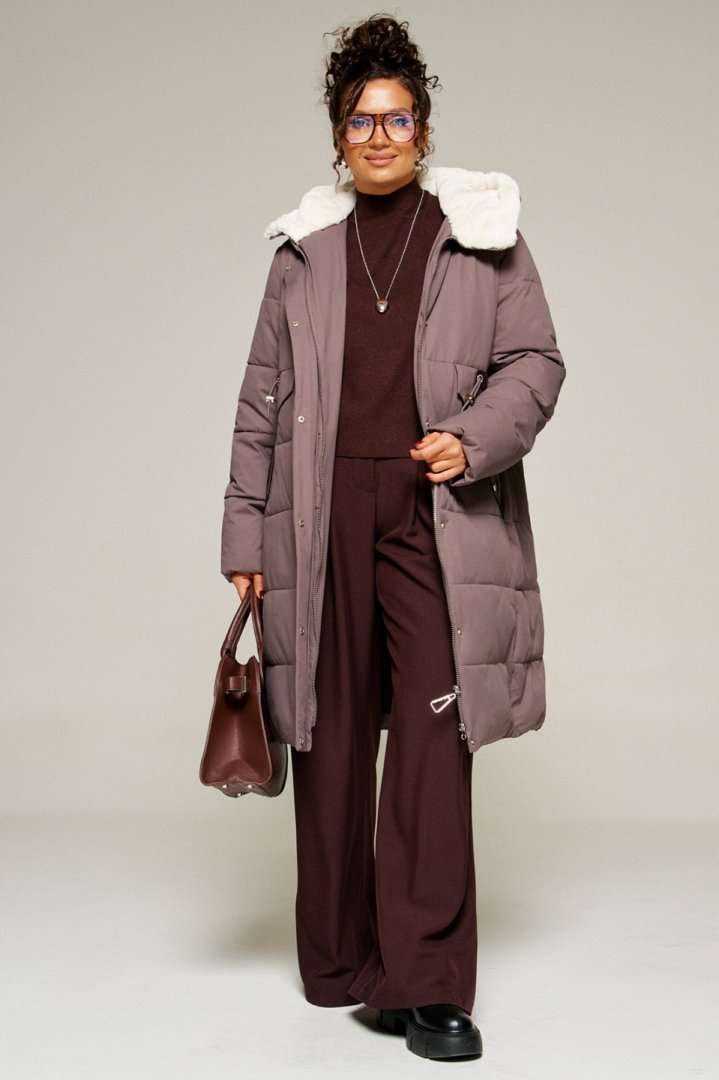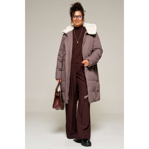Зимнее, стеганое полупальто прямого силуэта для ценителей стиля и практичности. Это отличное сочетание современных материалов и точного кроя. Лёгкое, удобное и классическое пальто подходит для холодных дней, обеспечивая тепло и комфорт в холодную погоду. Идеально сочетает в себе сдержанность и расслабленность, универсальность и гармоничность. Пальто выполнено из прочной, влагостойкой и приятной на ощупь полиэстерной ткани; на синтетической подкладке. Утеплитель холлофайбер 250 г/м. кв. предназначен для использования изделия при температурном режиме от -10 до -25 градусов. Модель прямого силуэта, базового кроя; предназначена для повседневной носки. Перед с подрезной кокеткой на уровне талии и симметричными декоративными клапанами от неё, а также с боковыми прорезными карманами с клапанами из экокожи, фиксируемые на кнопку. Спинка цельнокроеная с вертикальными рельефами от проймы. Рукав длинный втачной двухшовный. По низу внутри рукава предусмотрена дополнительная вставка в виде притачной трикотажной манжеты. Капюшон с застежкой спереди умеренного объема. Внутренняя часть капюшона выполнена из искусственного меха, который выполняет декоративную и защитную функции, создавая дополнительное тепло и защиту от ветра и холода. Застежка центральная на двустороннюю молнию от верха до низа под ветрозащитной планкой и кнопки по краю борта. Низ изделия ровный. На уровне талии расположена кулиса с продетым шнуром в цвет изделия и декоративными металлическими фиксаторами. Видимая часть кулисы спереди выполнена из экокожи. Подкладка гладкая с наличием внутреннего кармана слева. Длина (по среднему шву спинки) ~ 101 см. (+2 см.) Длина рукава ~ 65 см. (+1.5 см.) С учетом плюсовых прибавок подходит на рост 170 см.