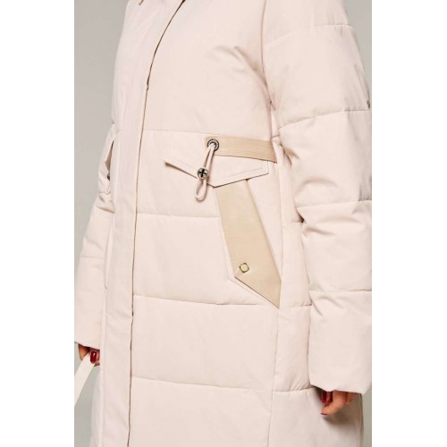 Зимнее, стеганое полупальто прямого силуэта для ценителей стиля и практичности. Это отличное сочетание современных материалов и точного кроя. Лёгкое, удобное и классическое пальто подходит для холодных дней, обеспечивая тепло и комфорт в холодную погоду. Идеально сочетает в себе сдержанность и расслабленность, универсальность и гармоничность. Пальто выполнено из прочной, влагостойкой и приятной на ощупь полиэстерной ткани; на синтетической подкладке. Утеплитель холлофайбер 250 г/м. кв. предназначен для использования изделия при температурном режиме от -10 до -25 градусов. Модель прямого силуэта, базового кроя; предназначена для повседневной носки. Перед с подрезной кокеткой на уровне талии и симметричными декоративными клапанами от неё, а также с боковыми прорезными карманами с клапанами из экокожи, фиксируемые на кнопку. Спинка цельнокроеная с вертикальными рельефами от проймы. Рукав длинный втачной двухшовный. По низу внутри рукава предусмотрена дополнительная вставка в виде притачной трикотажной манжеты. Капюшон с застежкой спереди умеренного объема. Внутренняя часть капюшона выполнена из искусственного меха, который выполняет декоративную и защитную функции, создавая дополнительное тепло и защиту от ветра и холода. Застежка центральная на двустороннюю молнию от верха до низа под ветрозащитной планкой и кнопки по краю борта. Низ изделия ровный. На уровне талии расположена кулиса с продетым шнуром в цвет изделия и декоративными металлическими фиксаторами. Видимая часть кулисы спереди выполнена из экокожи. Подкладка гладкая с наличием внутреннего кармана слева. Длина (по среднему шву спинки) ~ 101 см. (+2 см.) Длина рукава ~ 65 см. (+1.5 см.) С учетом плюсовых прибавок подходит на рост 170 см.
