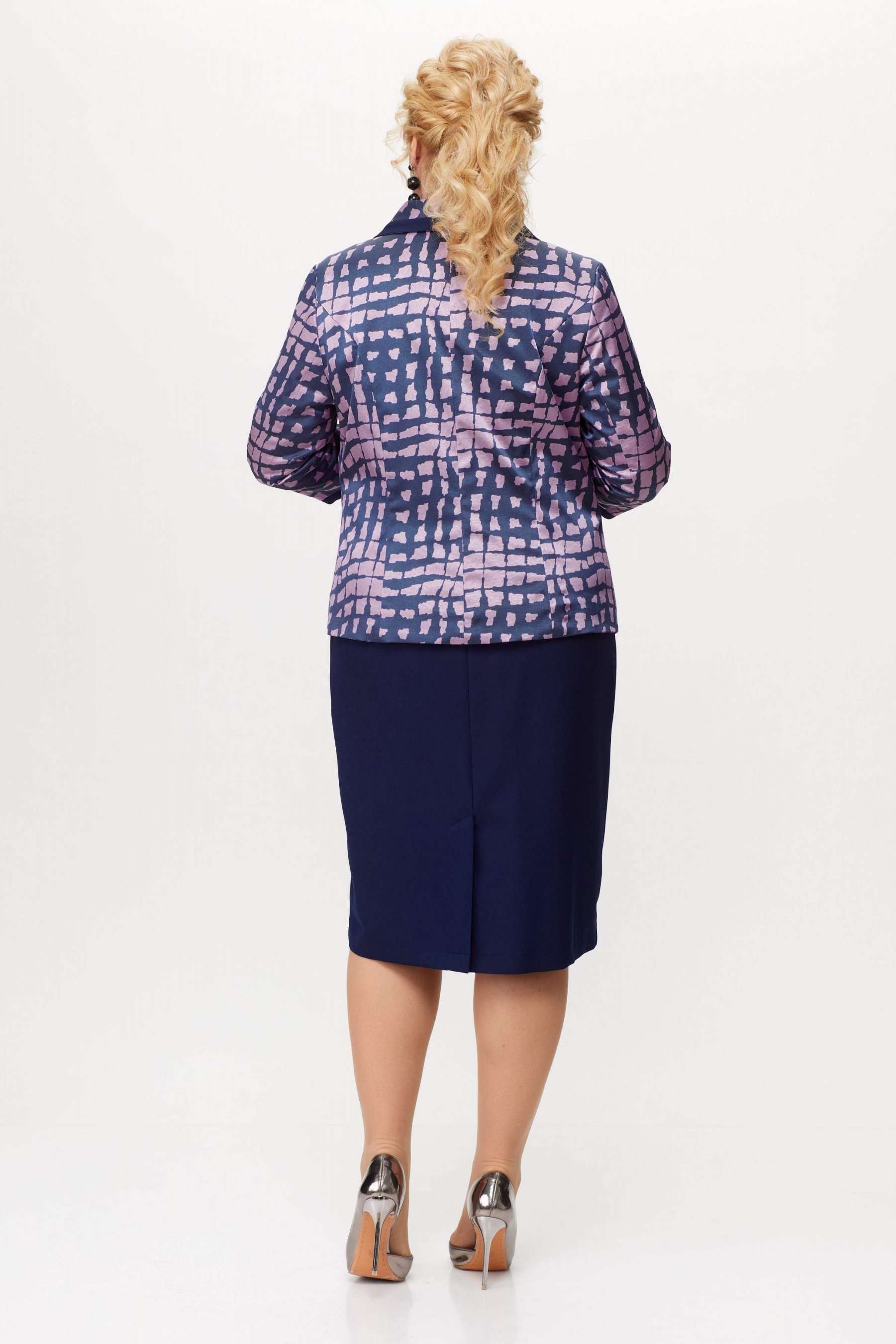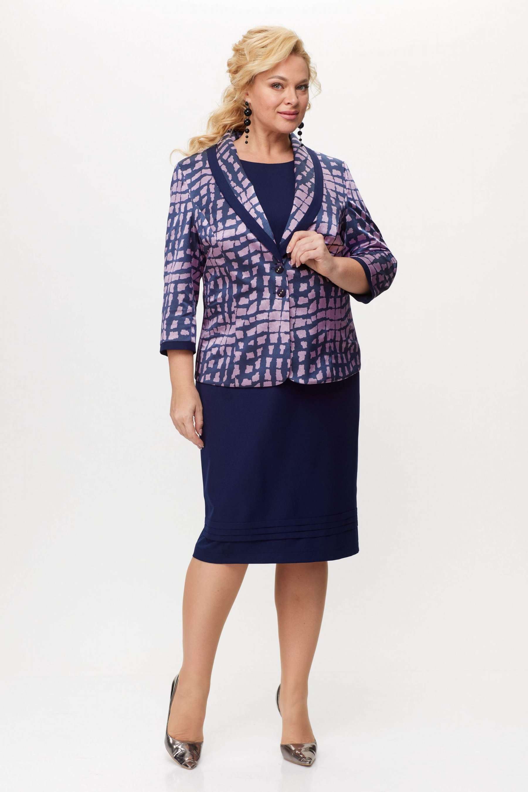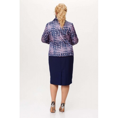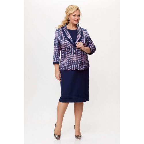 Элегантный женский комплект состоит из жакета и платья. Платье полуприлегающего силуэта. По переду отрезной бочок, выходящий из проймы, по низу переда застрочены 3 горизонтальные декоративные складки. Спинка с центральным швом, застежкой молния и талиевыми выточками. Рукава втачные, одношовные . Платье без подкладки. Жакет полуприлегающего силуэта, на подкладке. По переду рельефные швы, накладной карман, застежка однобортная на петли- пуговицы. Воротник типа «шаль», по краю обработан отделочными планками шириной 2 см. Спинка с центральным швом, рельефами. Рукава втачные двухшовные длина ¾, по низу рукава отделочные планки шириной 2 см. Длина платья по спинке – 104 см. Длина рукава платья – 28 см. Длина жакета по спинке – 60 см. Длина рукава жакета – 48 см.