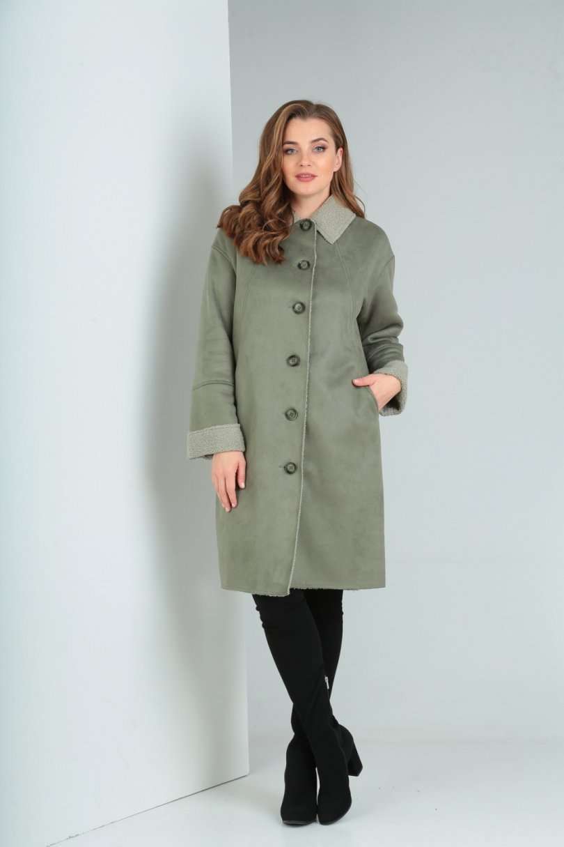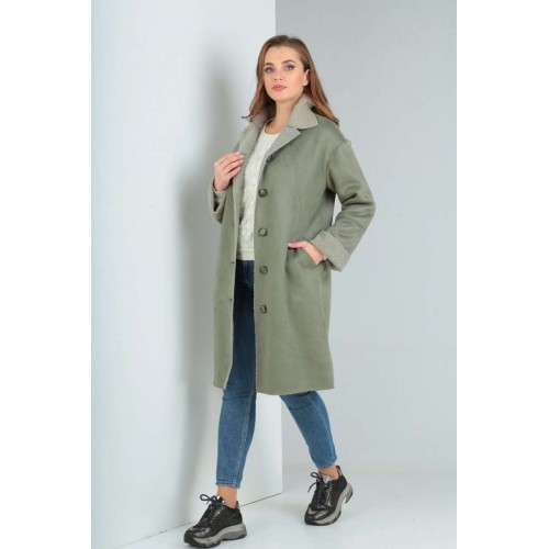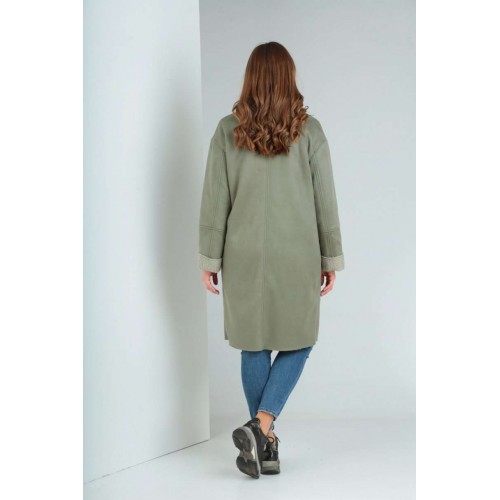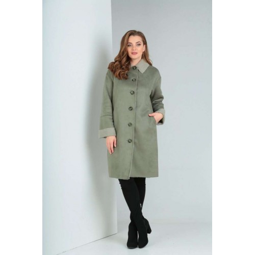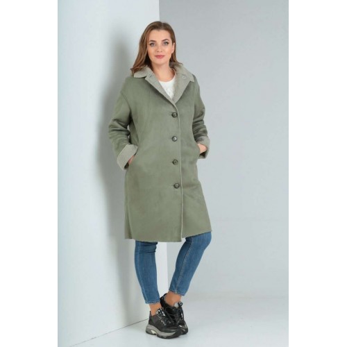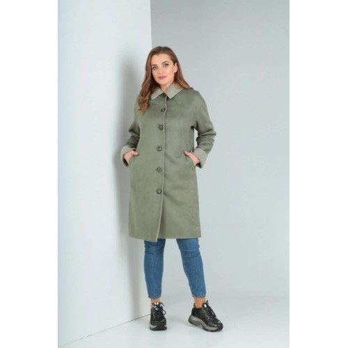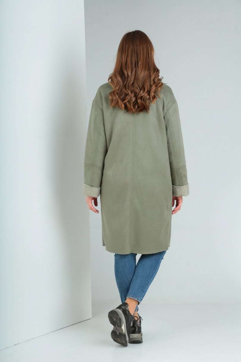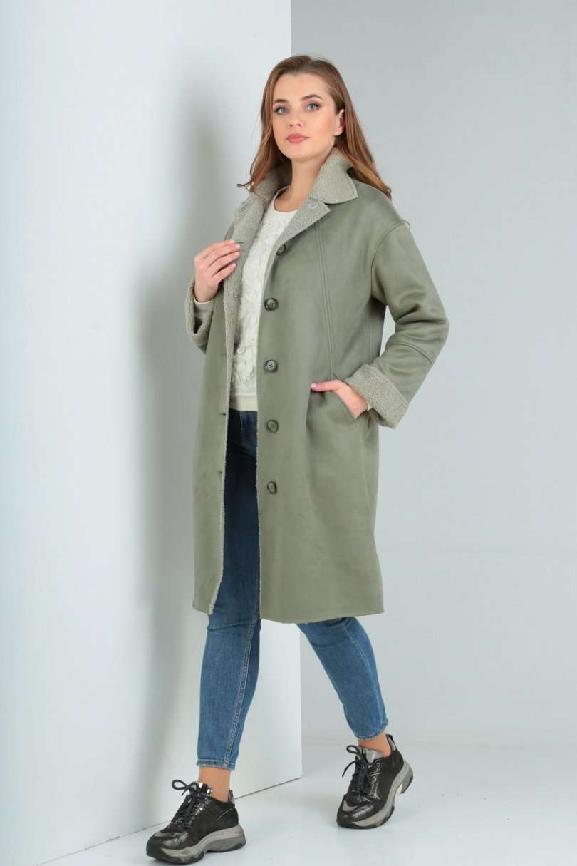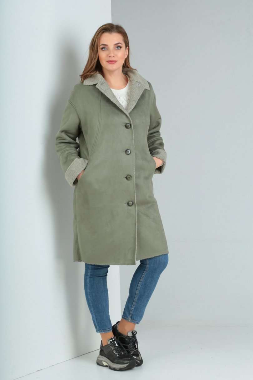 Пальто женское полуприлегающего силуэта с центральной застёжкой на петли и пуговицы, линия плеча спущена. По переду рельефные швы, в которых обработаны карманы. По спинке средний шов. Рукав втачной с отложной манжетой. Воротник отложной со стойкой. Длина изделия по спинке 97 см. Длина рукава с плечом 59 см.