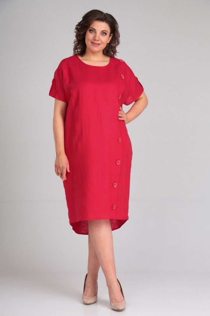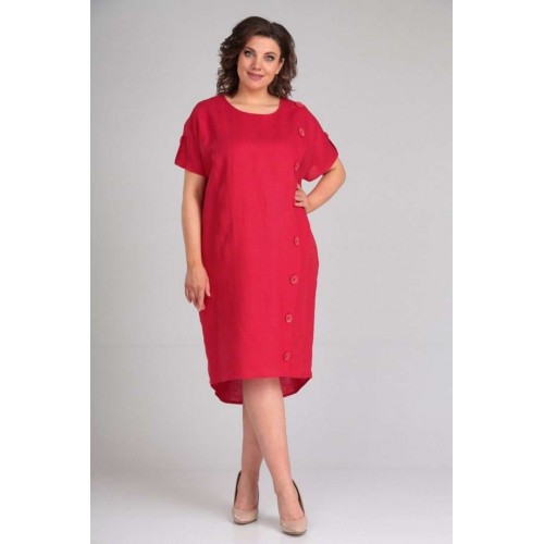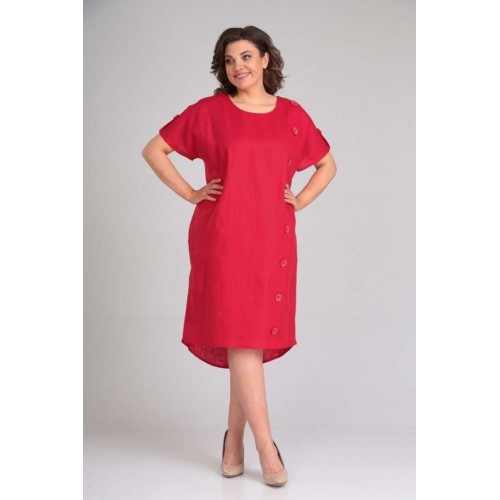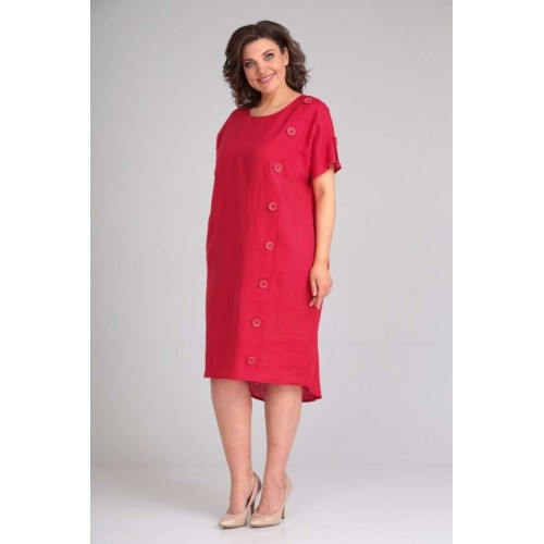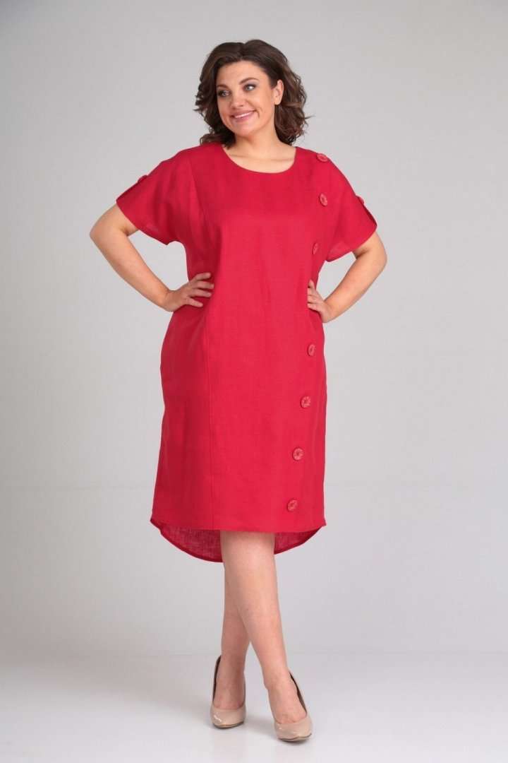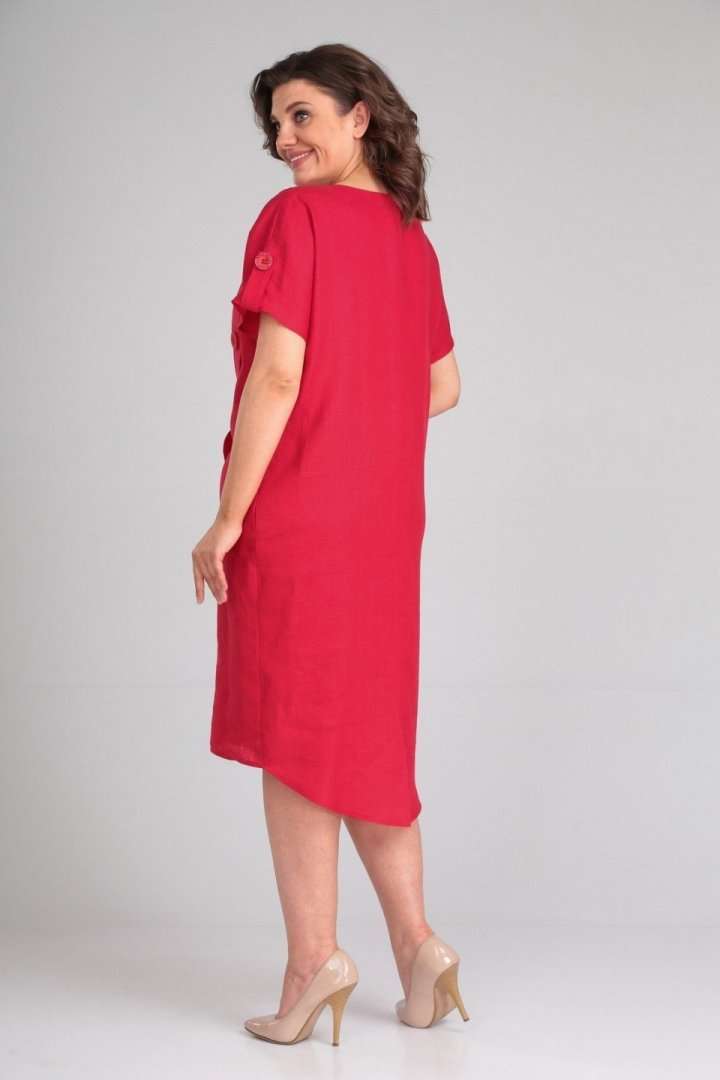 Платье женское полуприлегающего силуэта с цельнокроенным рукавом. По переду рельефные швы,левый рельефный шов с имитацией планки-застёжки на пуговицы. В боковых швах обработаны карманы. По спинке средний шов заканчивающийся разрезом. По плечевым швам отделочные хлястики с пуговицей. В качестве отделки используется отделочная строчка и фурнитура. длина по спинке 100 см,длина рукава 33 см.