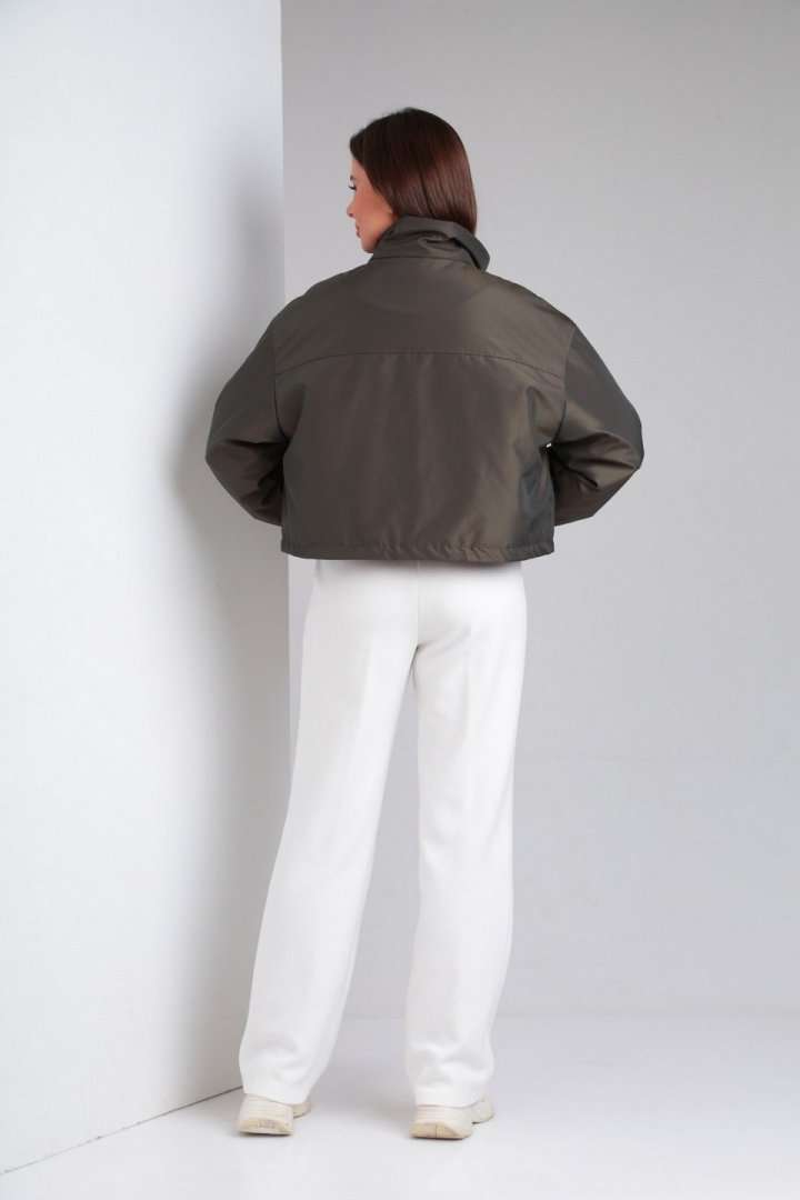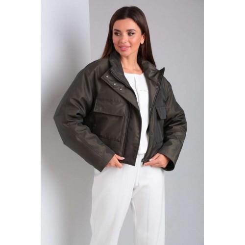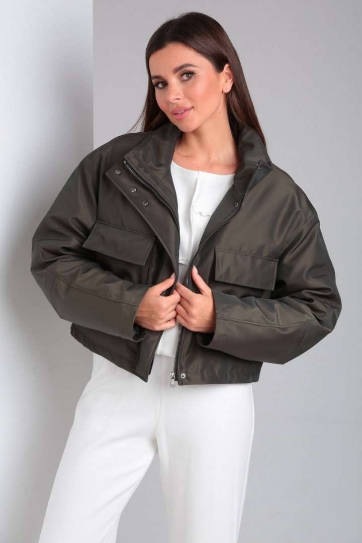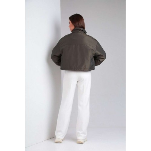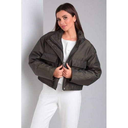Куртка женская, прямого силуэта, с центральной застежкой на тесьму-молнию и ветрозащитной планкой с застежкой на потайные кнопки. По переду накладные карманы с клапанами. Спинка с кокеткой. Рукав втачной, двухшовный. На локтевой части-вытачка. Воротник- стойка. Низ изделия обработан обтачкой-кулиской, с резинкой и фиксаторами. Подкладка стеганая синтепоном. В качестве отделки используется отделочная строчка. Длина по спинке 52 см . , Длина рукава 57 см.