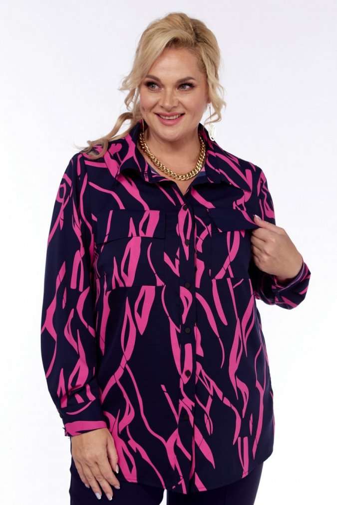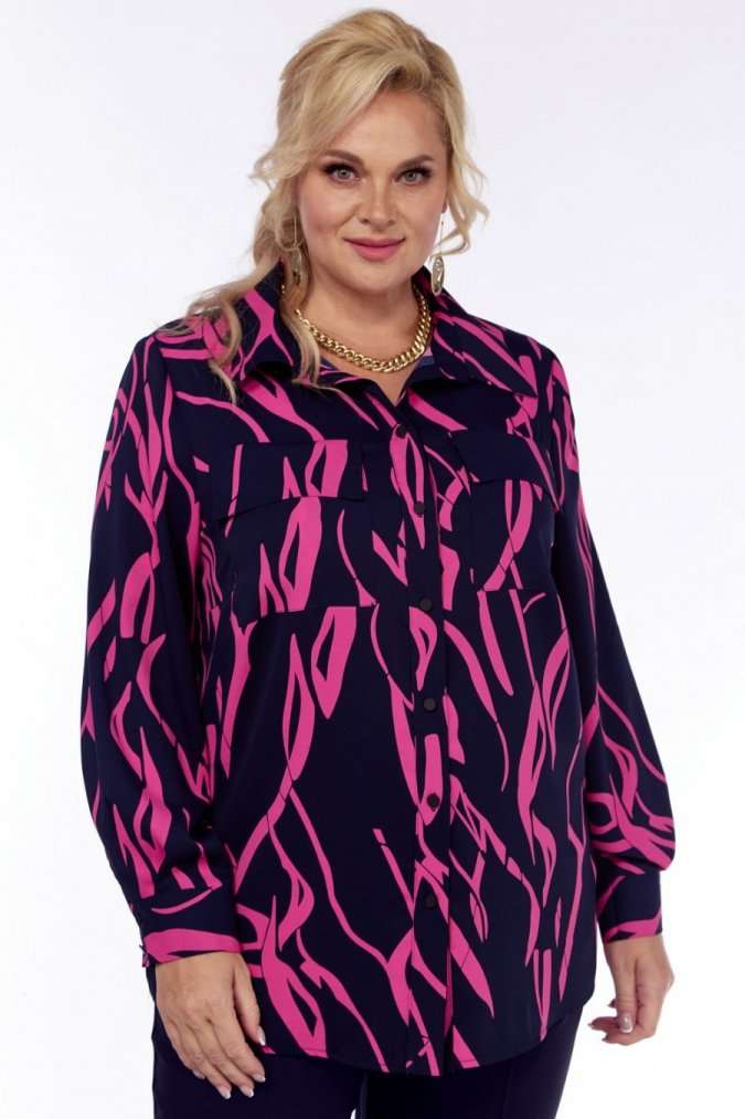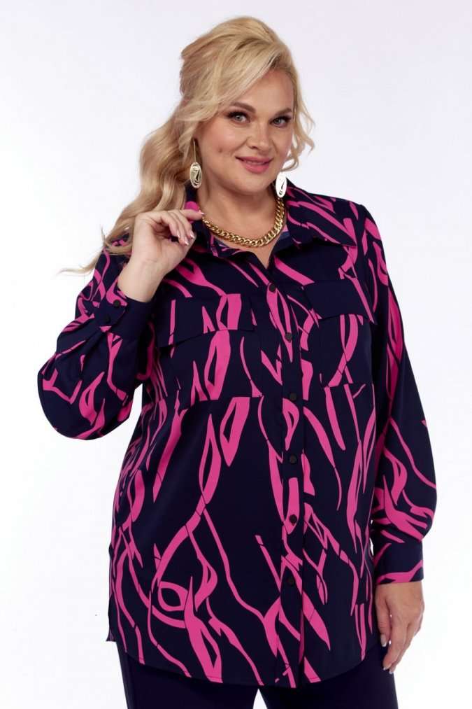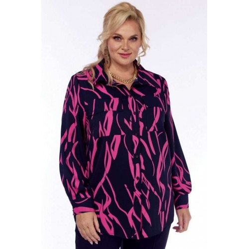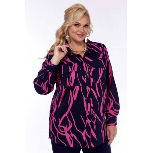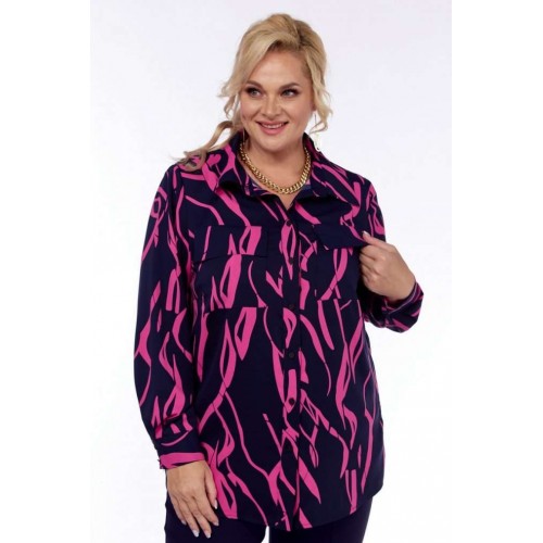Блуза прямого силуэта из принтованной ткани. По центру полочки застежка в виде планки на миниатюрные пуговицы, что служит декоративным элементом изделия. Полочки с накладными карманами. Воротник стояче-отложной, рукав втачной, внизу обработан притачной манжетой. Спинка с отрезной кокеткой, и встречной складкой, для повышенной комфортности. В боковых швах небольшие разрезы.