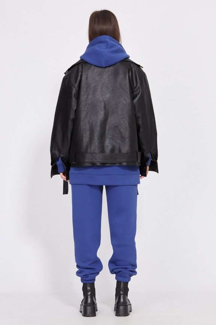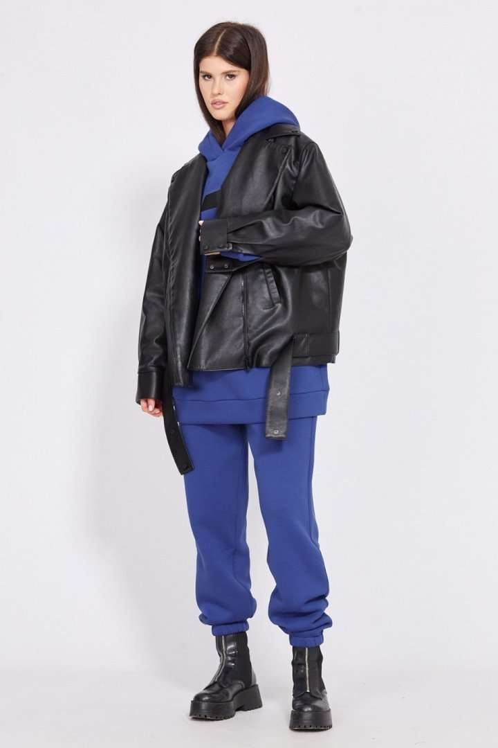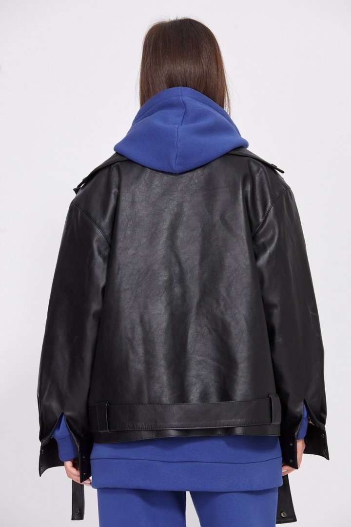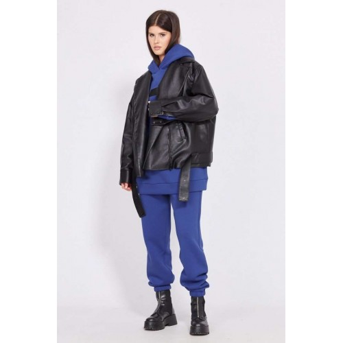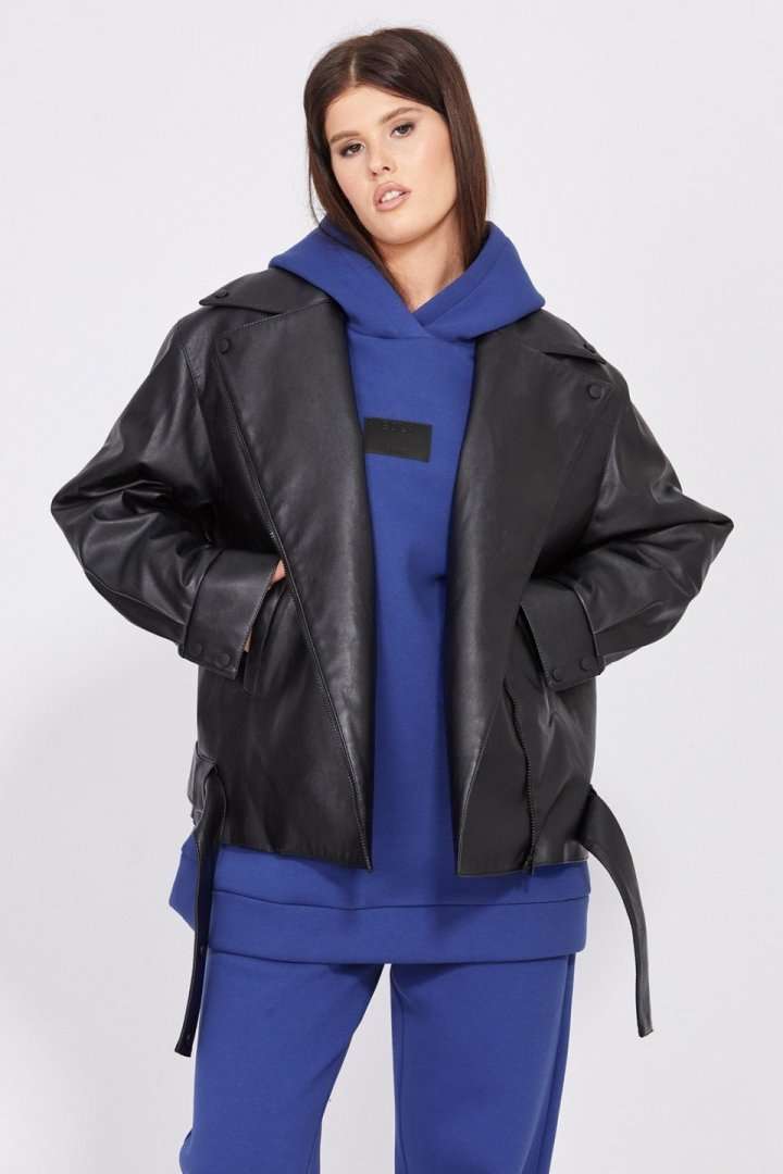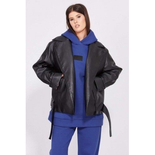 Куртка выполнена из экокожи, утепленной изософтом. Куртка прямого силуэта, длиной до линии бедер. Спереди смещенная застежка на молнию, лацканы и прорезные карманы. Спинка цельная. Плечевой шов спущен. Воротник пиджачного типа. Рукав рубашечного покроя, одношовный, с прорезью и складками по низу. Низ рукава на притачной манжете, застегивающейся на две пробивные кнопки. По низу куртки настрочены шлевки, в которые протянут съемный пояс из основной ткани. Куртка на притачной по низу стеганной подкладке. Температурный режим: от +5 до -5 С. Длина куртки по спинке: р.42-46 - 60 см, р.48-52 - 65 см. Длина рукава: р.42-46 - 78,5 см, р.48-52 - 80 см. Гарантийный срок не установлен. Гост 25295-2003