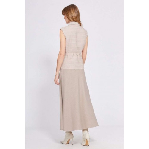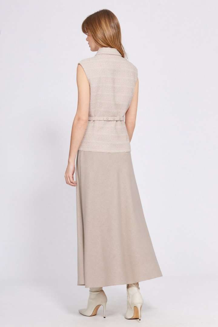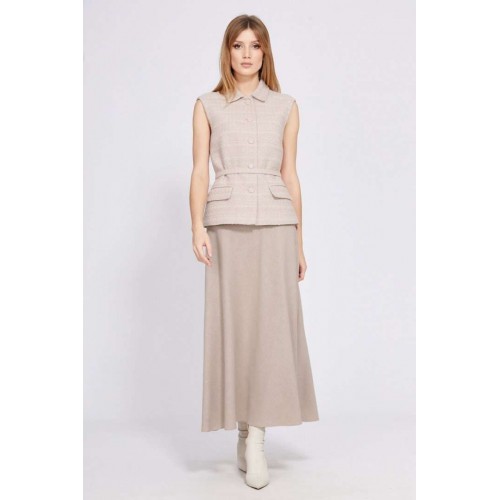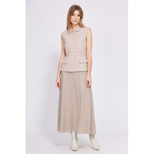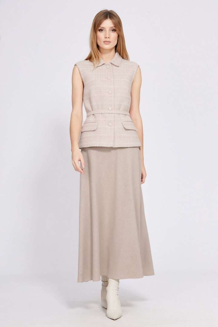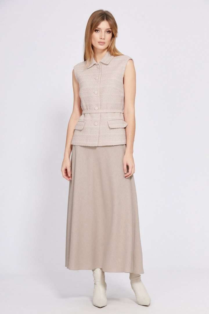 Юбка выполнена из костюмно-плательной ткани. Юбка расширенная к низу, на притачном поясе, длиной миди. Переднее и заднее полотнища цельные и выкроены по косой. Застежка в левом боковом шве на потайную молнию и пуговицу. Юбка на отлетной по низу подкладке. Длина юбки: р.44-54 -97 см. Гарантийный срок не установлен. Гост 25294 - 2003