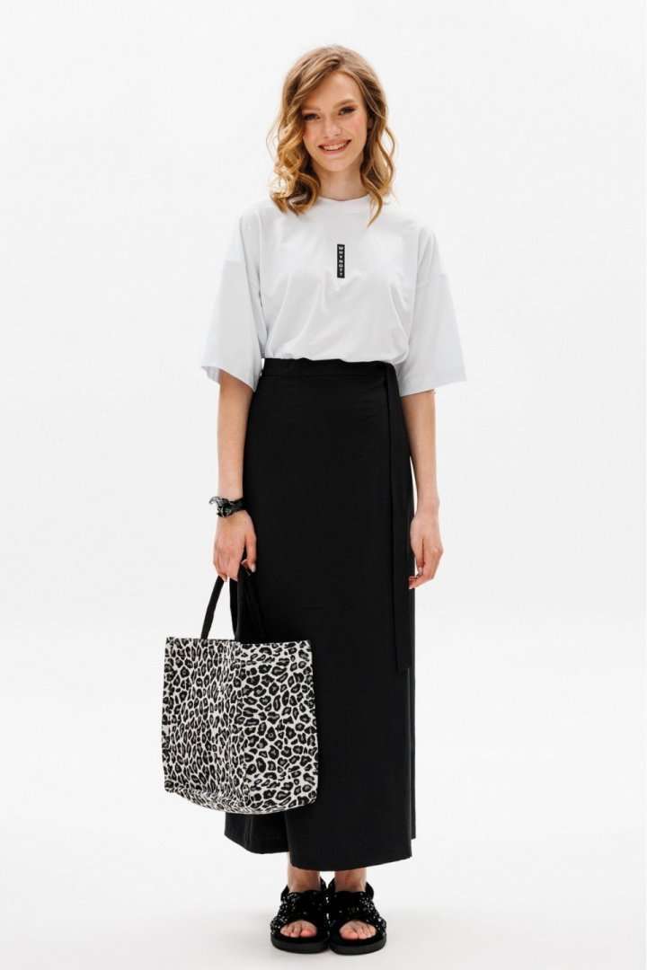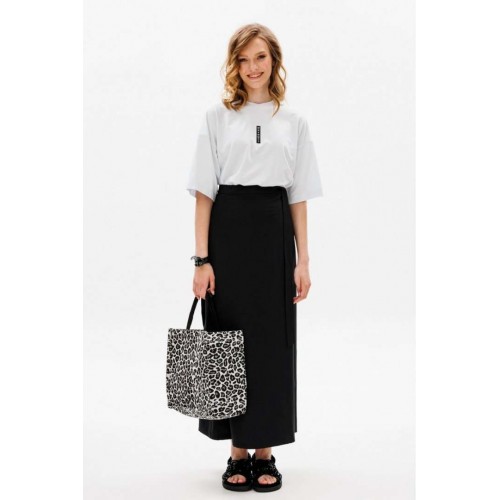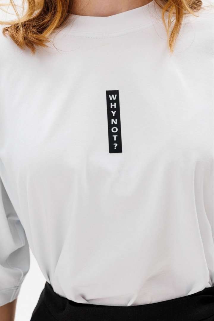 Джемпер выполнен из трикотажного полотна, прямого покроя, длиной до линии бедер. Перед и спинка цельные. Горловина округлой формы. Плечевой шов спущен. Рукав одношовный, длиной до линии локтя. Перед декорирован принтом. Длина джемпера: 67,5 см. Длина рукава: 47 см. Гарантийный срок не установлен ГОСТ 31409-2009