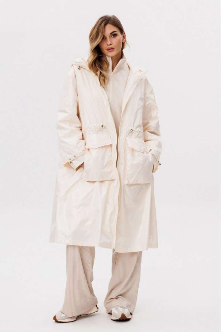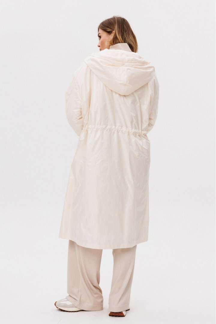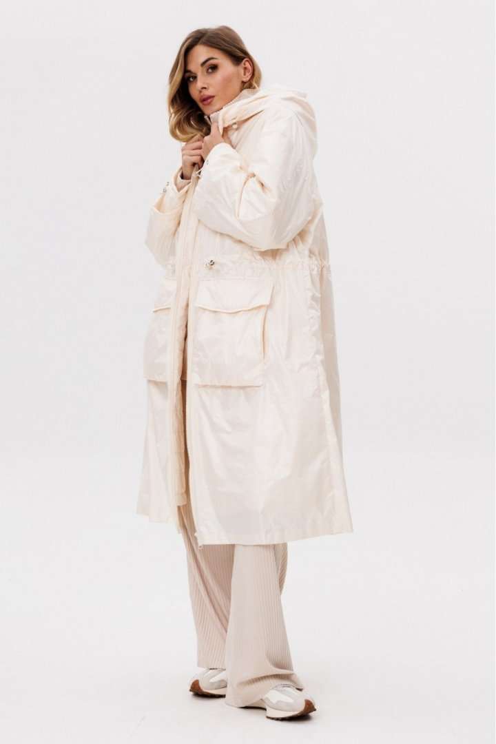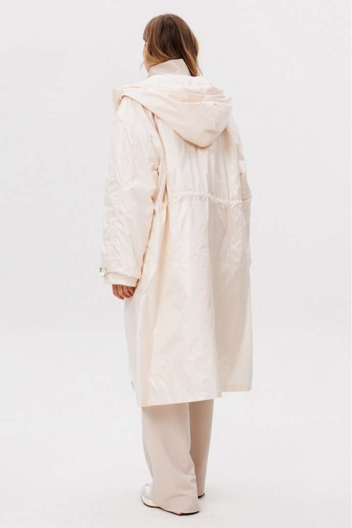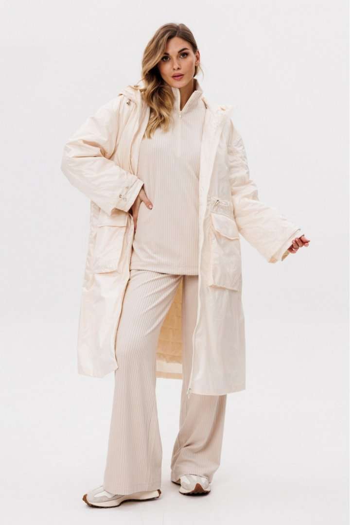 Пальто выполнено из плащевой ткани, утепленное Isosoft. Пальто Х-образного силуэта, длиной ниже линии колена. Спереди накладные карманы с клапанами и центральная застежка на молнию. Спинка цельная. По линии талии кулиса с эластичной тесьмой. Горловина округлой формы с капюшоном. Плечевой шов удлинен. Рукав рубашечного покроя, трехшовный. По низу рукава и краю капюшона эластичная тесьма с фиксаторами. Пальто на отлетной по низу подкладке из основной ткани стеганой с утеплителем. Температурный режим от +10 до 0С. Длина: р. 44-54 - 106 см. Длина рукава: р. 44-48 - 74 см, р. 50-54 - 75 см. Гарантийный срок не установлен ГОСТ 25295 - 2003