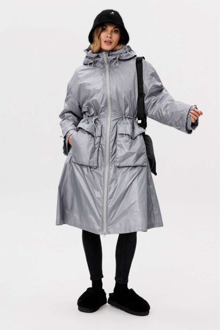 Пальто выполнено из плащевой ткани, утепленное Isosoft. Пальто Х-образного силуэта, длиной ниже линии колена. Спереди накладные карманы с клапанами и центральная застежка на молнию. Спинка цельная. По линии талии кулиса с эластичной тесьмой. Горловина округлой формы с капюшоном. Плечевой шов удлинен. Рукав рубашечного покроя, трехшовный. По низу рукава и краю капюшона эластичная тесьма с фиксаторами. Пальто на отлетной по низу подкладке из основной ткани стеганой с утеплителем. Температурный режим от +10 до 0С. Длина: р. 44-54 - 106 см. Длина рукава: р. 44-48 - 74 см, р. 50-54 - 75 см. Гарантийный срок не установлен ГОСТ 25295 - 2003