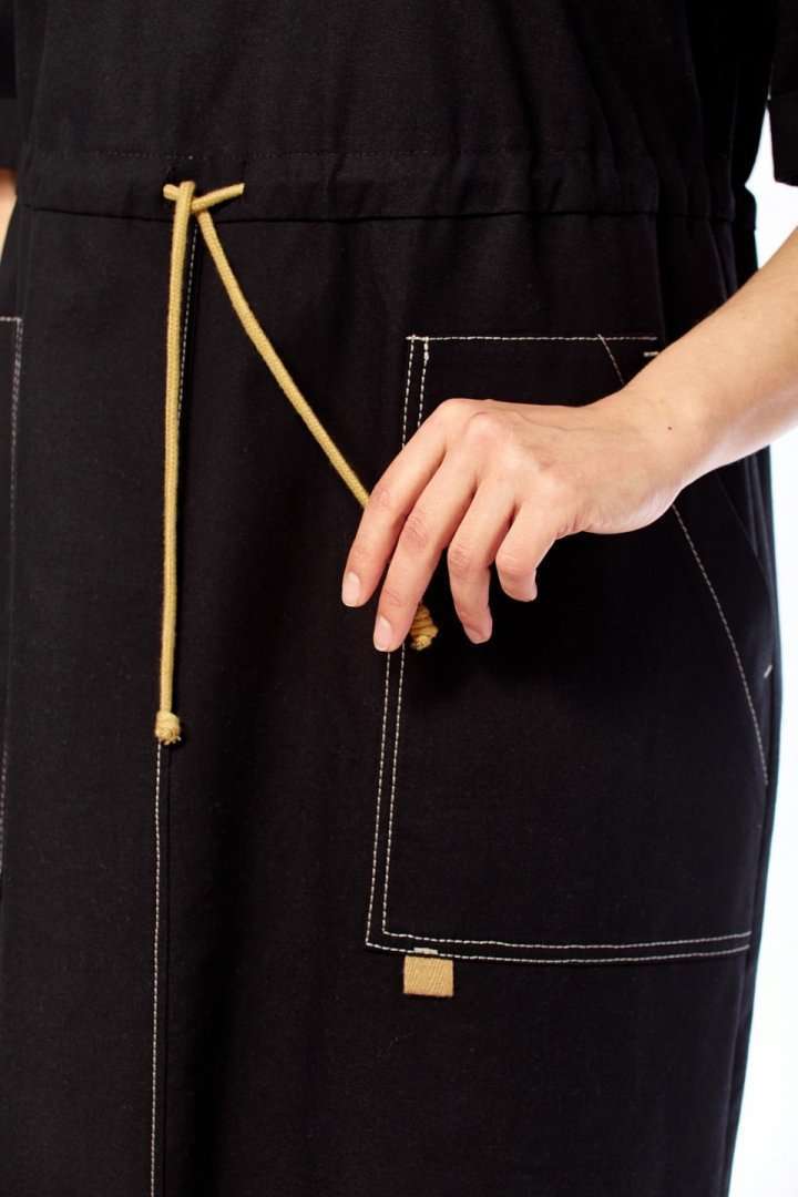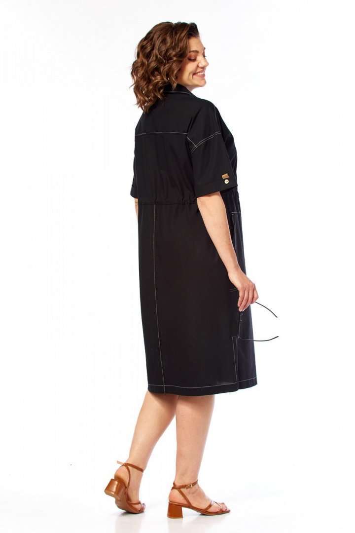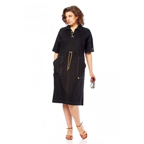 Платье 3516 Jurimex — стильное женское платье из коллекции бренда Jurimex. Изготовлено из качественного плательного материала с добавлением льна и хлопка, что делает его отличным выбором для весенне-летнего сезона. Прямой силуэт и кулиска на талии подчеркивают фигуру, а длина миди (104-107 см) придает образу завершенность. Воротник оформлен планками и пуговицами, добавляя оригинальности. Практичные накладные карманы и декоративная тесьма делают это платье идеальным для повседневного ношения и офиса. Черный цвет позволяет легко сочетать с различной обувью и аксессуарами. Длина рукава с плечом составляет 43-44 см, что обеспечивает комфорт в течение дня.