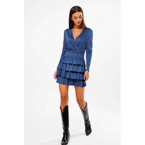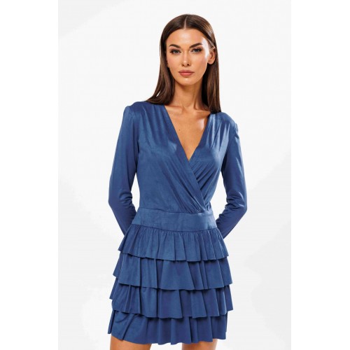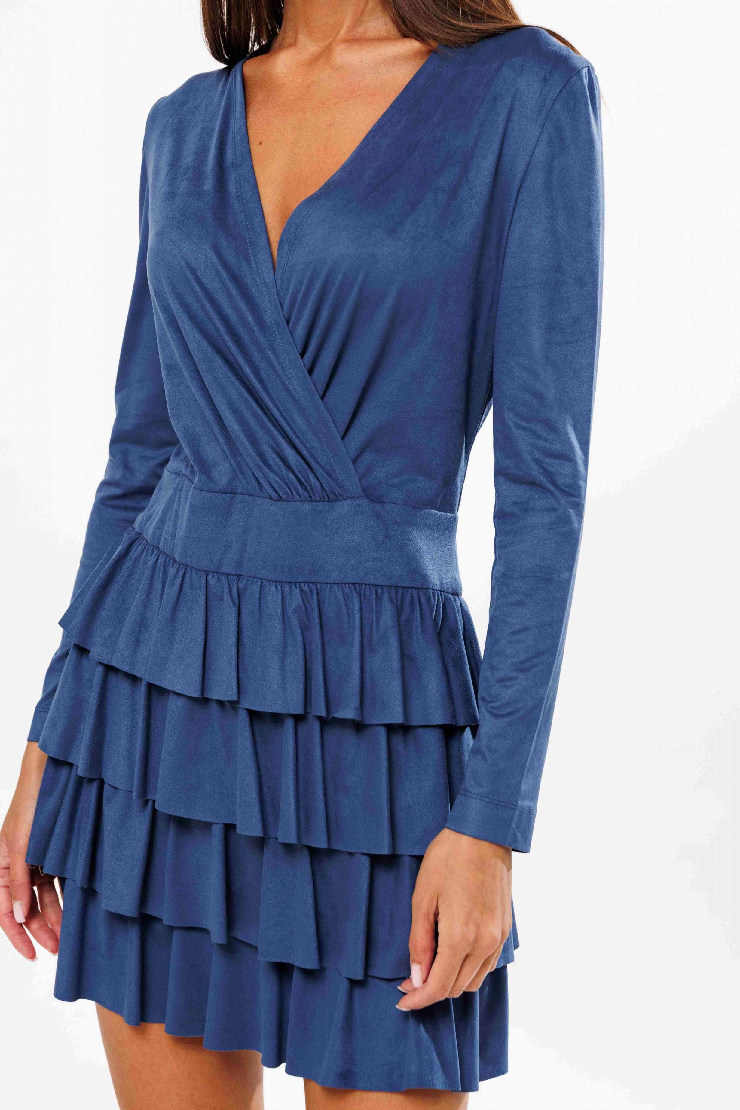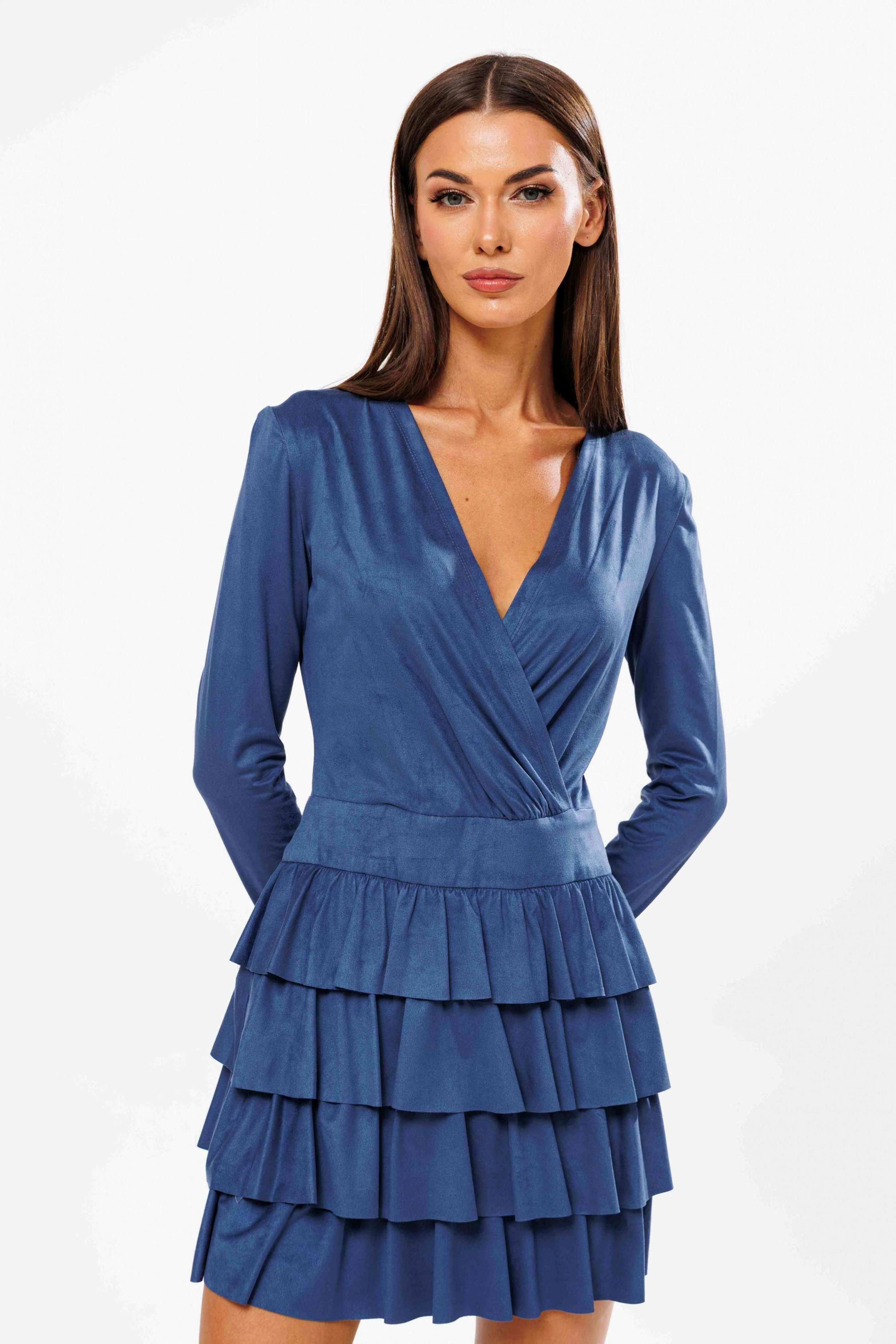 Нежное, романтичное и женственное… Так в нескольких словах можно охарактеризовать платье с воланами - один из главных трендов этого сезона. Оно как нельзя лучше подойдет для праздничных выходов. Платье полуприлегающего силуэта, лиф с запахом и наклонными складками от линии талии, отрезной пояс и нижняя часть - конические воланы. Рукав втачной. Длина платья около 87 см. Длина рукава около 60 см.