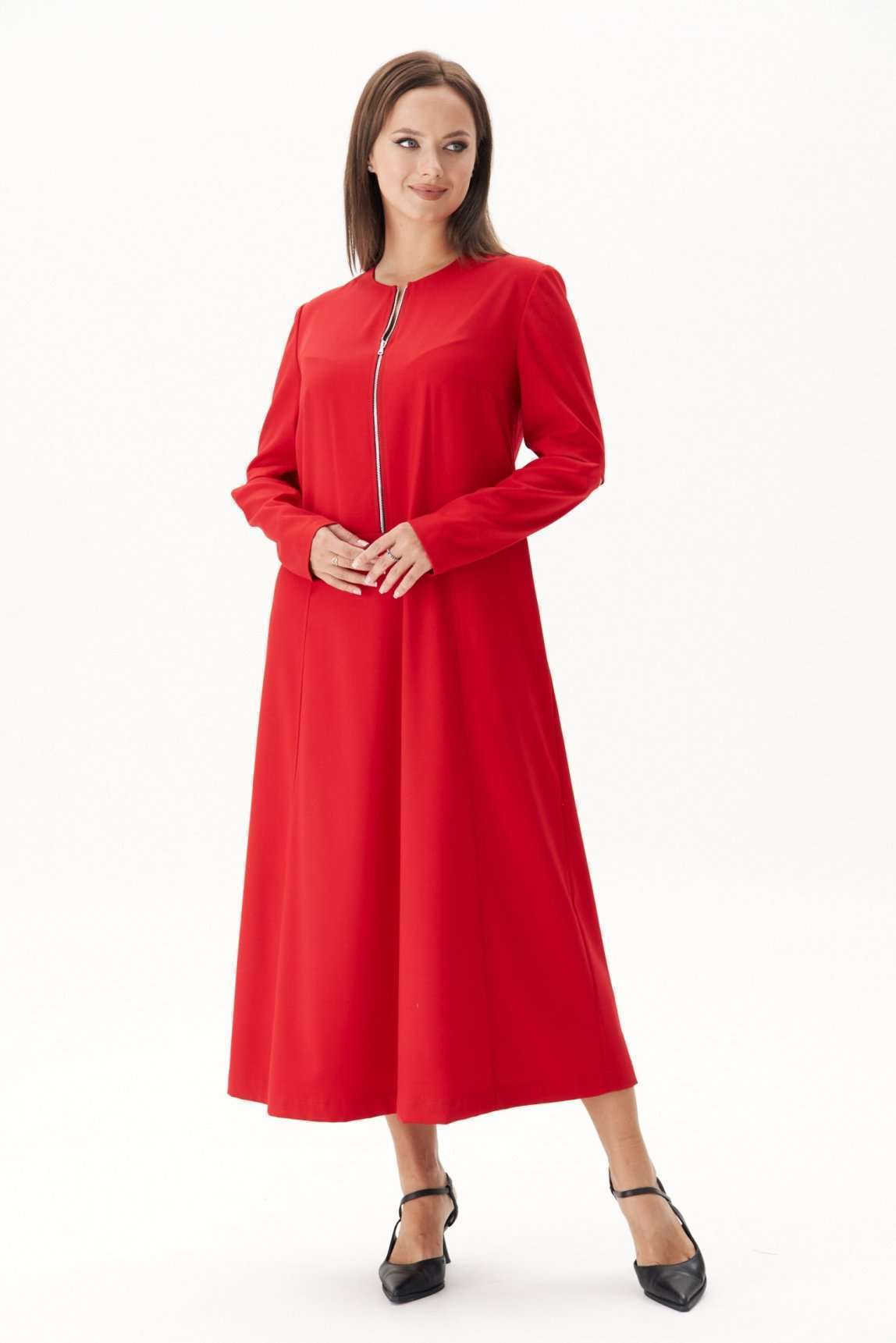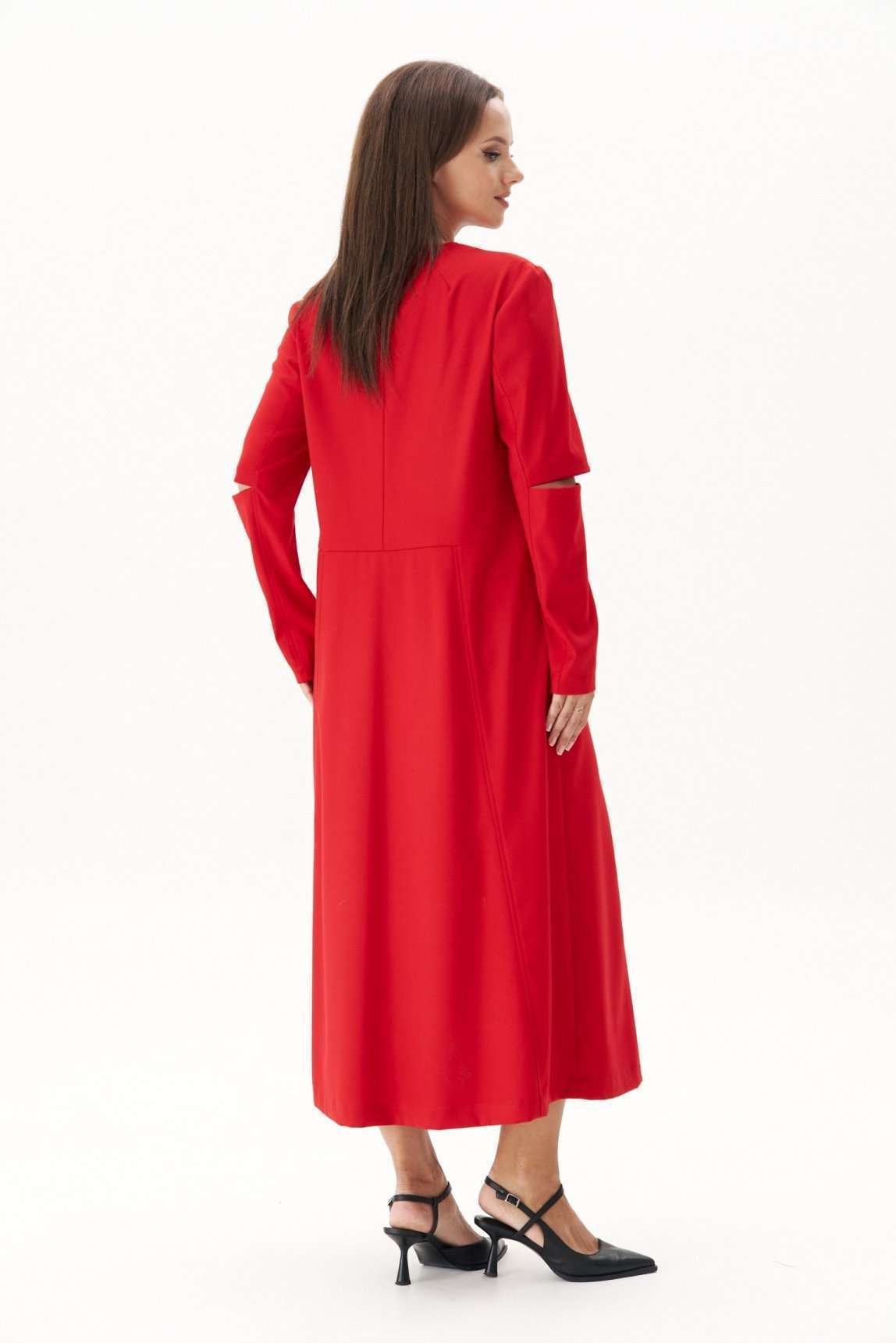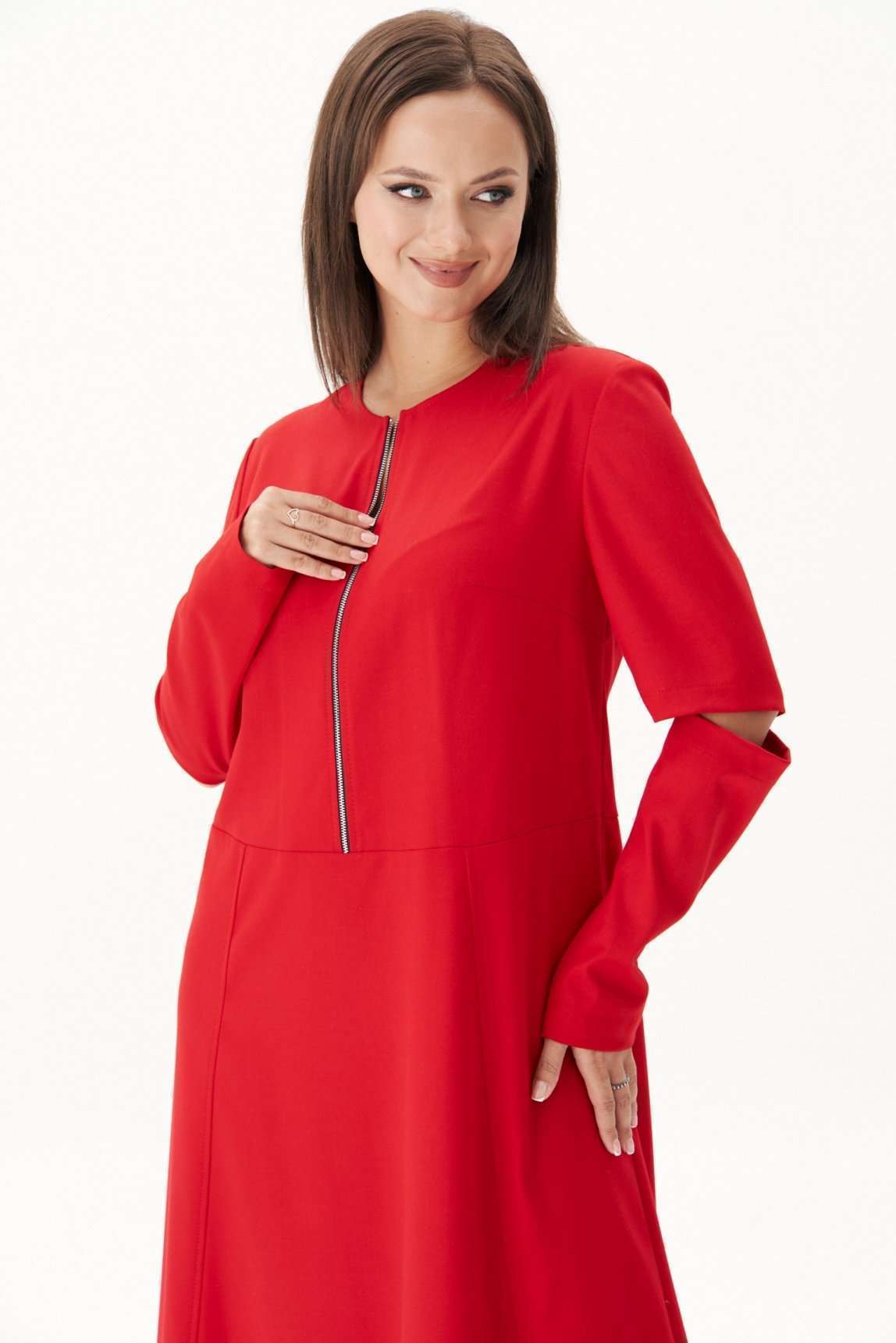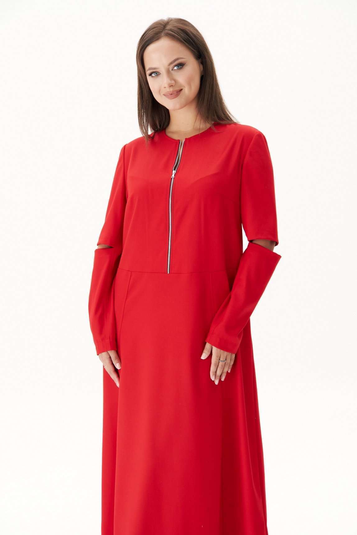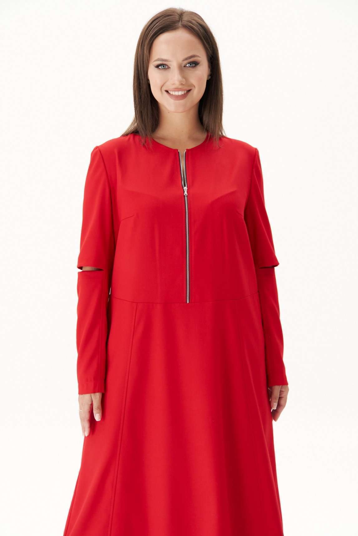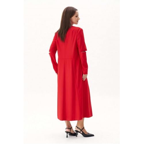 Обжигающий красный - заметное явление в индустрии моды в нынешнем сезоне. Мы не могли не включить в свою коллекцию платье такого актуального цвета! Свободный, упрямленный А-силуэт, втачной покрой, застёжка центральная частичная, на тесьму-молнию. Модель с отрезным лифом, чуть ниже линии талии. Юбка слегка расширенная, с 4-мя наклонными рельефами. Верняя часть спинки со средним швом, плечевыми вытачками. Рукав двухшовный. Передняя часть рукава состоит из двух, образующих эффектный разрез, в который можно изящно продеть руку и получить совершенно новый интересный образ. Длина платья около 128 см. Длина рукава около 62 см.