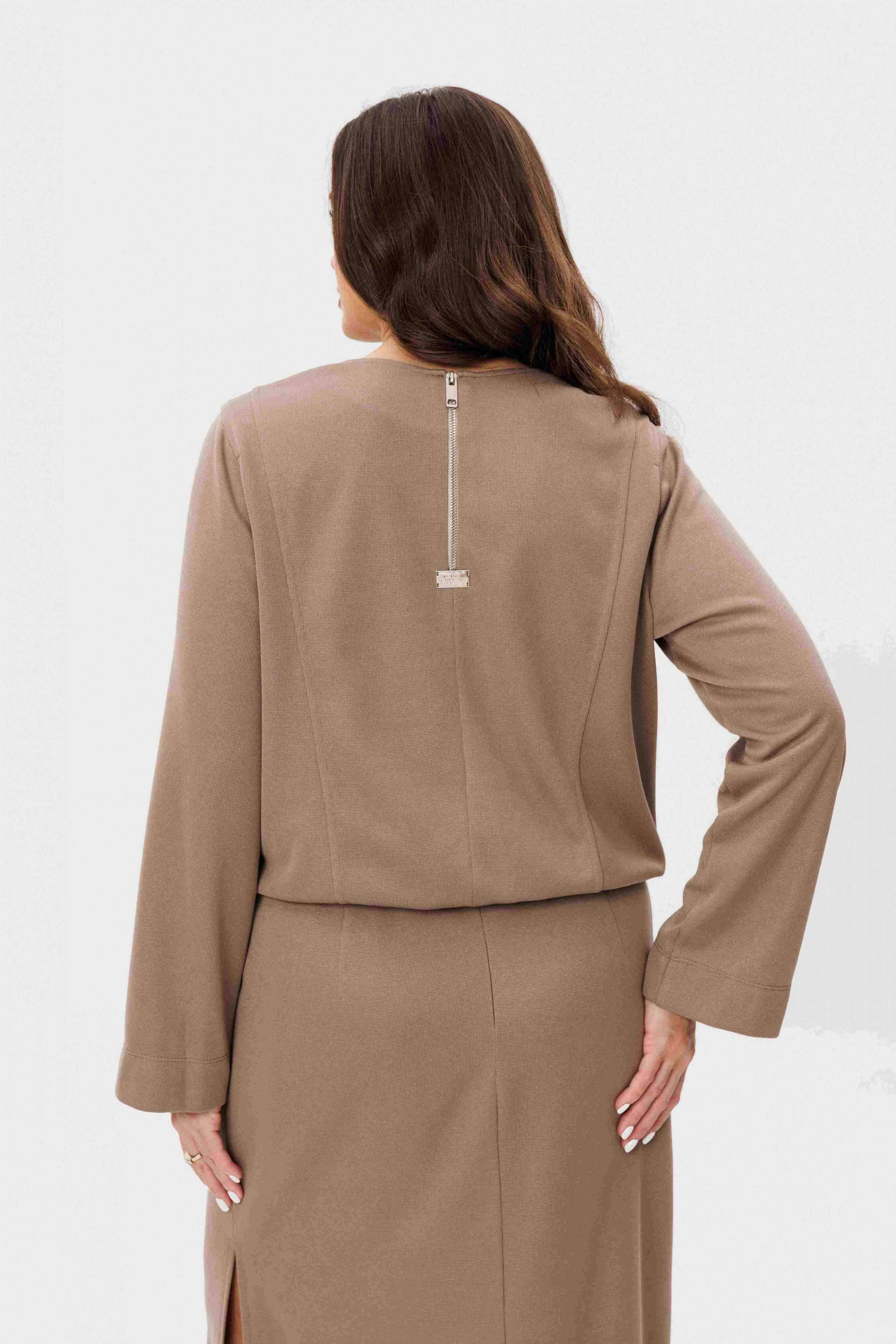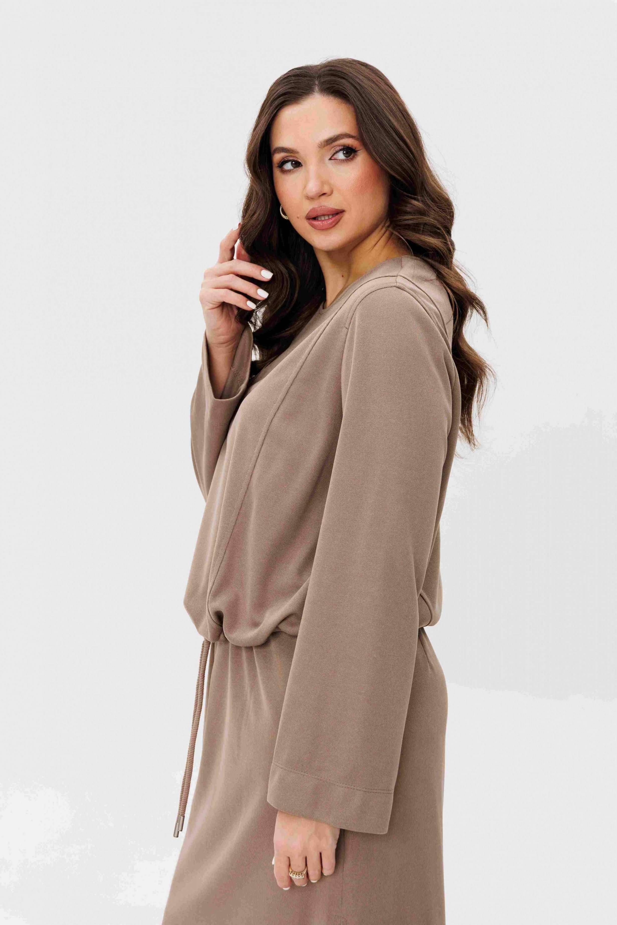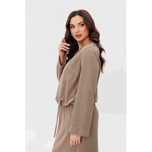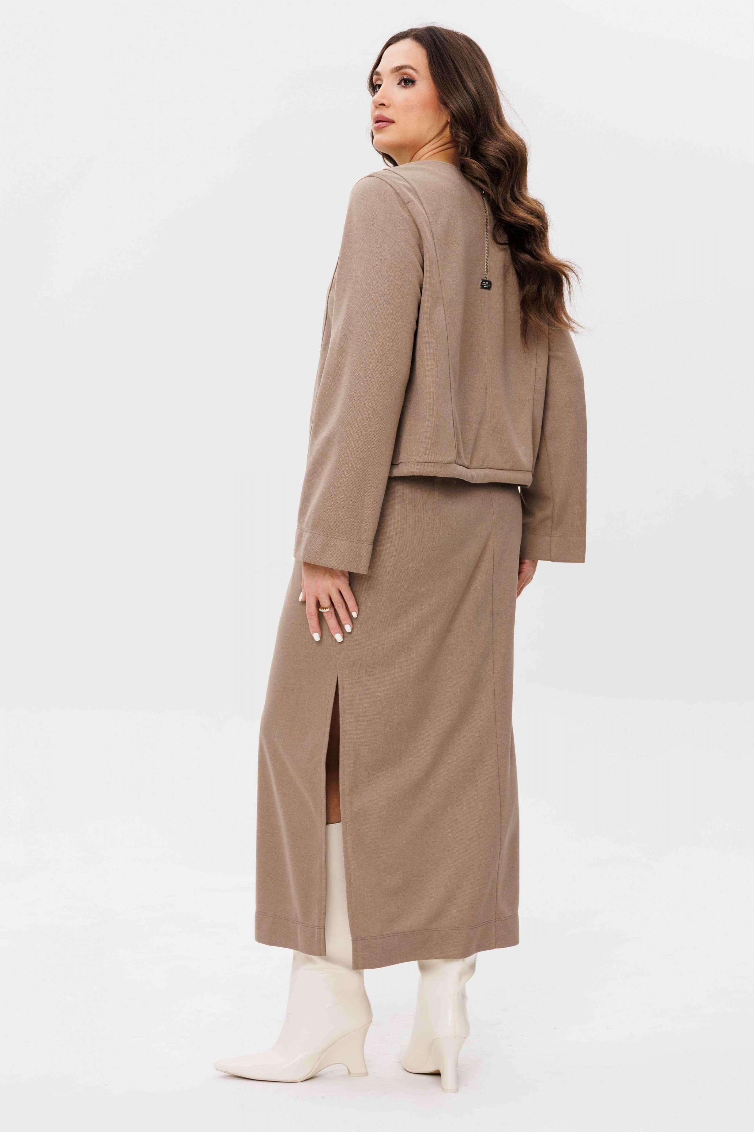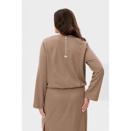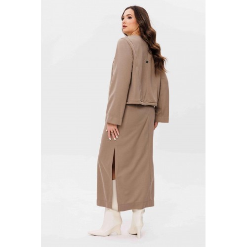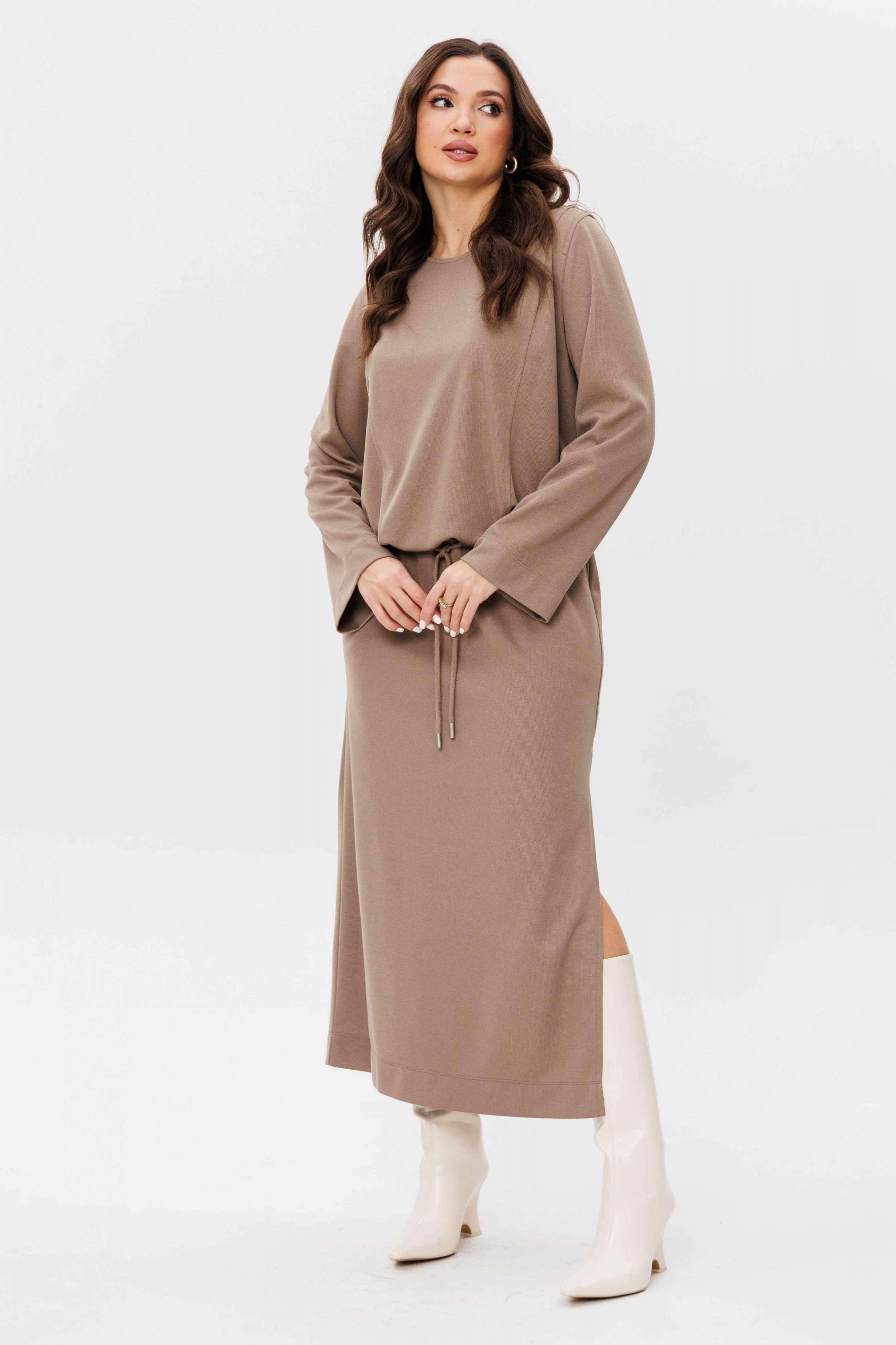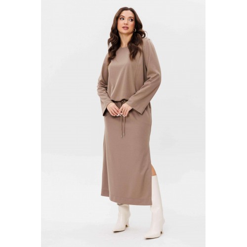 Трикотажный костюм по праву занимает лидирующие позиции на модных осенних улицах и, конечно же, у нас в гардеробе. Он практичен и удобен. Свободный джемпер упрямлённого силуэта, втачного покроя с регулирующей кулисой по низу. Полочка с боковым вертикальным рельефом. Спинка с вертикальным рельефом, средним швом и застёжкой на отелочную молнию. Рукав с цельнокроеной манжетой. Юбка макси, на притачном эластичном поясе, с наклонными боковыми карманами и эффектным разрезом сбоку. Длина джемпера около 57 см. Длина рукава около 58 см. Длина юбки около 90 см.