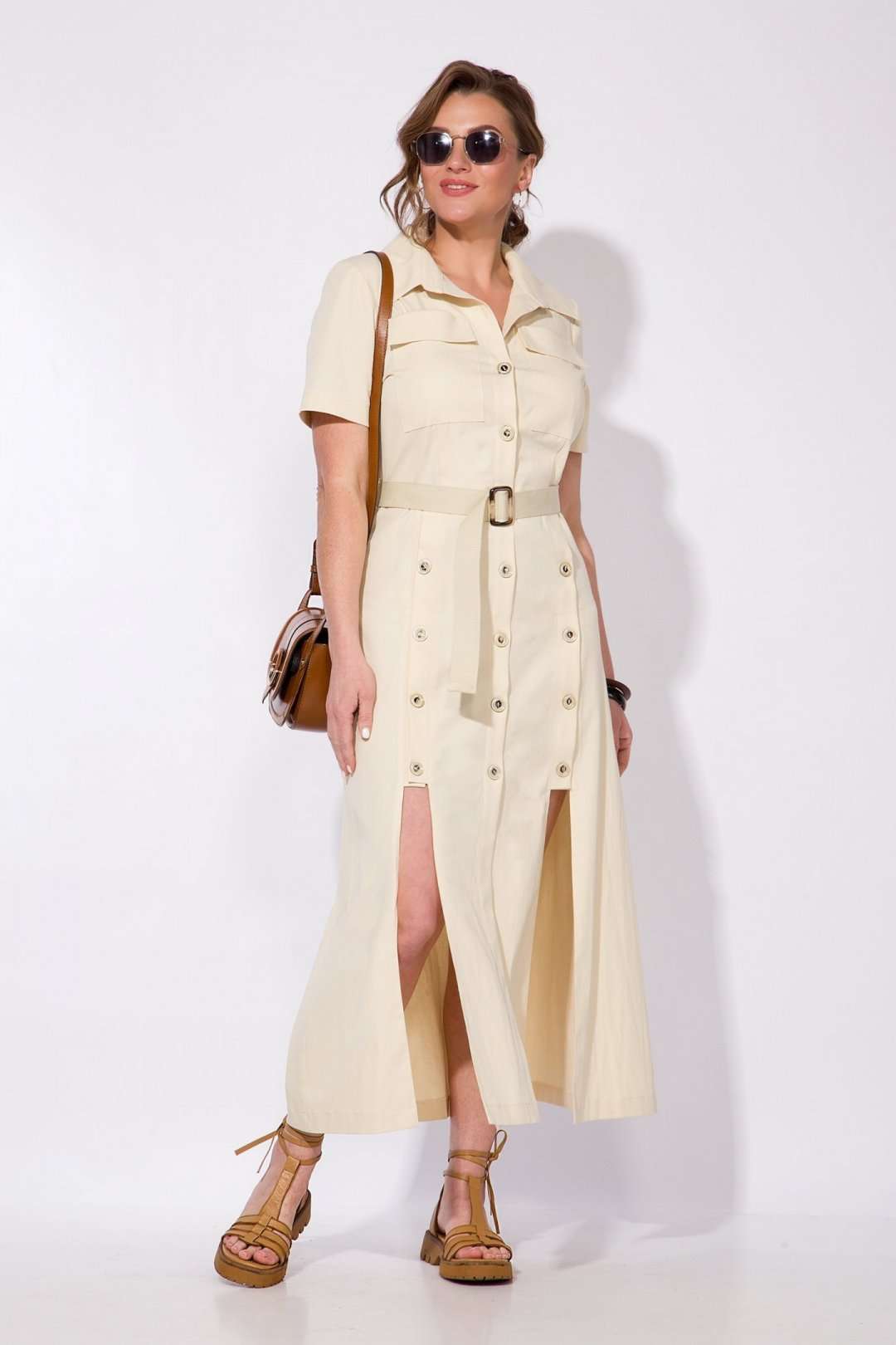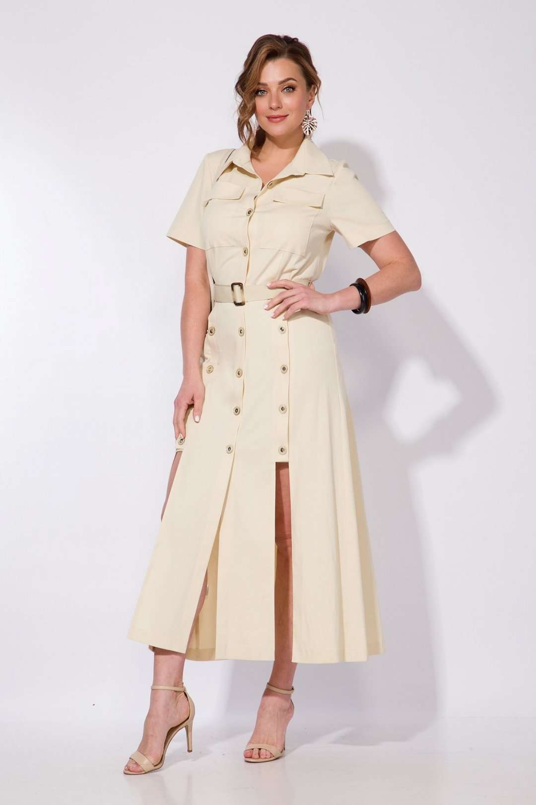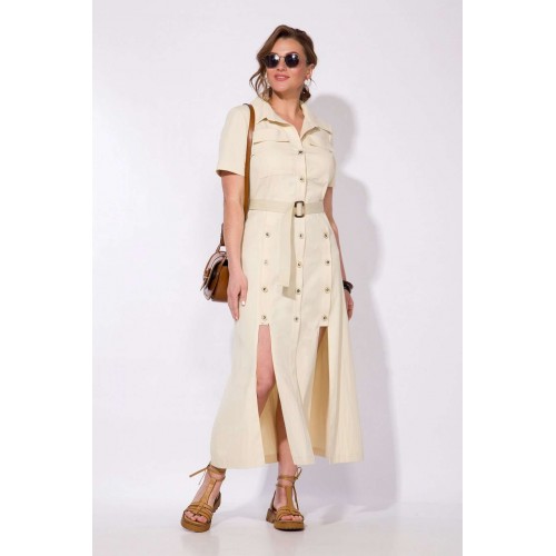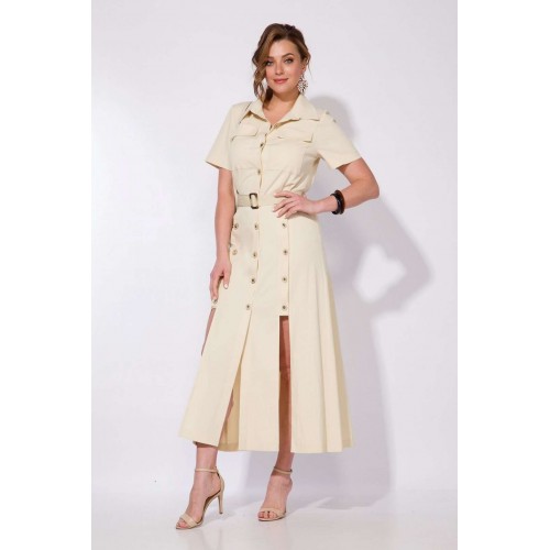 Эффектное платье в стиле сафари из тонкого хлопкового джинса! Модель отрезная по талии, с продольными рельефами, переходящими в планки. Воротник рубашечный, отложной на стойке. Застежка на петли и пуговицы центральная. Рукав в модели укороченный, вточной.По полочке расположены накладные карманы. В комплект входит съемный пояс в тон изделия.Стильная лаконичная модель для особенного случая не оставит Вас без внимания окружающих. Длина – 128-130 см. Рукав – 35-38 см.