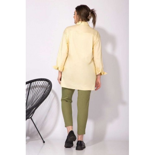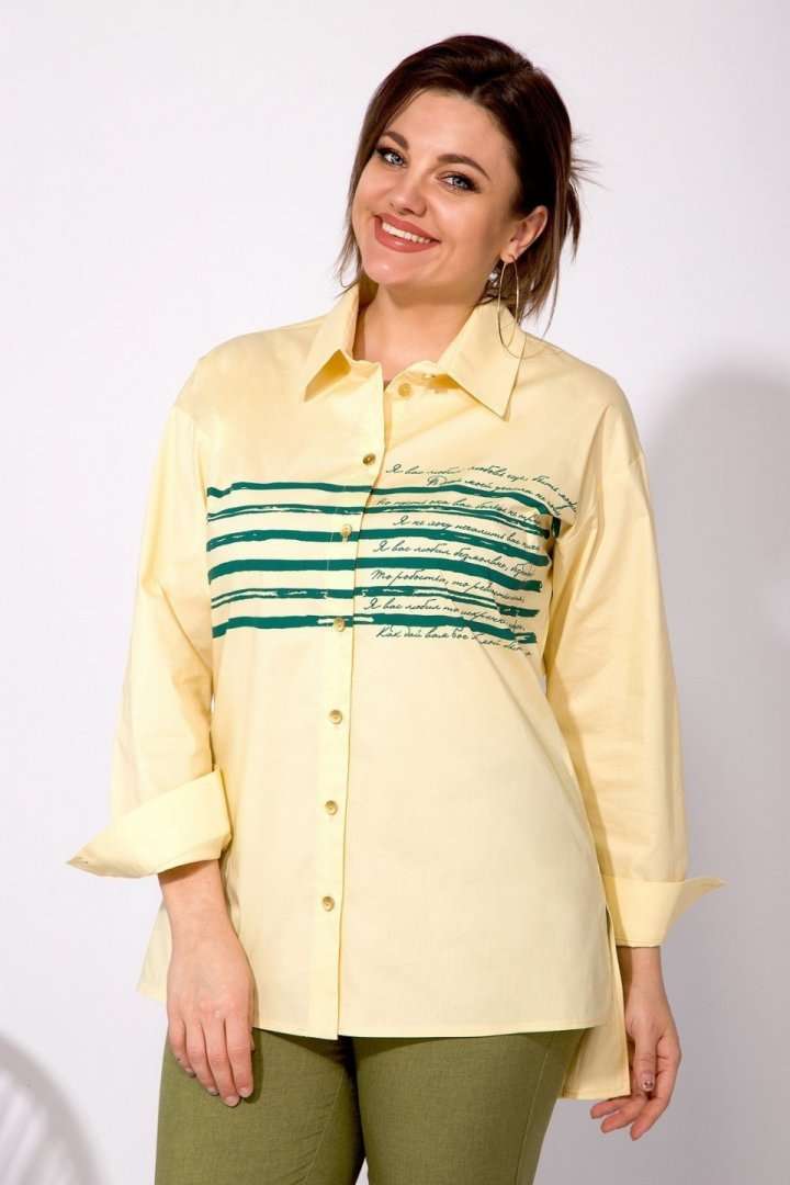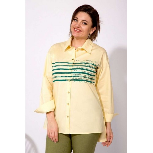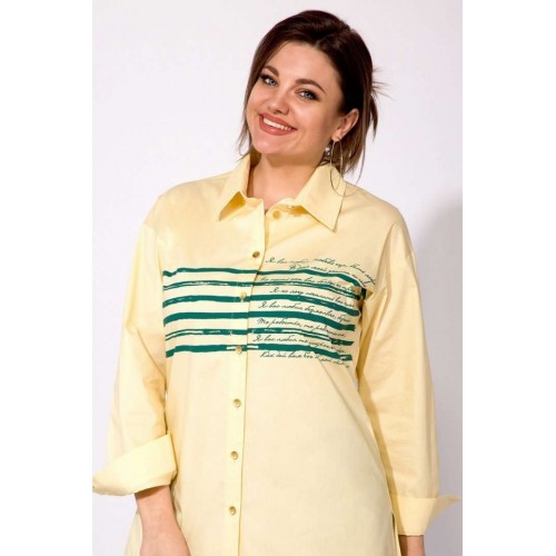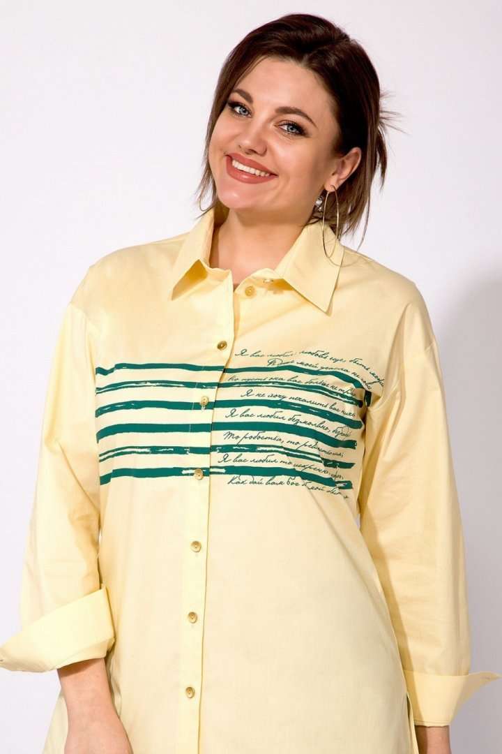 Эффектная флопковая рубашка, силуэта-OVERSIZE! Модель с отложным рубашечным воротником на стойке. Застежка центральная на планке на петли и пуговицы. Рукав длинный, рубашечного типа. Низ рукава обработан притачным манжетам с прорешкой и застежкой на 2 пуговицы. По спинке расположена кокетка, с 2-мя складками на свободу. Низ в изделии разно уровневый (перед короче чем спинка), с 2-мя боковыми разрезами на свободу! Изюминкой данной модели служит декоративная печать-накат в виде полоски, с текстом великого русского поэта: строки из произведения А.С.Пушкина-« Я вас любил…»! Данная модель рубашки отлично сочетается со стильными свободными брюками из коллекции от бренда INPOINT! М 101! Длина по спинке – 80, перед-70 см рукав – 63-64 см.