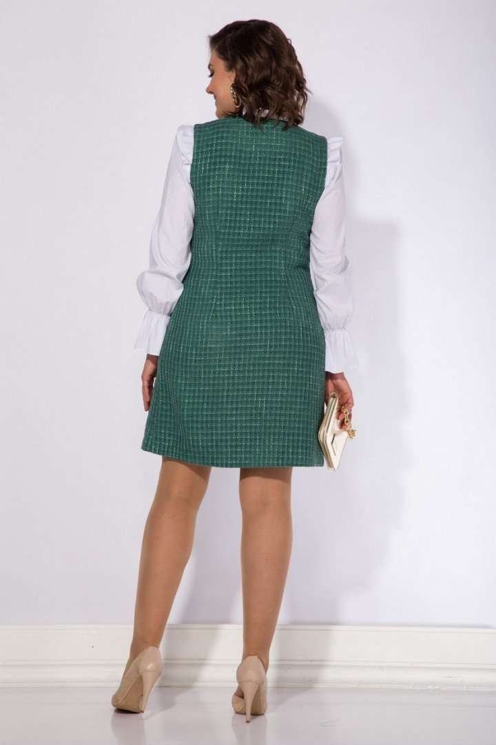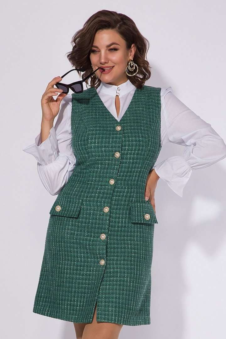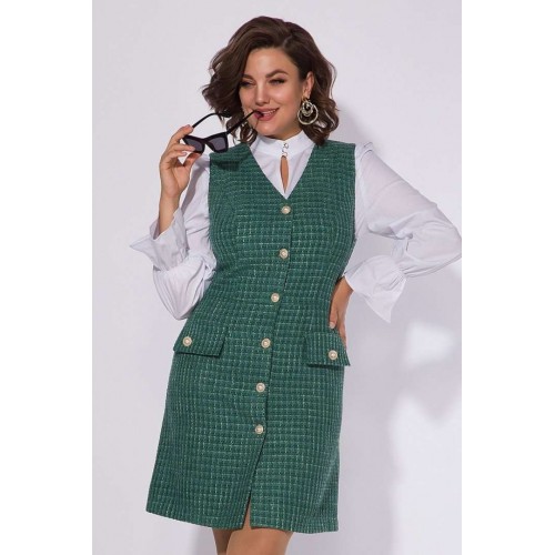 Эффектное платье-сарафан в стиле CHANEL станет одним из любимых в вашем гардеробе; станет прекрасным вариантом школьной формы для подростков, а также эффектным офисным нарядом для женщин. Модель полуприталенного силуэта; Застежка центральная, на петли и пуговицы с подбортом. По лифу расположены рельефы для качественной посадки. Имитация карман в виде клапанов, а также ряд пуговиц под жемчуг придают изделию шик и элегантность. Модель отлично сочетается с однотонными водолазка, блузками и рубашками. Практичный, комфортный в носке! Длина 94-96 см.
