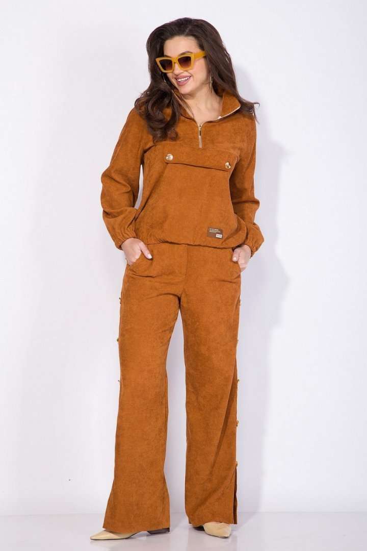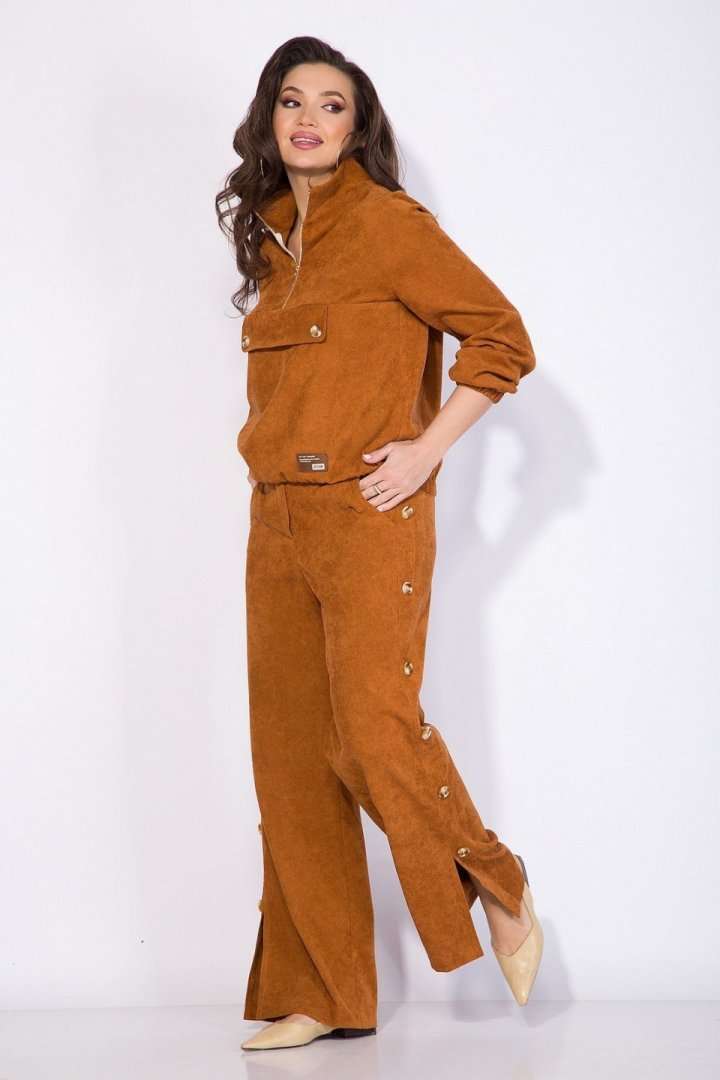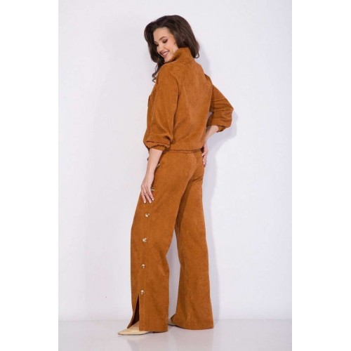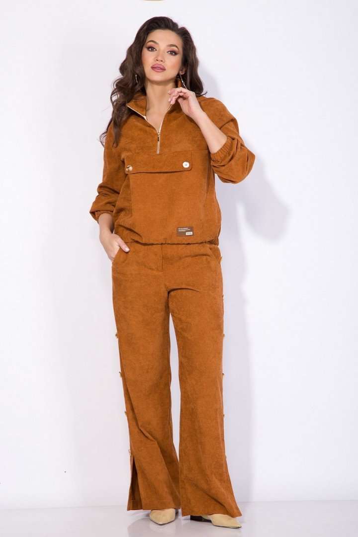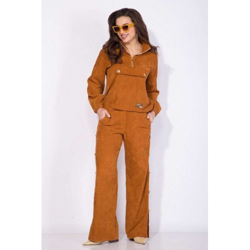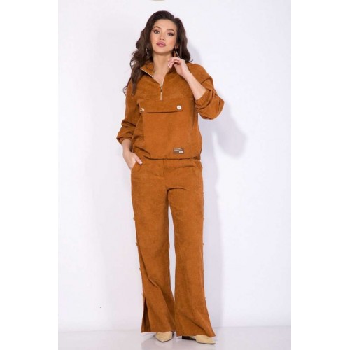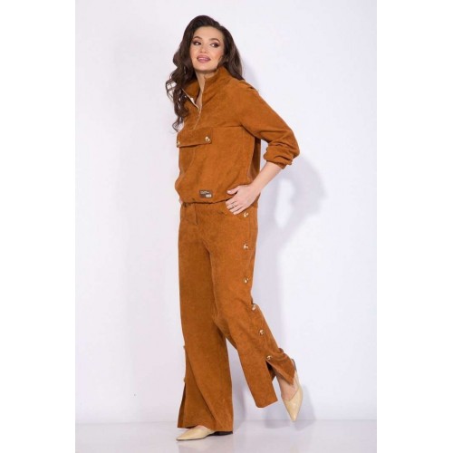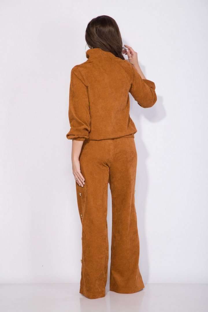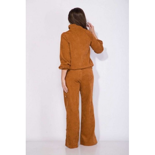 Костюм: анорак+брюки.Оригинальный костюм 2-ка в стиле спорт-шик из вельвета - это идеальный и комфортный вариант для повседневной носки! Модель джемпера анорака свободного силуэта с рукавом покроя реглан. По низу изделия и рукава предусмотрена мягкая резинка на сборку. Воротник отложная стойка с металлической молнией по центру. По полочке расположен декоративный клапан. Брюки в костюме свободного кроя на притачном поясе с застежкой на молнию. По бокам расположены лампасы с рядом декоративных пуговиц. В брюках предусмотрены боковые карманы. По низу- оригинальные разрезы-шлицы на свободу движения. Невероятно мягкая и нежная ткань в дополнении с яркой фурнитурой придаст Вам индивидуальности и изыска. Анорак – 60 см, рукав – 63 см, брюки – 106 см.