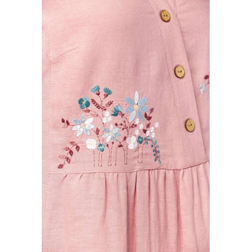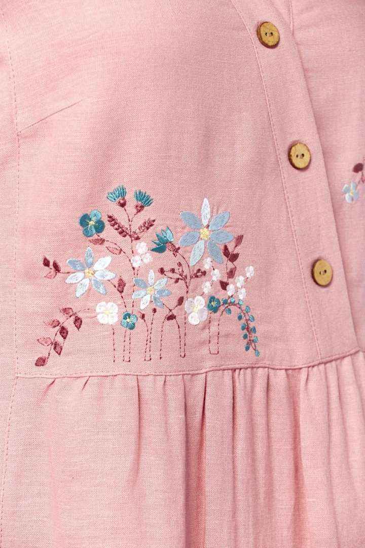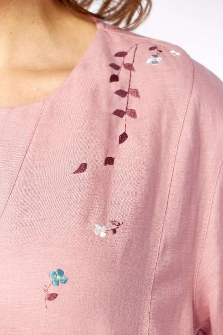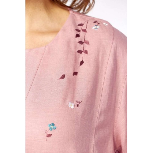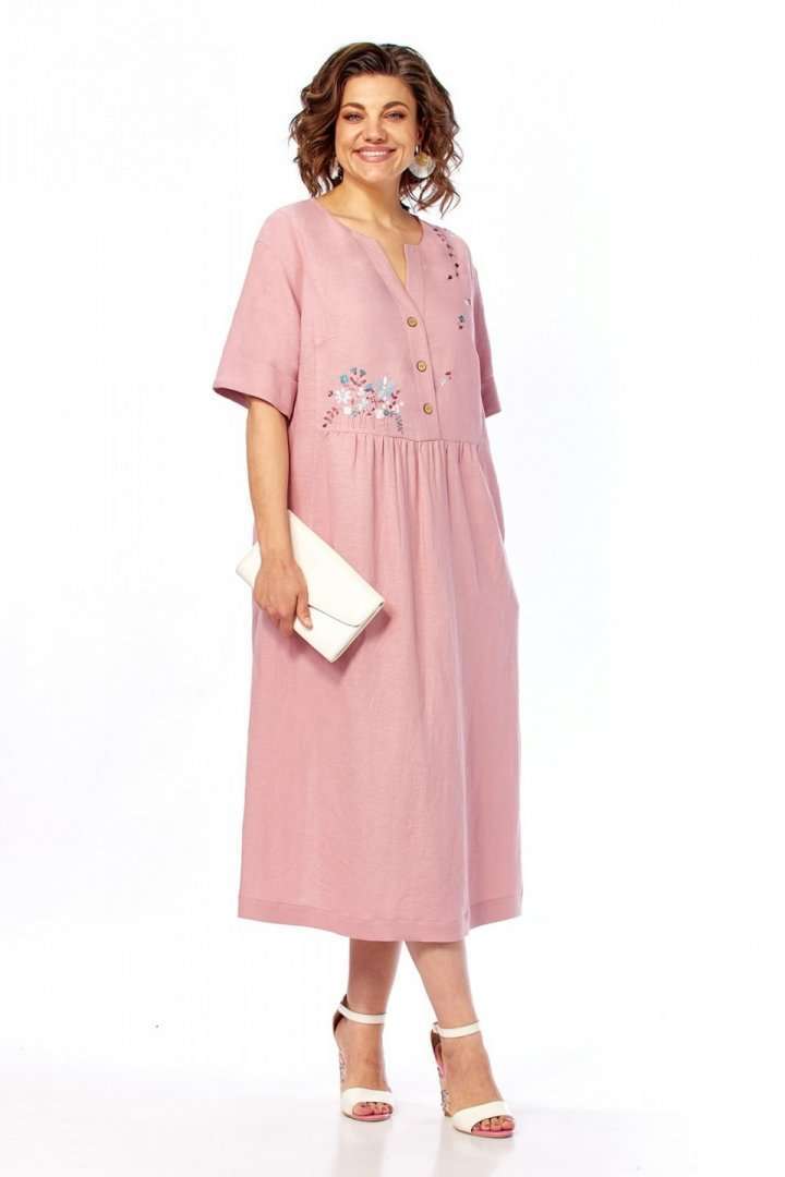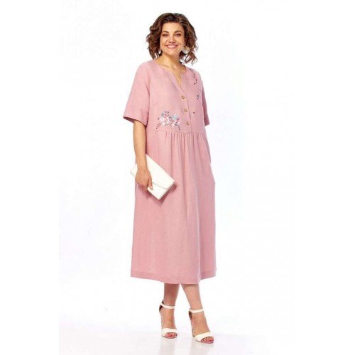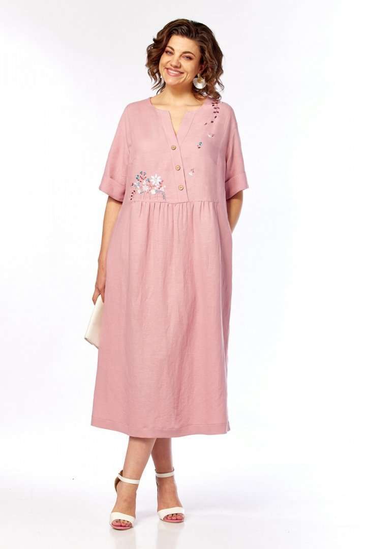 Платье 3500-3 Jurimex отрезного силуэта идеально для создания нежного и женственного образа. Коллекция бренда Jurimex выполнена из сочетания лена и вискозы, что обеспечивает комфорт и дышащие свойства на протяжении носки. Уникальная фигурная горловина и имитация застежки на запах добавляют изысканный акцент. Линия плеча слегка спущена, а рукава оформлены отложными манжетами. Карманы в боковых швах делают платье практичным. Длина по спинке составляет 119 см, а длина плеча вместе с рукавом — 41 см. Дизайнерская вышивка на передней части подчеркивает его стиль и индивидуальность. Пастельный розовый цвет и свободный крой делают это платье универсальным решением для весенне-летнего сезона, идеально подходящим для повседневных и праздничных выходов.