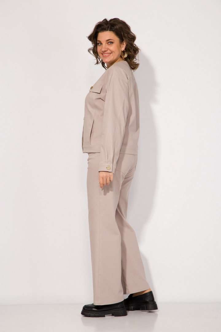 Эффектный комплект в стиле CASUAL, выполнен из хлопкового Джинса тифани! Модель состоит из облегченного жакета по типу джинсовки и брюк по типу брюк! Жакет свободного силуэта, с округлым вырезом горловины. Застежка центральная на петли и пуговицы. Плечевой пояс спущенный, рукав полной длины по низу предусмотрен манжет с застежкой. По полочке расположены продольные рельефы с карманами в шве. В комплект входят брюки по типу джинс, с завышенной посадкой. По переду расположены карманы. Застежка – брючная тесьма-молния с обработанным гульфиком. Брюки прямого кроя. Сзади расположены накладные карманы. Для более комфортного прилегания по спинке в пояс вставлена резинка. Отличный костюм для сезона весна-лето в размере плюс-сайз! Длина жакета – 60 см, рукав – 62 см. Брюки – 1014 см.