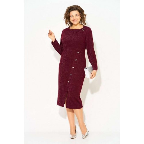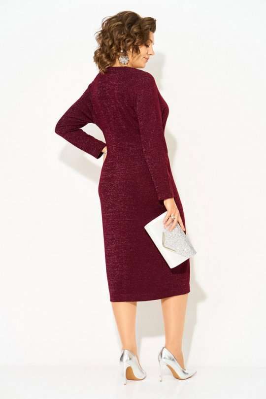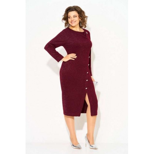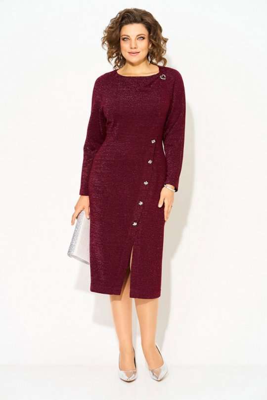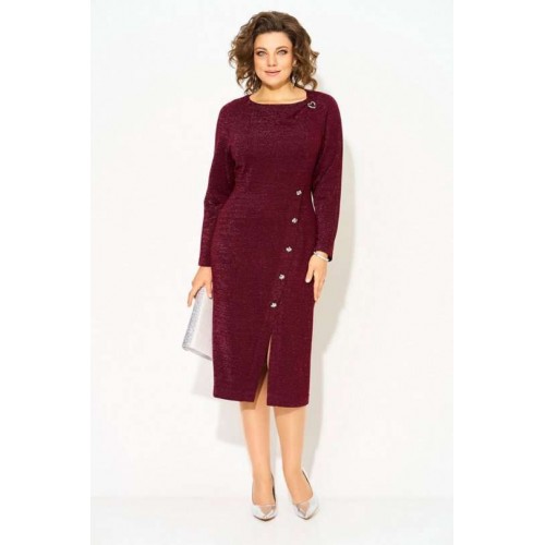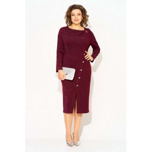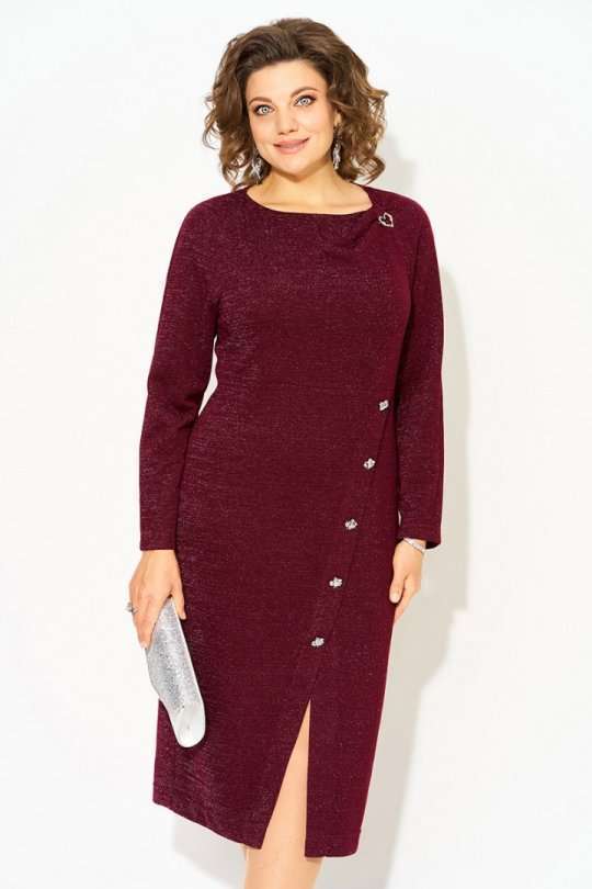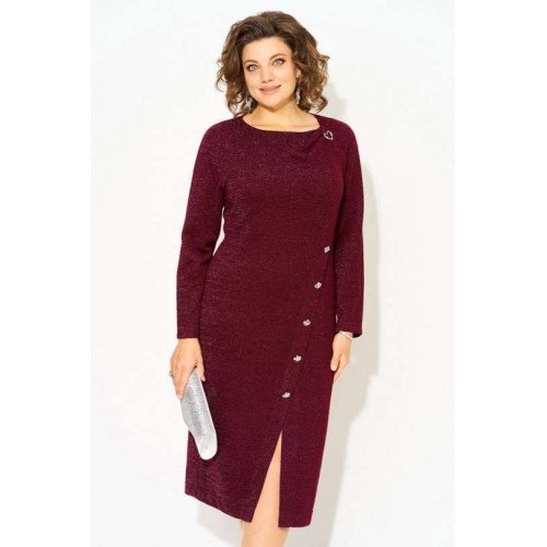Элегантное платье в винном оттенке, выполнено из качественной плотной трикотажной ткани, которая отлично тянется и принимает все изгибы вашего тела, искусно маскируя недостатки. Платье отрезное чуть выше талии, с эффектным ассиметричным подрезом с застежкой на декоративные пуговицы. Длинный рукав, покроя реглан, заужен к низу. Лиф украшает небольшая сборка с декоративной брошью. Спинка прилегающая. Модный цвет бургунди (винный) - самый трендовый оттенок сезона 2026 года. В меру обтягивающее классическое платье карандаш - ваш универсальный наряд на любое торжество. Длина изделия по спинке 115 см. Длина рукава 62 см.