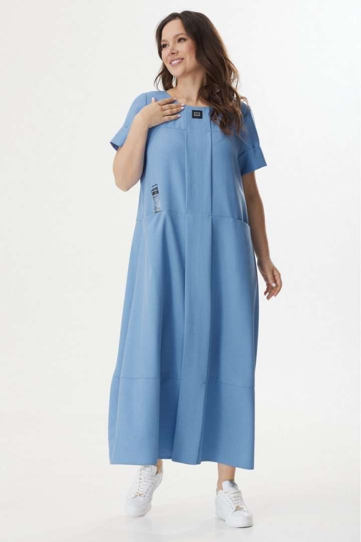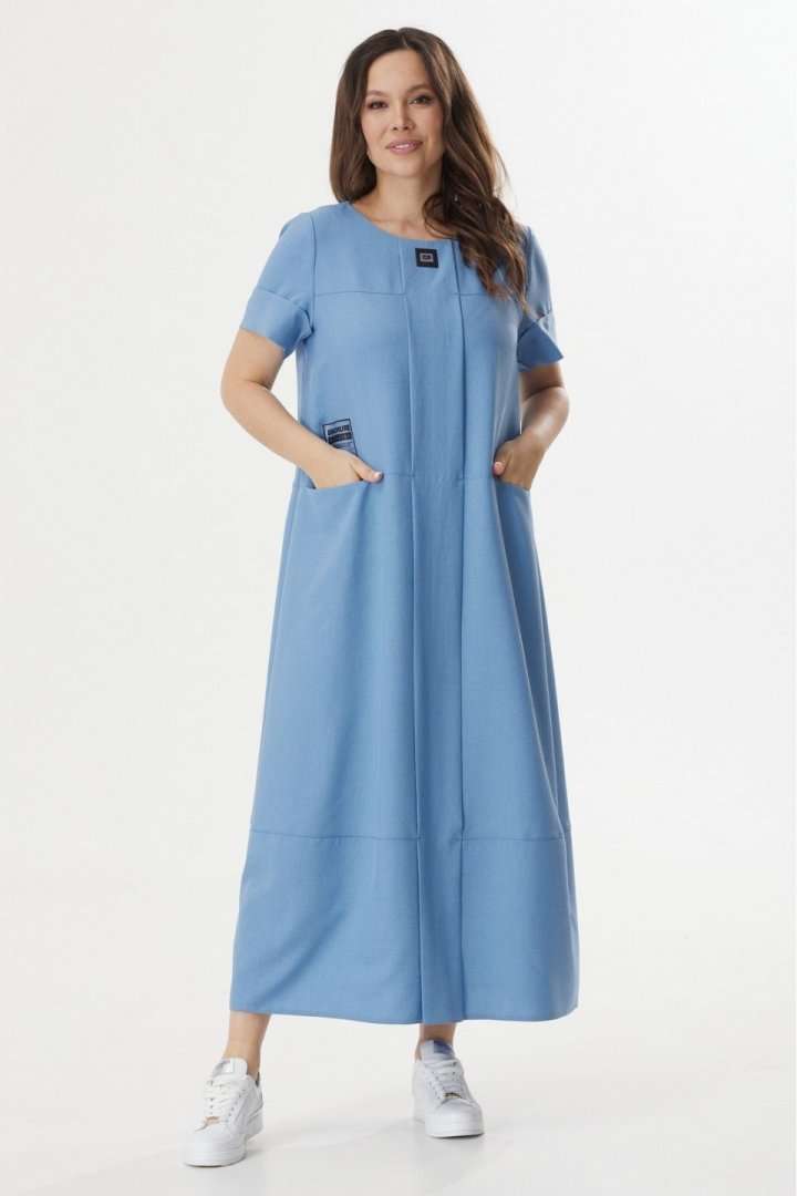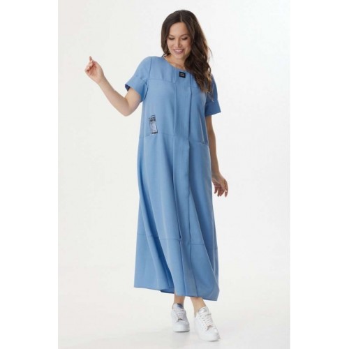 Стильное летнее платье свободного силуэта с коротким втачным рукавом. Выполнено из комфортной поливискозной ткани. Крой платья отлично скрывает все недостатки фигуры, а вертикальный элемент придает стройность. По спинке застежка на потайную молнию. Платье дополнено двумя функциональными карманами, а так же пришивными декоративными элементами. Длина платья от плечевого шва 129см. Длина рукава 25см.