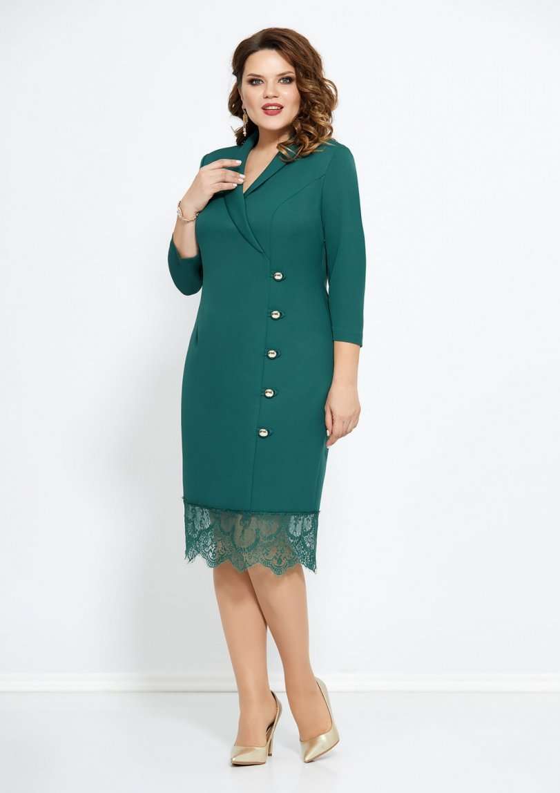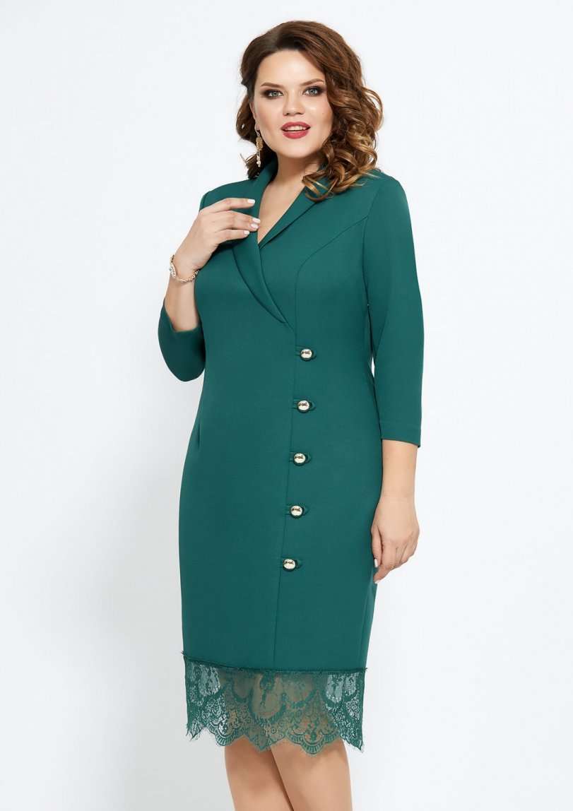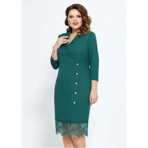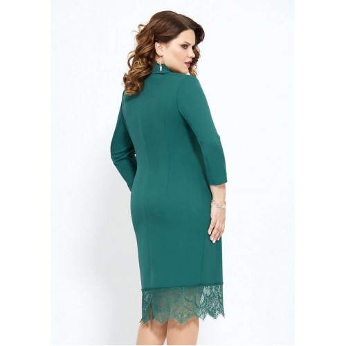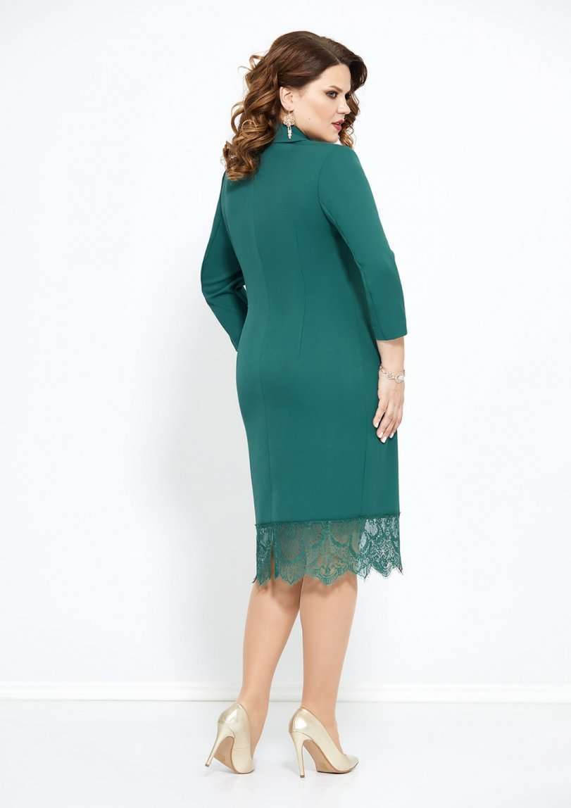 Элегантное платье полуприлегающего силуэта выполнено из однотонной слегка тянущейся ткани с притаченным к низу кружевом. По переду платье с изящным воротником-шалью, полурельефами и имитацией смещенной застежки на навесные петли и пуговицы. Рукав длинной 3/4. Спинка с талиевыми вытачками и со средним швом, который заканчивается разрезом. Потайная застежка-молния в боковом шве платья. Изящное платье, в котором Вы будетевыглядеть стильно на любом мероприятии! Длина изделия 106 см. Длина рукава 47 см Ширина груди- 53 см. Ширина талии -48см. Ширина бедер 57см.. Ширина рукава-19см.