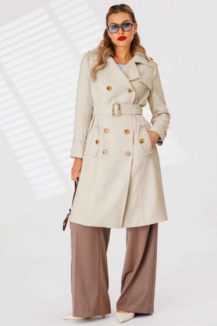 Мода циклична и переменчива: что-то из нее выходит, что-то возвращается, но классика - она вечна. Классическая модель женского тренча слегка расклешенного силуэта теперь в легком, осеннем исполнении. Двубортная застежка. Широкий отложной воротник. Карманы с клапанами. Отлетная кокетка по спинке и полочке, имитация погонов. Регулируемые паты на рукавах и пояс для создания более утонченного силуэта. На спинке - складка. Тренч на подкладке. Длина по спинке: 104 см длина рукава: 61 см