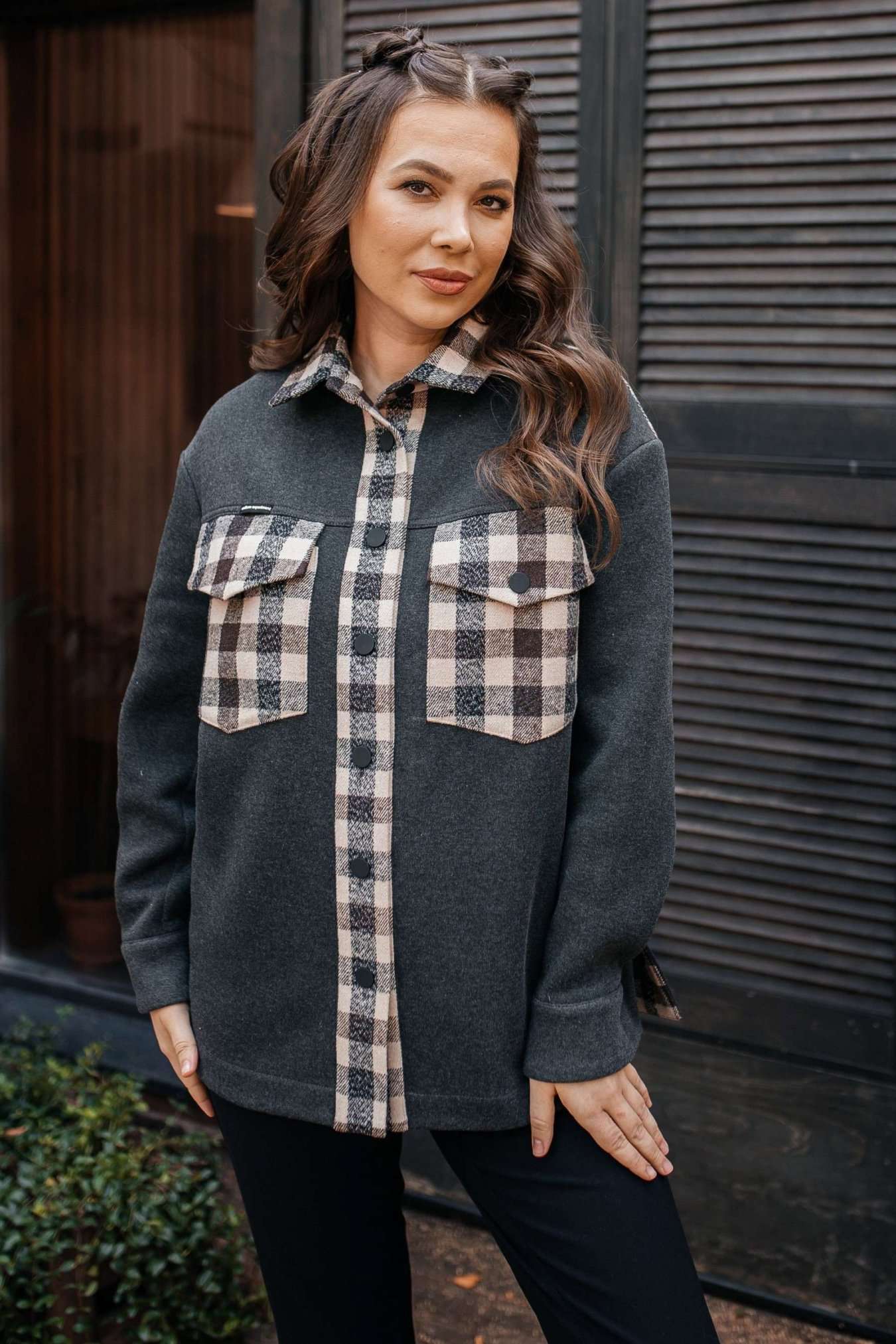 Теплая рубашка - обязательный элемент женского гардероба. в осенне-зимний период. Это незаменимая вещь в арсенале современной модницы. Теплая рубашка защитит от ветра и холода, а также умело впишется в любой повседневный образ. Рубашка имеет такие особенности: - свободный фасон оверсайз - длинные рукава с манжетами - по бокам есть разрезы Рубашка изготовлена из трикотажной ткани, внутри на флисе, в сочетании с клеткой. Материал имеет мягкую текстуру, поэтому он приятный на ощупь и создает ощущение уюта. длина спинки: 74 см длина рукава + манжета: 57 см