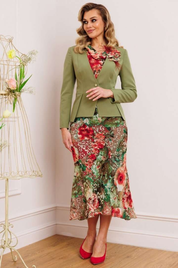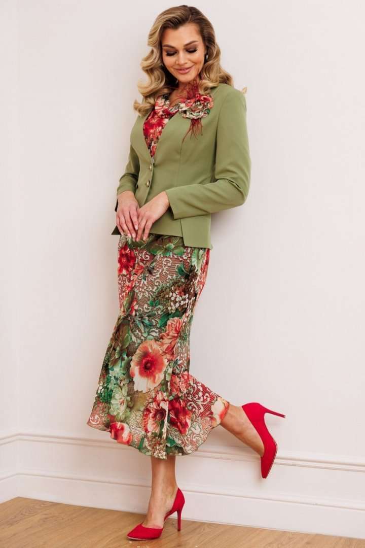 Что может подчеркнуть женственность и красоту? Наверное, только хорошо подобранное платье. Даже при не идеальной фигуре платье может творить волшебство. Дизайнеры бренда "МОДА-ЮРС" поставили для себя задачу - создать платье, которое не будет забирать у Вас комфорт - и дополнили его жакетом, который декорирован съемным цветком-брошью. Платье полуприлегающего силуэта с нагрудными вытачками. Вырез горловины мягкой, округлой формы. Рукав расширенный. Платье на подкладке. Жакет полуприлегающего силуэта, отрезной по линии талии, спереди со шлицами. Спинка с талиевыми вытачками и средним швом. Рукав втачной, двухшовный. Застежка центральная на петли-пуговицы. Жакет на подкладке. Длина спинки жакета: 63 см длина платья: 129 см