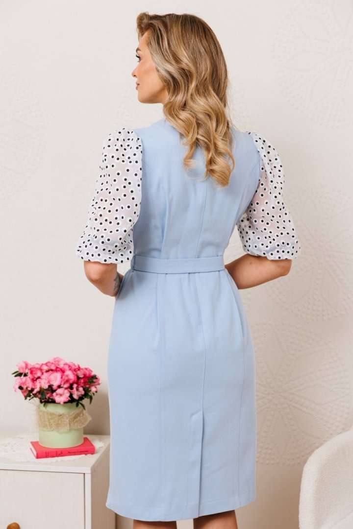 Элегантное платье полуприлегающего силуэта, выполненное из качественного однотонного розового материала, которое идеально подчеркнет вашу женственность. Дизайн платья украшен органными вставками на рукавах, добавляющими изысканности и лёгкости образу. Модель с рельефами по переду и спинке, обеспечивающими отличную посадку. Вырез горловины округлой формы акцентирует внимание на шее, делая её более выразительной. Рукава втачные, с одним швом и элегантными сборками по окату, дополнены резинкой на нижнем крае для комфортного облегания руки. Центральная застежка на платье с петлями и пуговицами обеспечивает удобное использование. Комплектуется поясом для регулировки ширины по линии талии, позволяя подчеркнуть или скорректировать силуэт по вашему желанию. Это платье - отличный выбор как для деловых встреч, так и для особых случаев, когда необходимо выглядеть безупречно.