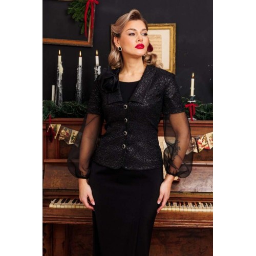 Женственность, изящность, уникальность от бренда "Мода-Юрс"! Платье в тандеме с жакетом с объемными рукавами из органзы. Беспроигрышный вариант для важного события. Жакет полуприлегающего силуэта по переду и спинке с рельефами. Спинка со средним швом. Рукав втачной одношовный. Снизу на резинке. Застежка центральная на петли пуговицы. Платье полуприлегающего силуэта, спереди со шлицей. Спинка со средним швом и талиевыми вытачками. Застежка на тесьму молнию в среднем шве. Костюм на подкладке. Главным акцентом является съемная брошь, декорированная бусинками и перьями. Длина платья: 117 см длина жакета: 60 см длина рукава жакета : 66 см