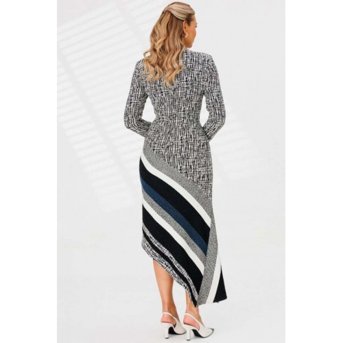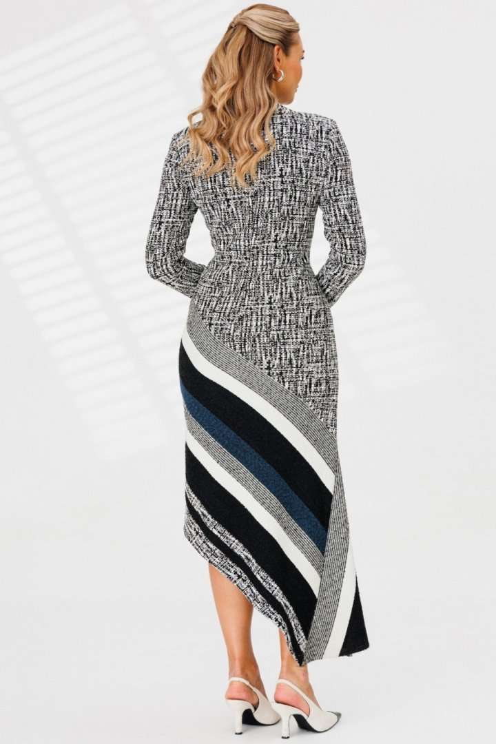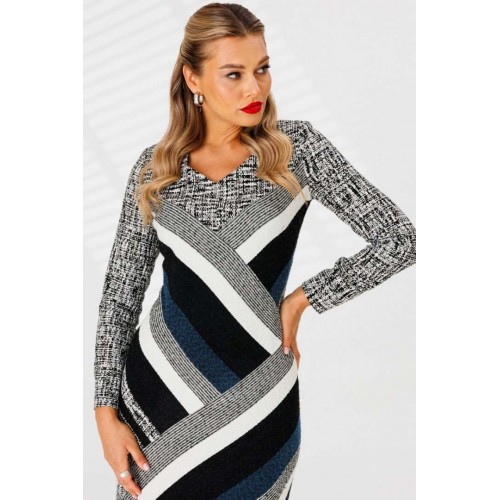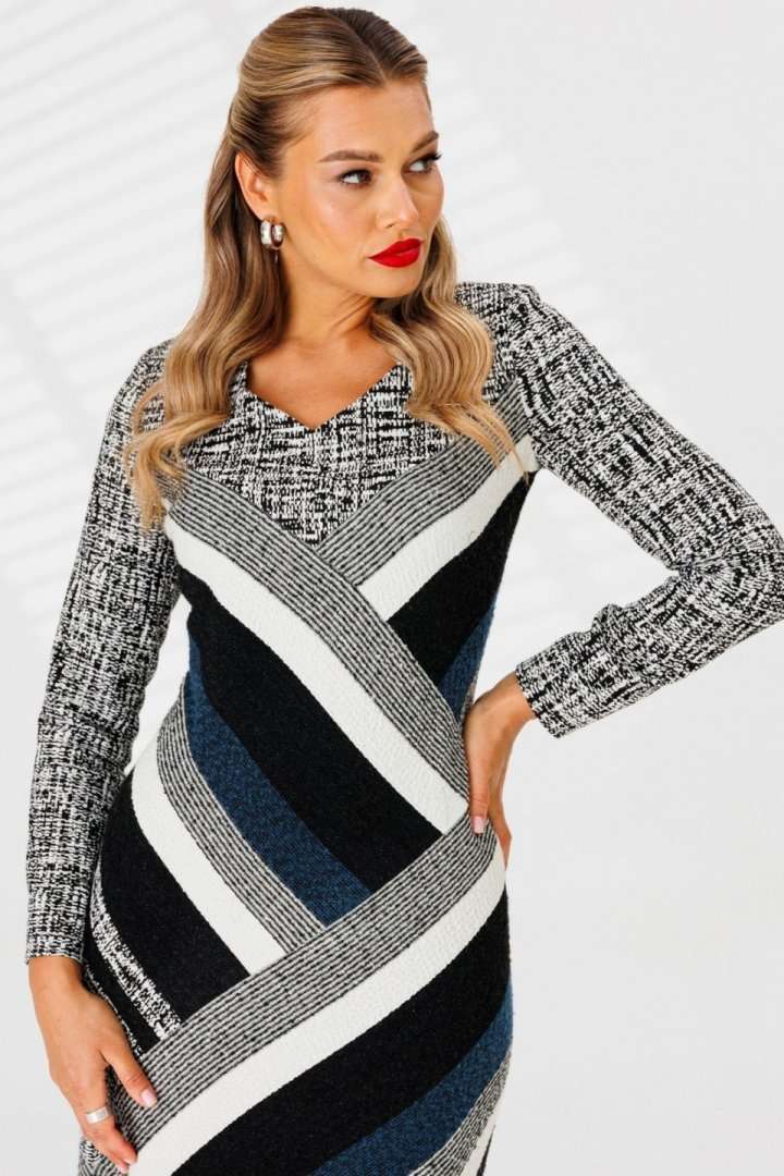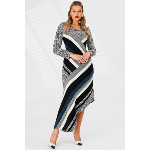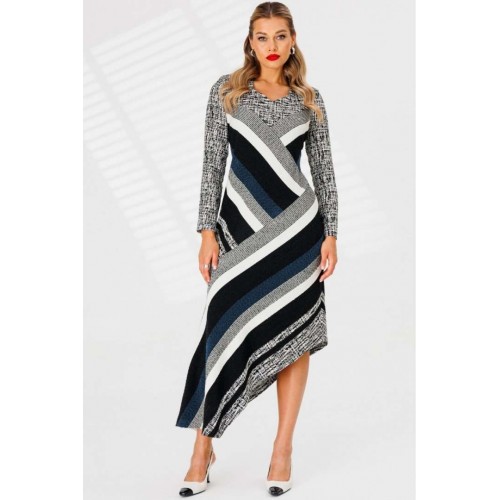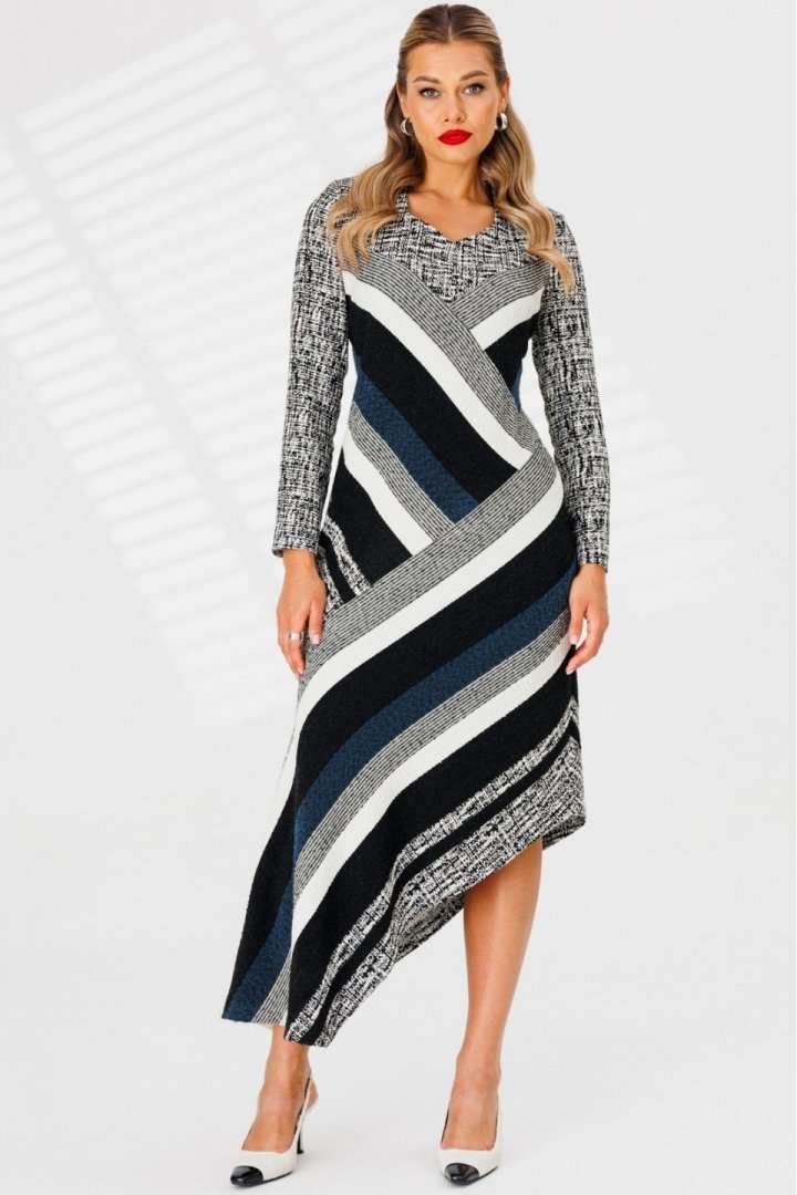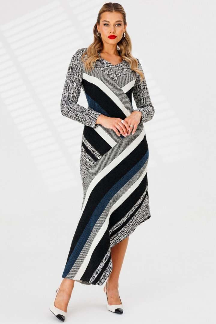 Бренд "Мода-Юрс" предлагает Вам новинку - женственное платье в полоску, подчеркивающее фигуру. Платье полуприлегающего силуэта спереди с отрезной кокеткой. Спинка со средним швом и талиевыми вытачками. Рукав втачной одношовный. Вырез горловины обработан подкройной обтачкой. Низ платья фигурной формы. Дина по спинке: 121 см длина рукава: 61 см рост: 170 см